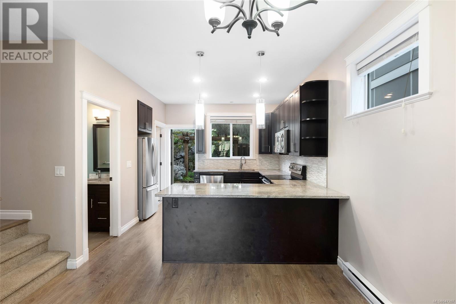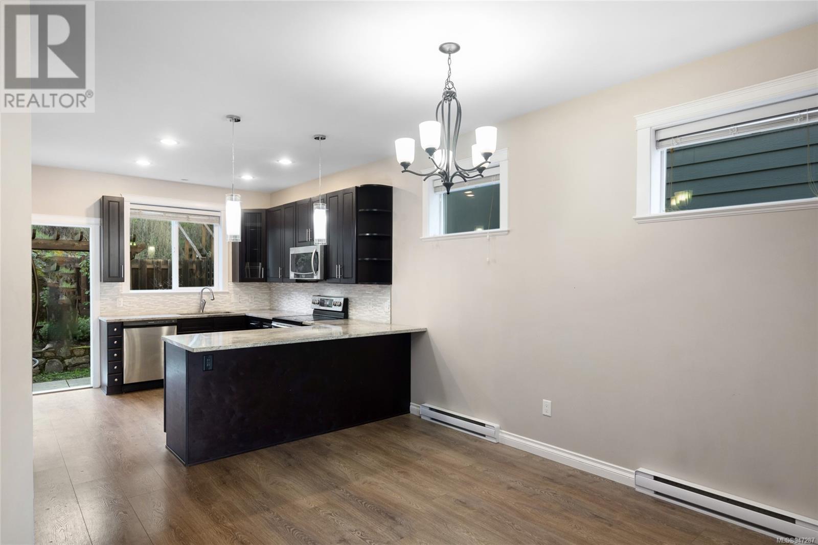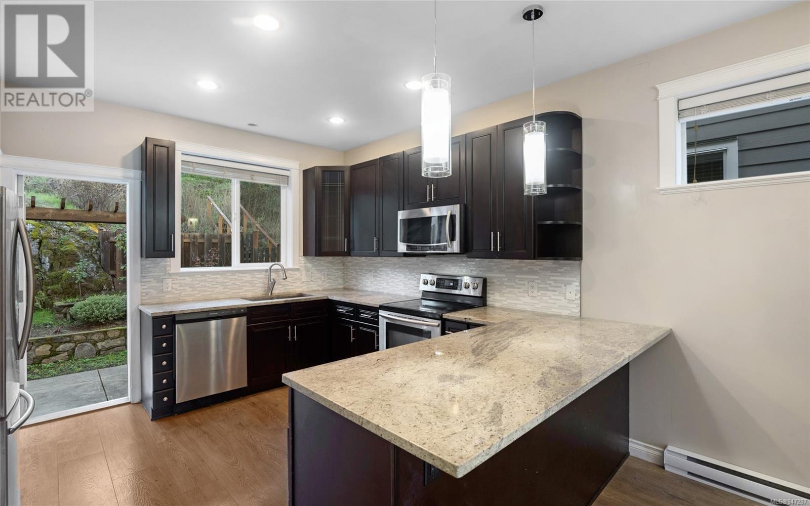 Exceptional Value offered in this 4Bed & 4Bath family home! This 3 level residence boasts an incredible opportunity for those looking to get into the market by providing an option for a mortgage helper! The lower level can easily be converted into a 1bed & 1Bath in-law suite for that extra financial help OR for those larger families needing some extra space for the teenagers or in-laws! The main level will surely impress w/a generous open layout & high-end chefs kitchen w/granite counters & maple cabinets that seamlessly flows out to your peaceful & naturally landscaped rear patio & yard! The living room is accented w/a cozy Gas Fireplace, HW floors & a bonus front deck! Upstairs has a large Primary suite w/ensuite & walk-in closet, 2 more beds & a 4th Bath! Situated down a family oriented quiet inner street, this is a wonderful home. Located steps to Happy Valley Elementary, parks, galloping goose & minutes to the Westshore's bustling core. This home has it all & is a must see! (id:22211)