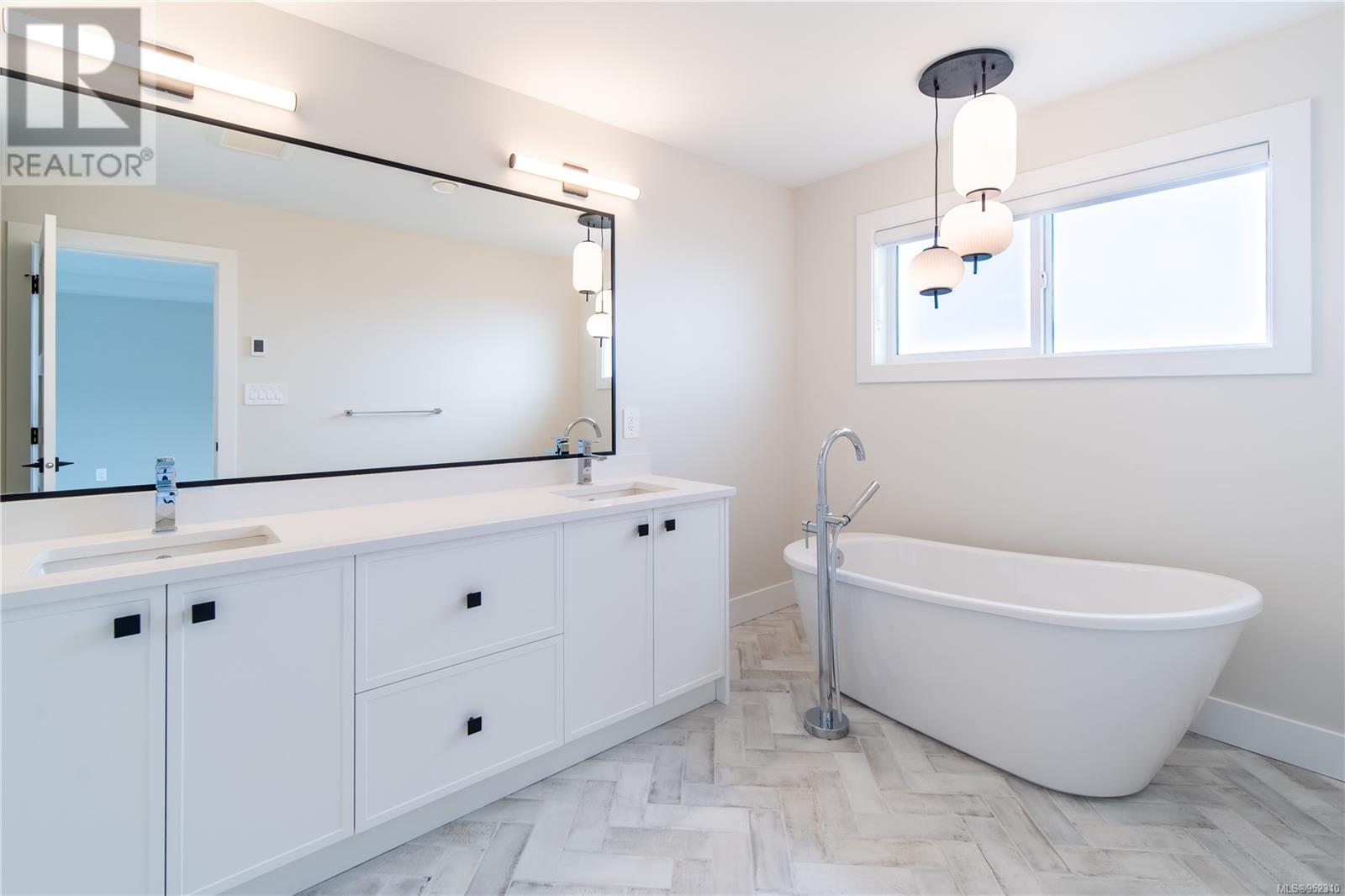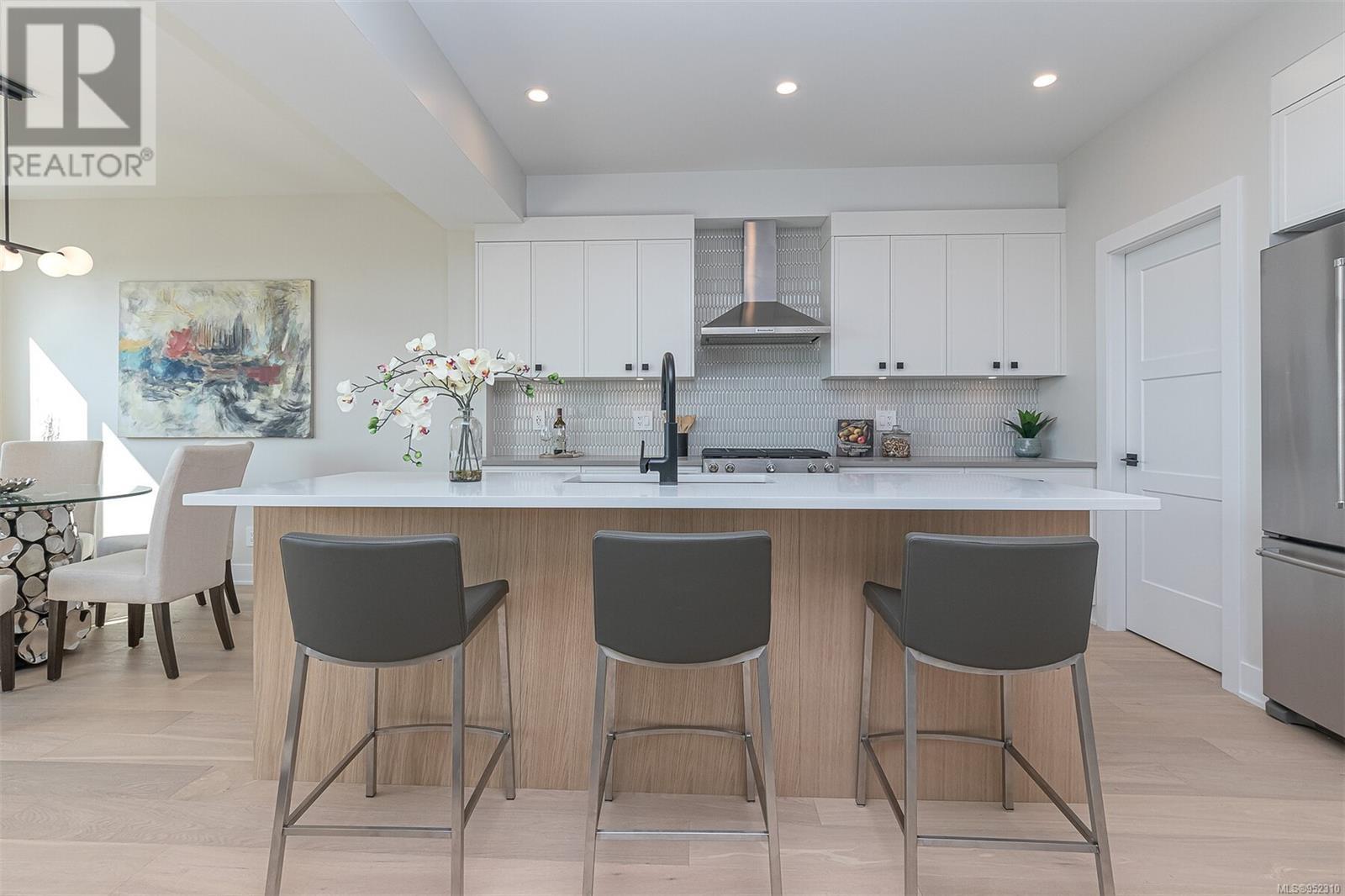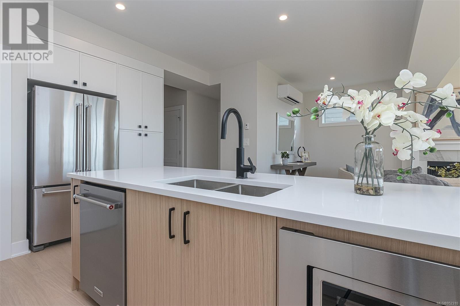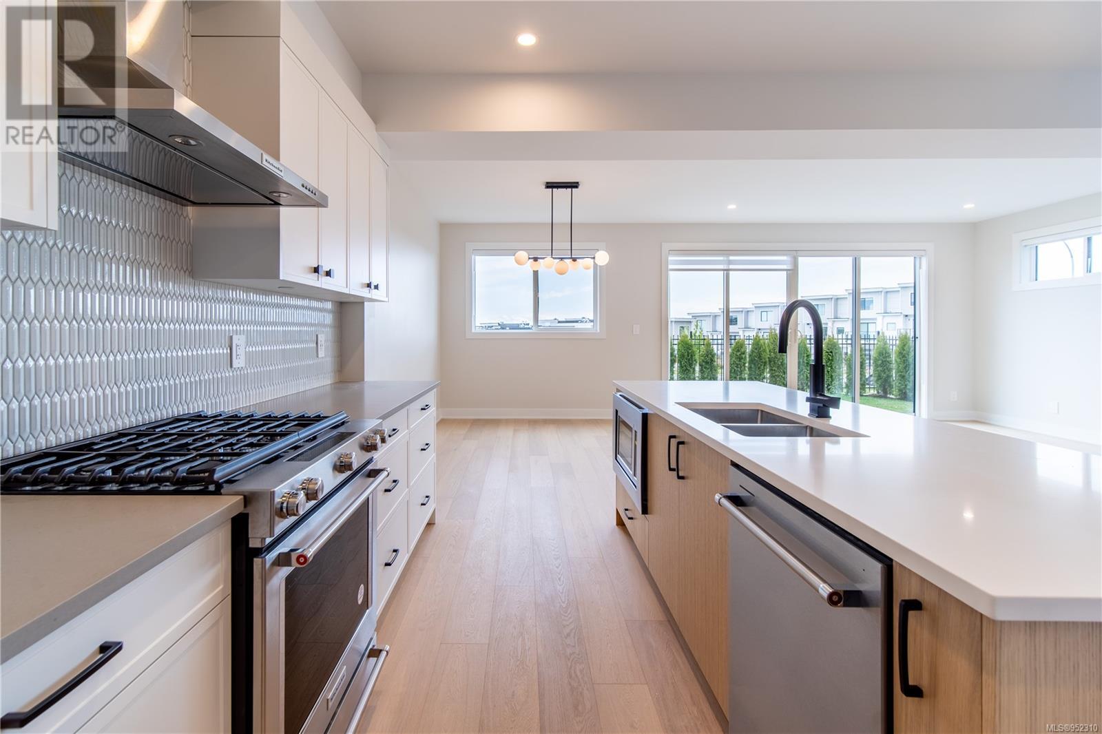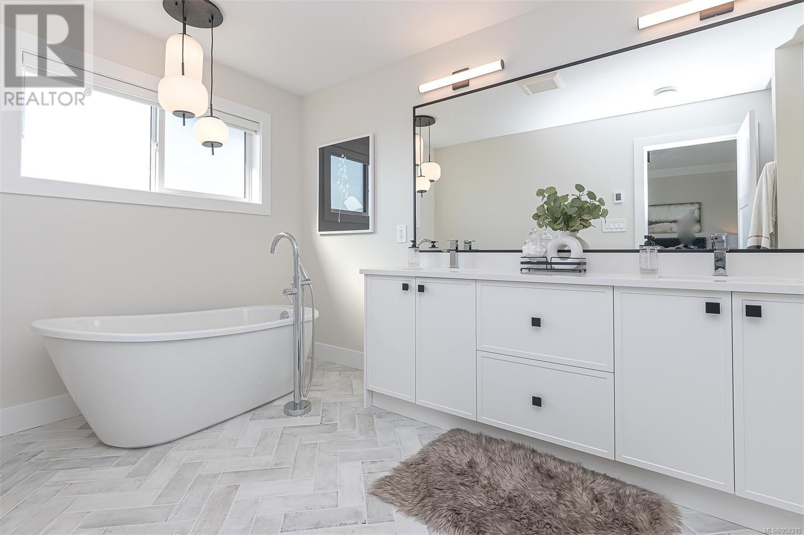 Final opportunity to own a Premier View half duplex located in the southern area of Bear Mountain. Featuring 4 beds and 3 baths in its approximately 2250 finished sq ft spacious layout, with an added crawl space for efficiency and storage. Mini split ducted upper floor and heat pump head lower floor system paired with gas fireplace for efficient heating and cooling, the home is Built Green. Open concept main floor with kitchen with stainless appliance package including gas stove, walk in pantry, and large island with breakfast bar. Living room opens through over-height double sliding doors to the landscaped and fully fenced rear yard with gas BBQ outlet. You can take in the views from the yard and both levels of this home with the raised foundation. Panoramic views from the primary bedroom with 5 pce ensuite featuring a stand alone tub, heated floors, and walk in shower. Dedicated laundry with storage. Hardwood flooring areas. Designer glass railings. On demand hot water. EV rough in. (id:22211)