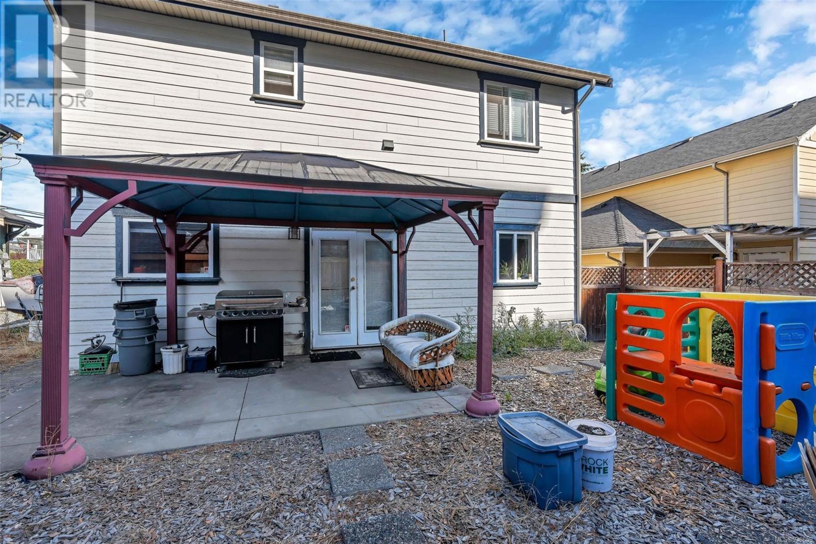The one you have been waiting for...Boasting delightful central location in the heart of Langford! This lovely two level home features thoughtful floor plan with a gourmet kitchen that is equipped with stainless steel appliances, separate dining area, cozy light-filled living room on the main level. Upstairs offers three generous sized bedrooms including a master bedroom with walk-in closet and 4 piece ensuite, one other full bath and laundry. Flat sunny backyard is fully fenced with a gazebo for relaxation and a shed for your lawn equipment. Amazing prime location just steps to schools, Millstream Shopping Centre, Costco, Home Depot, Best Buy, Bus routes, parks, Bear Mountain Golf course and so much more! If you are looking for an affordable starter home or investment property, don't miss this! (id:22211)