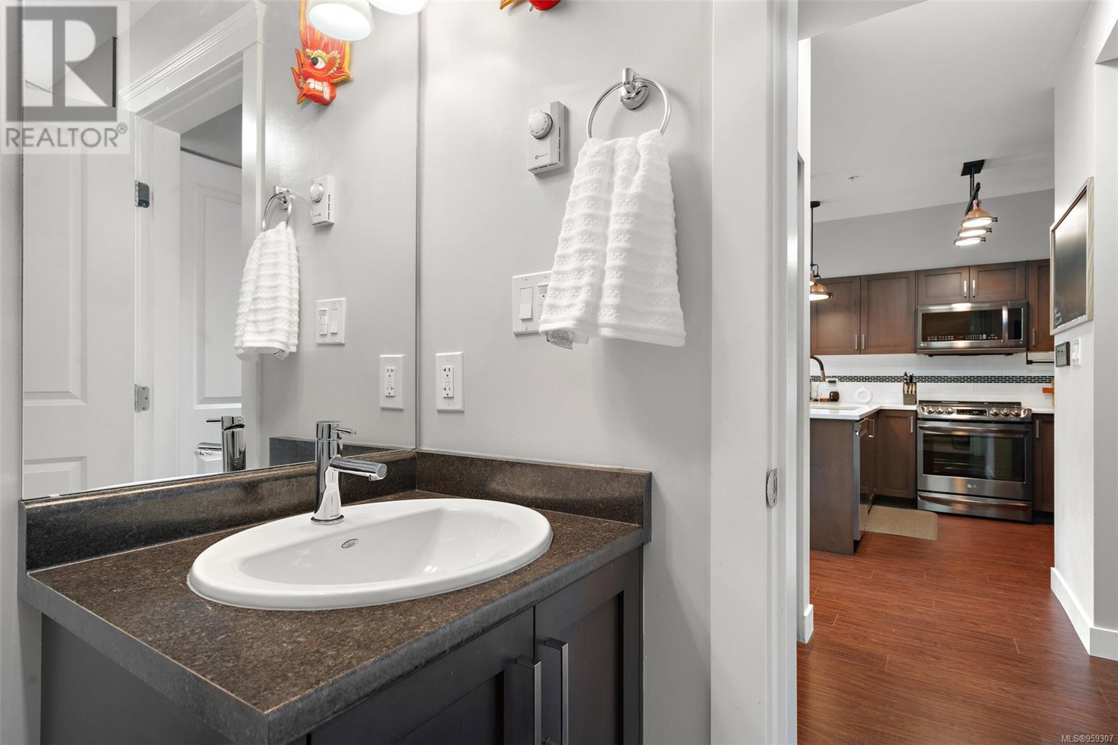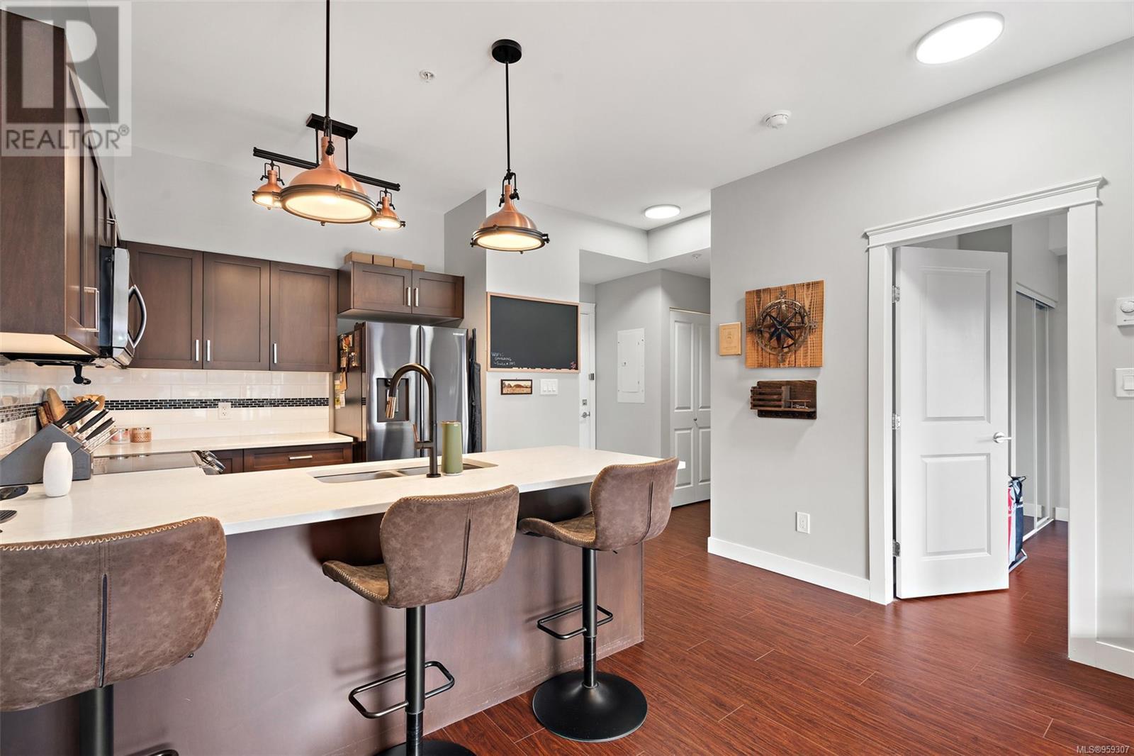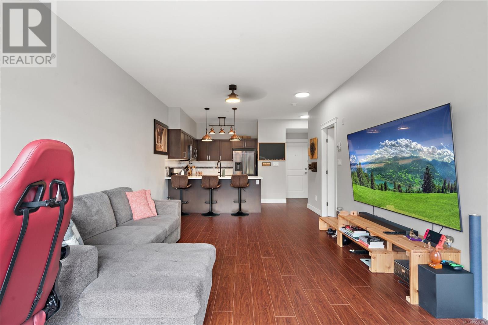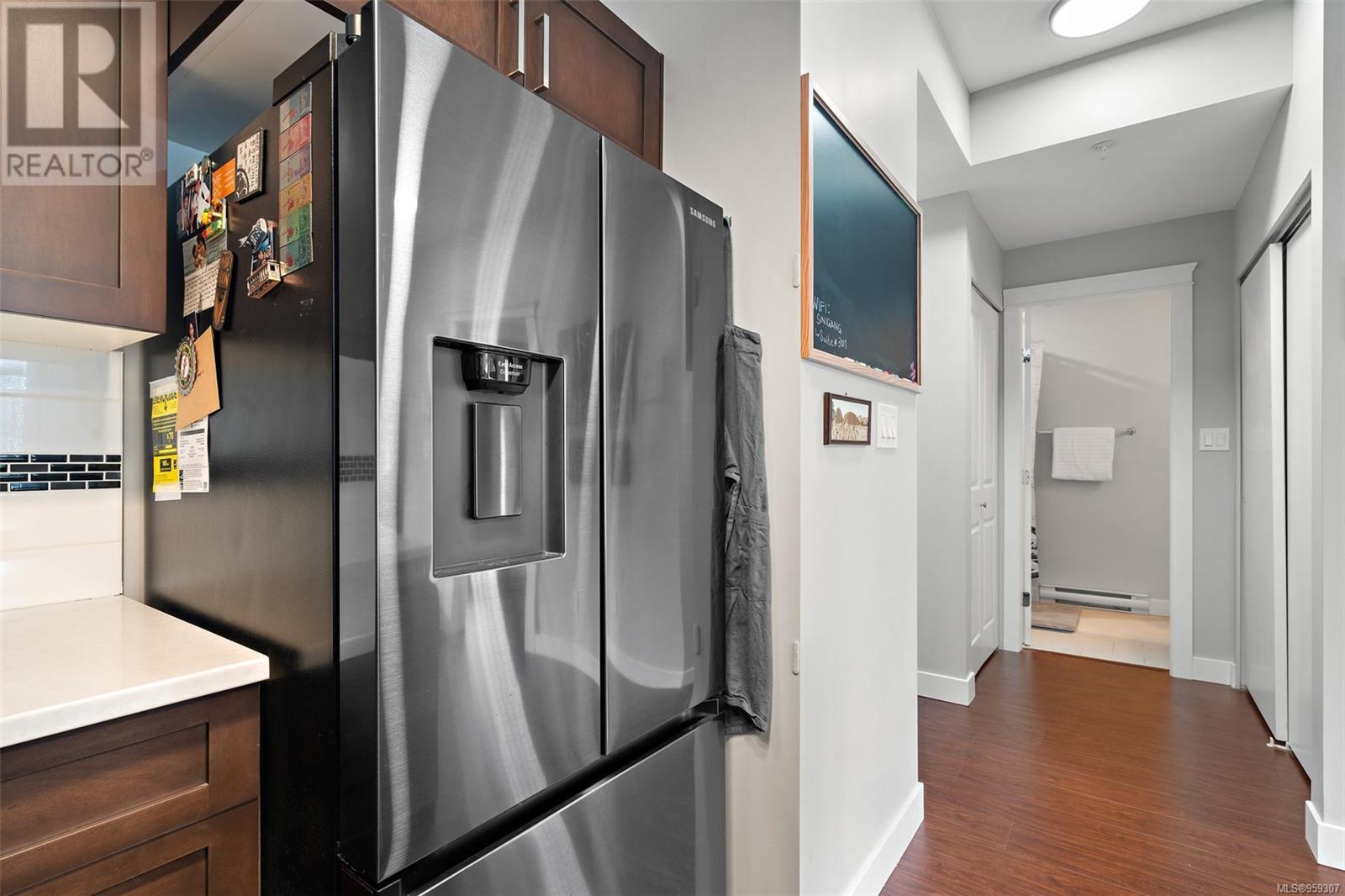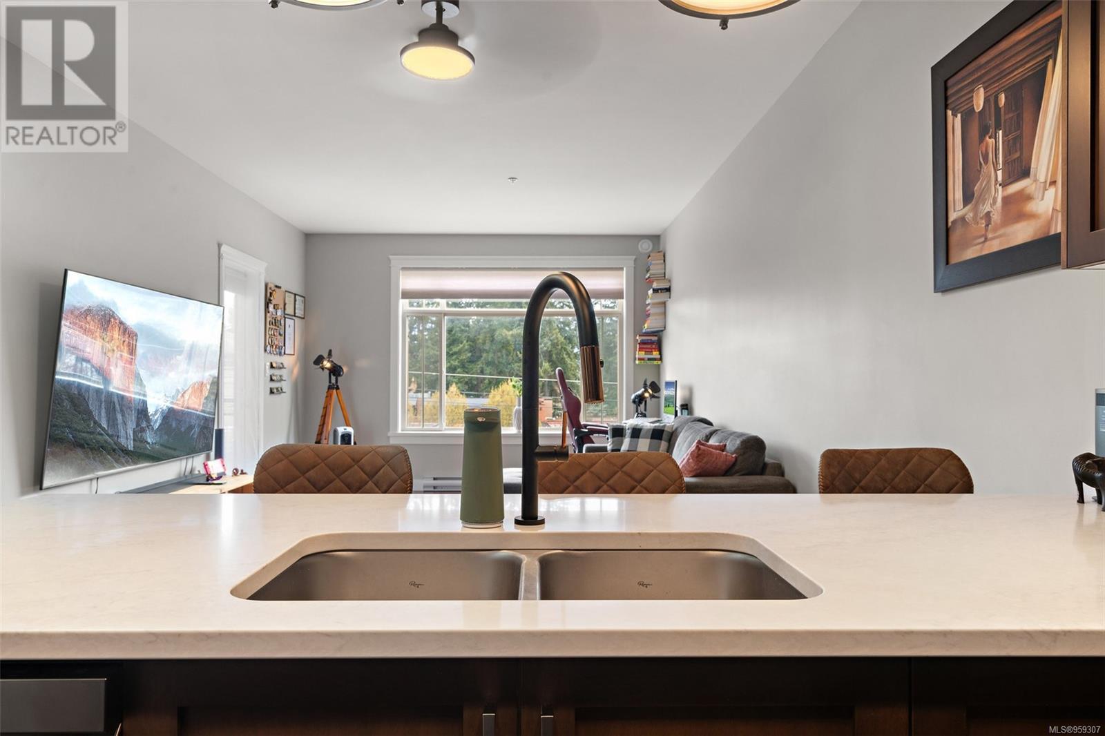 Welcome to the convenience and comfort of this beautiful 1 bedroom condo. Located in the heart of Langford, near your choice of dining, shopping, transit and soon to be University.... This location truly has it all! Enjoy the updated 1 bedroom 1 bathroom condo with its open concept Kitchen-Living-Dining space with 9 foot ceilings and stylish black stainless steel appliances. Savour sipping your morning coffee out on your own private balcony overlooking Goldstream avenue and your take advantage of your own in suite laundry to ensure all the conveniences are covered. Unit comes with a covered, secured parking stall below the building. This is your opportunity to take advantage of the central convenient location, the modern finishes of the condo and the amazing price of our offering! Call your Realtor today! (id:22211)