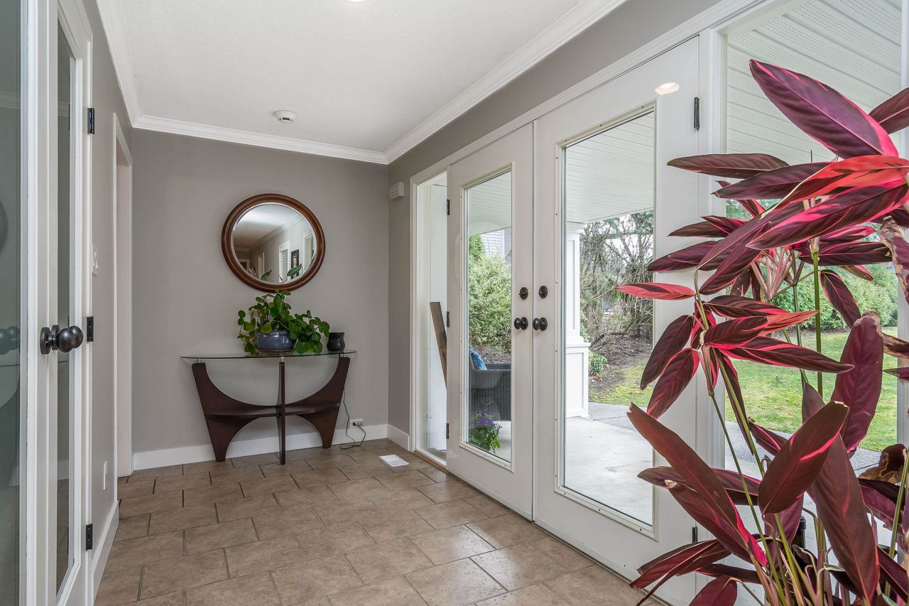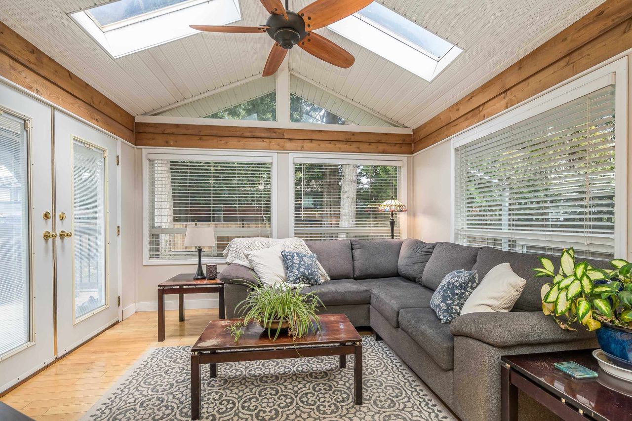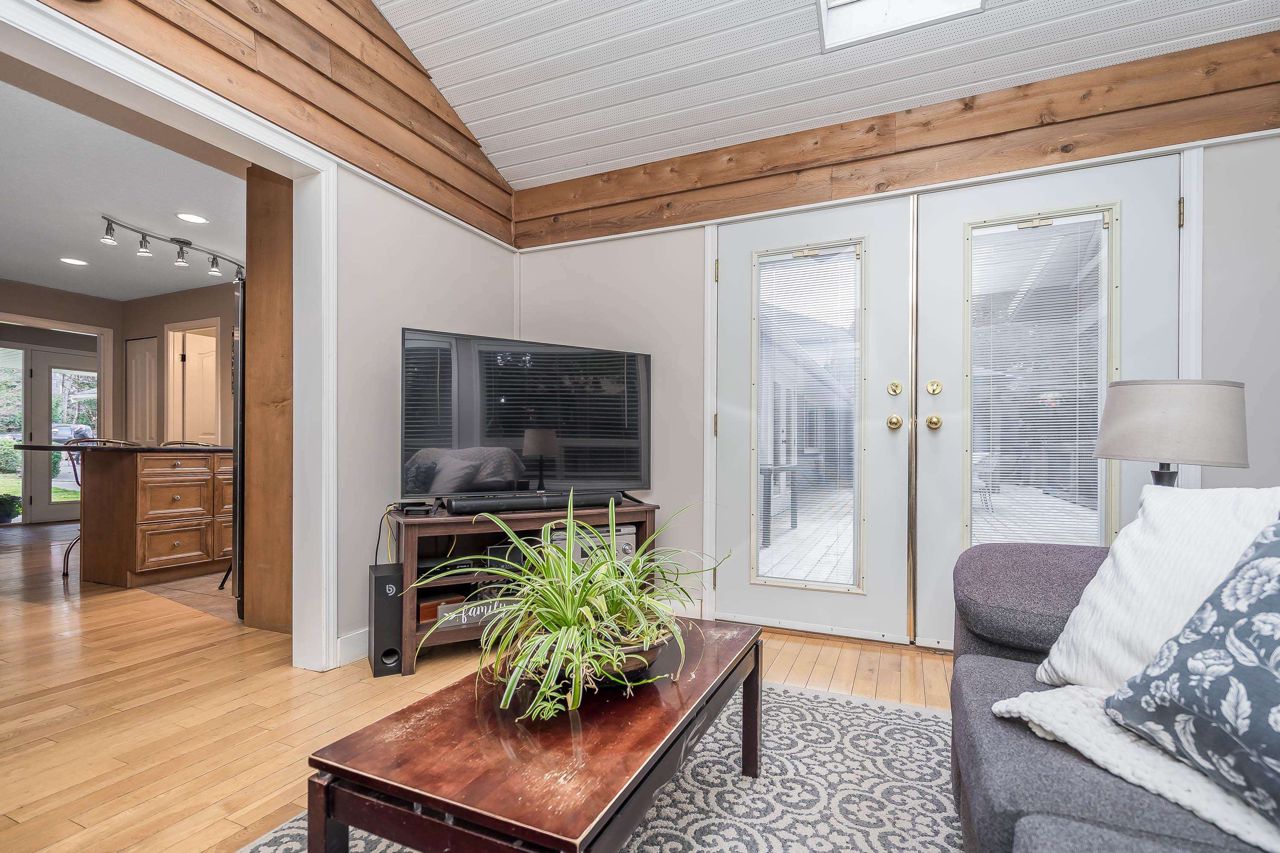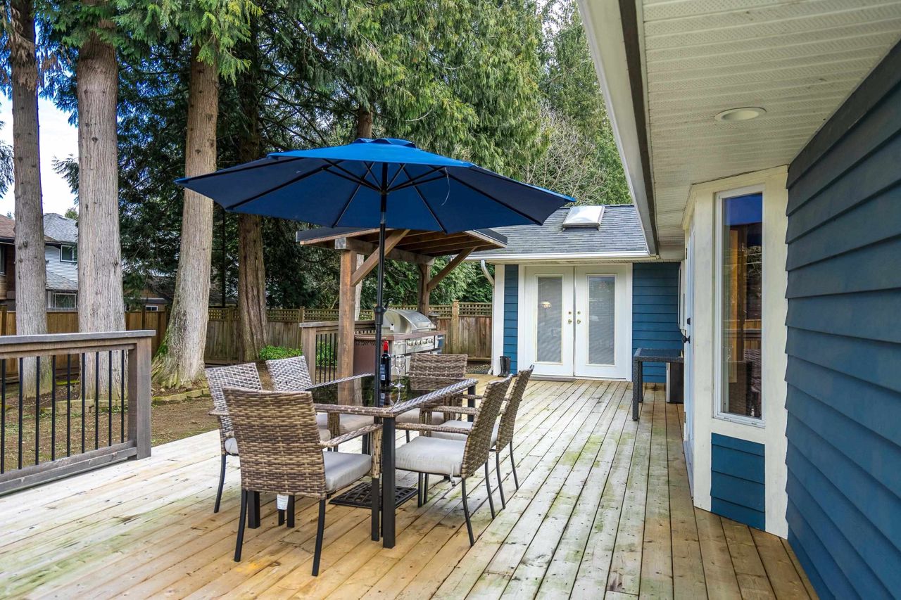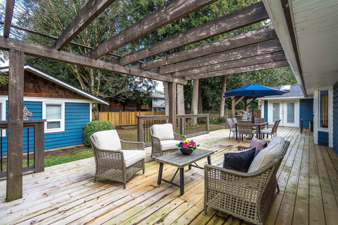 Sprawling 3 Bed 3 Bath Rancher with 3 Car Garage situated on a rare Quarter Acre Lot in Walnut Grove! Enjoy your morning coffee on the cozy covered front porch, or entertain on the massive back sundeck with built-in kitchen & wired for hot tub. Featuring a Kitchen w/ stainless appliances & gas stove, a spacious eating area, & bright family room with hardwood flooring, french doors & vaulted ceiling. The expansive living/dining room includes french doors to the backyard. Primary Bed has Updated Ensuite featuring dual sinks & walk-in shower, door to deck & spacious closet. 2 other Sizeable Bedrooms and full bath. Separate shed w/ electrical would make a great home office/art studio. New attic insulation! Air Conditioning! Quiet dead-end road, close to transit and Dorothy Peacock Elementary.