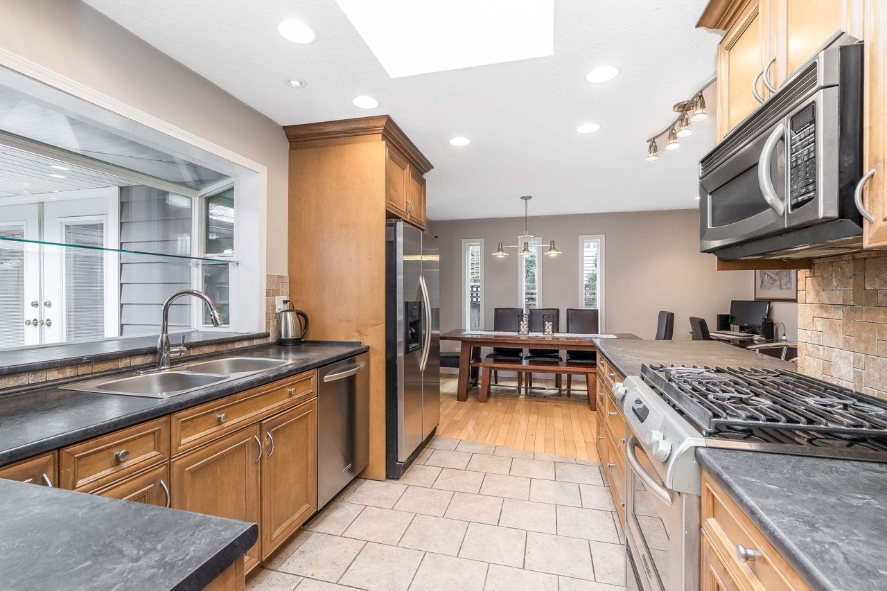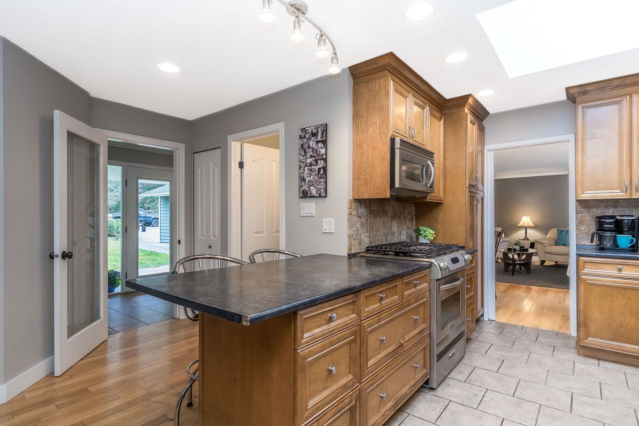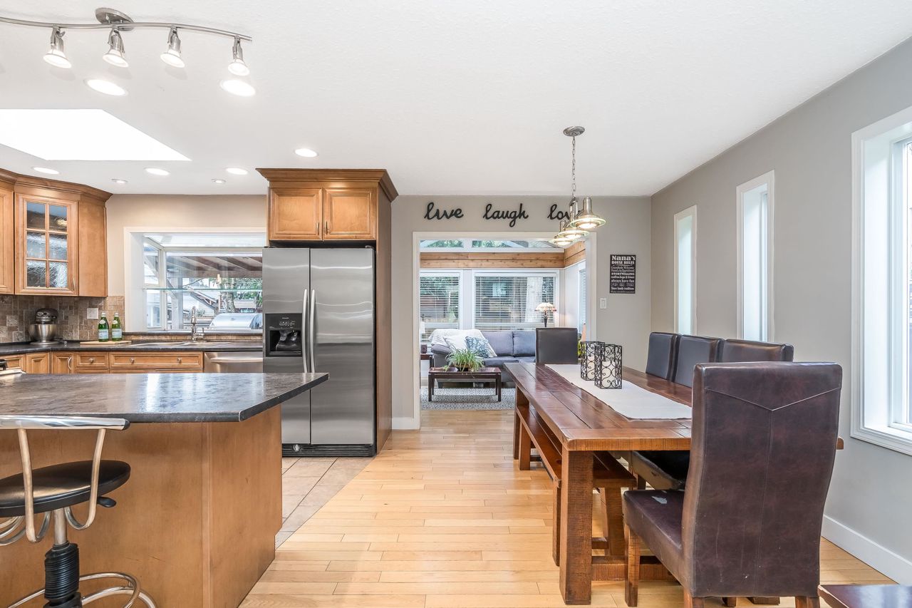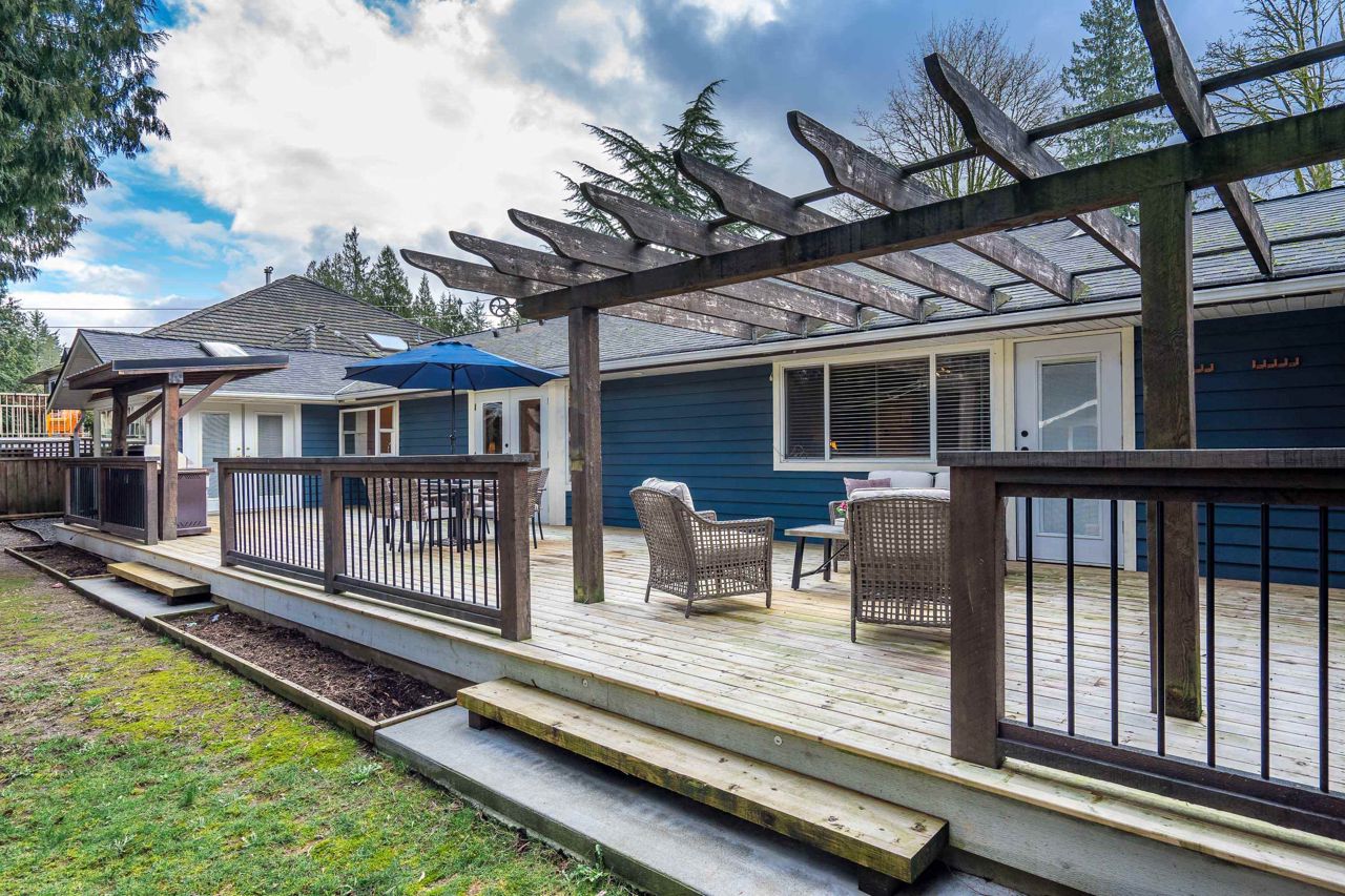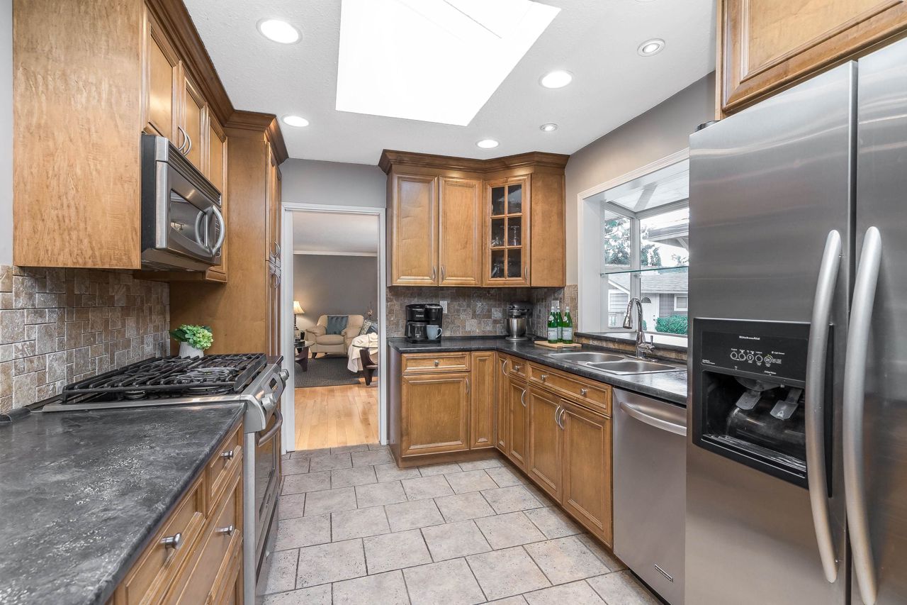 Sprawling 3 Bed 3 Bath Rancher with 3 Car Garage situated on a rare Quarter Acre Lot in Walnut Grove! Enjoy your morning coffee on the cozy covered front porch, or entertain on the massive back sundeck with built-in kitchen & wired for hot tub. Featuring a Kitchen w/ stainless appliances & gas stove, a spacious eating area, & bright family room with hardwood flooring, french doors & vaulted ceiling. The expansive living/dining room includes french doors to the backyard. Primary Bed has Updated Ensuite featuring dual sinks & walk-in shower, door to deck & spacious closet. 2 other Sizeable Bedrooms and full bath. Separate shed w/ electrical would make a great home office/art studio. New attic insulation! Air Conditioning! Quiet dead-end road, close to transit and Dorothy Peacock Elementary.