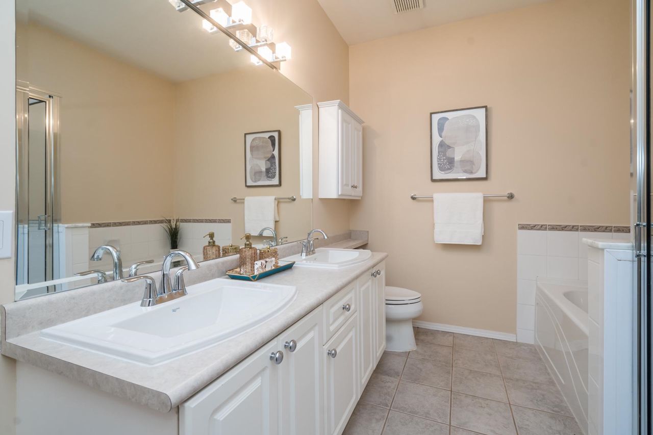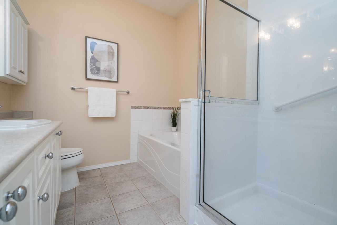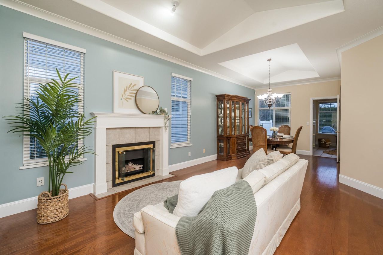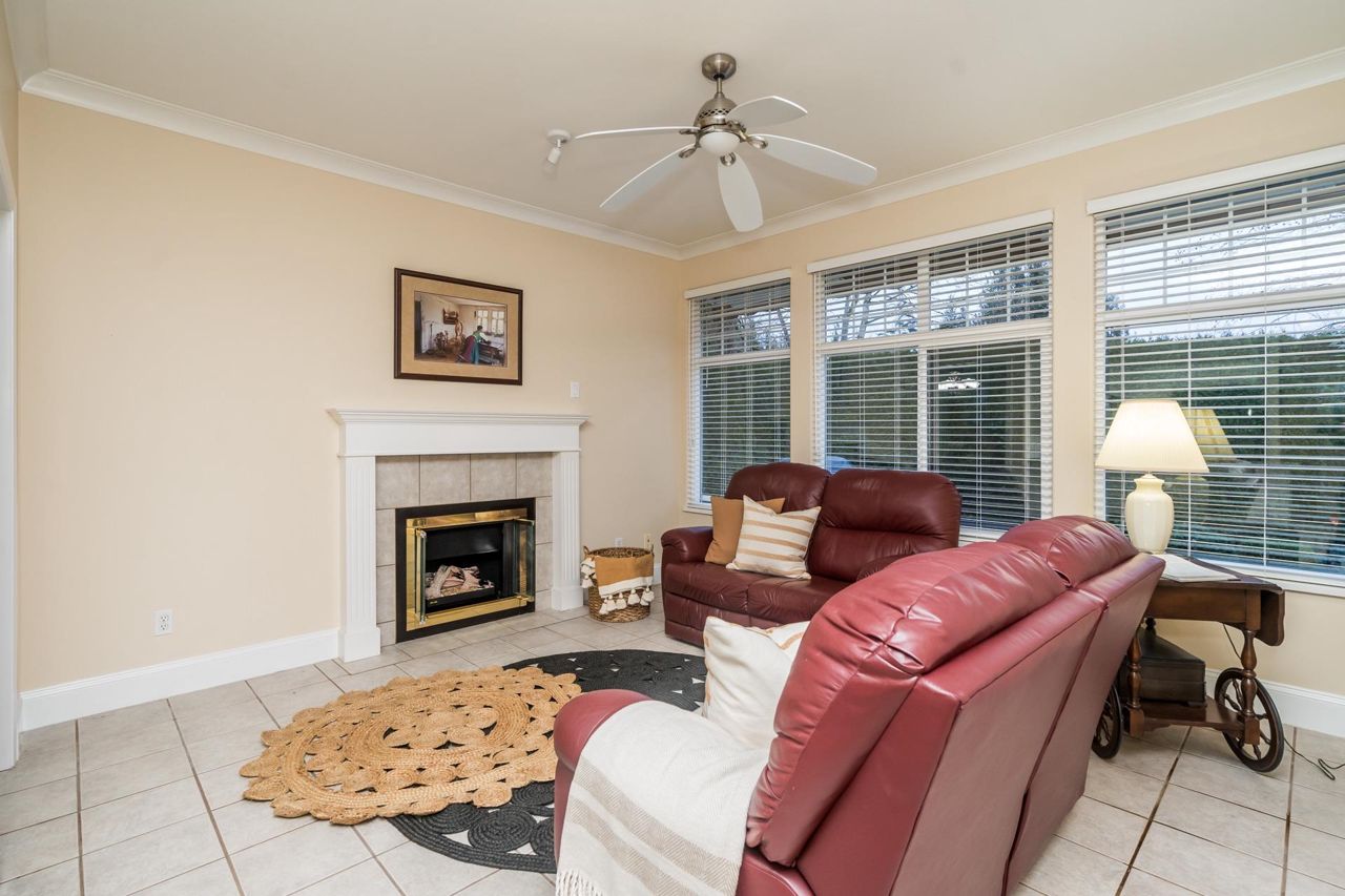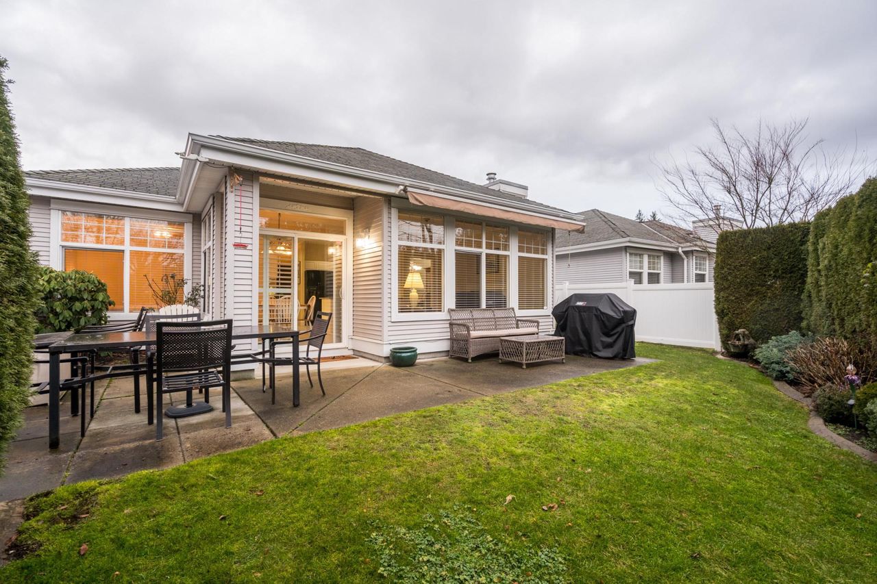 Welcome to the highly coveted neighborhood of Munday Creek. This beautiful DETACHED rancher has so much to love including a great floorplan, 2 gas fireplaces, low strata fees and lots of natural light. The MASTER ON THE MAIN includes views of your private backyard and a 5 piece ensuite with double sinks, a soaker tub and walk in shower. The spacious second bedroom has a walk-in closet and is located right next to the second bathroom- perfect for guests! Not to mention a DOUBLE CAR GARAGE with storage cabinets, and a built in vacuum. VAULTED ceilings in the dining and living room. The bright kitchen has lots of counter space and cupboards. Not to mention, a serene and private backyard with an extended patio with an awning for year round enjoyment.
