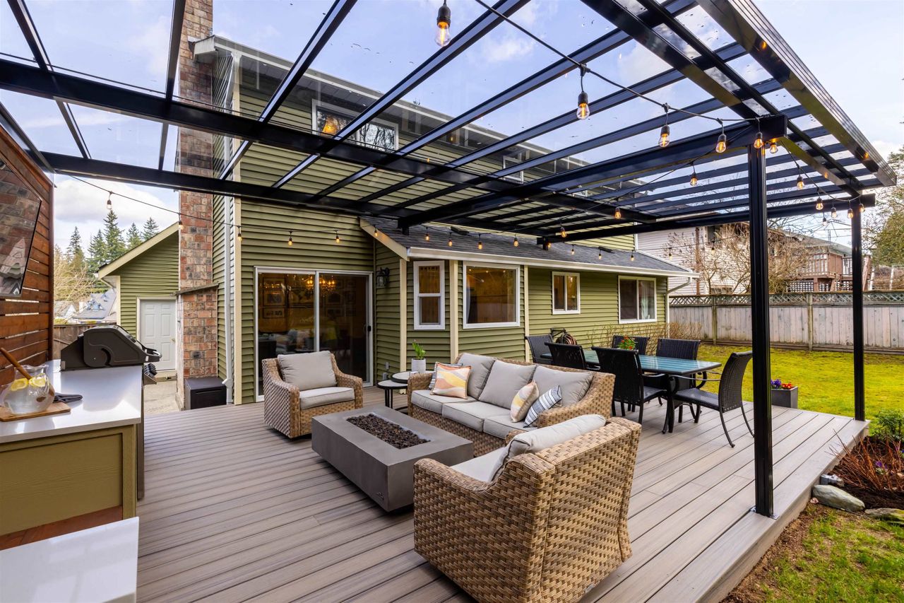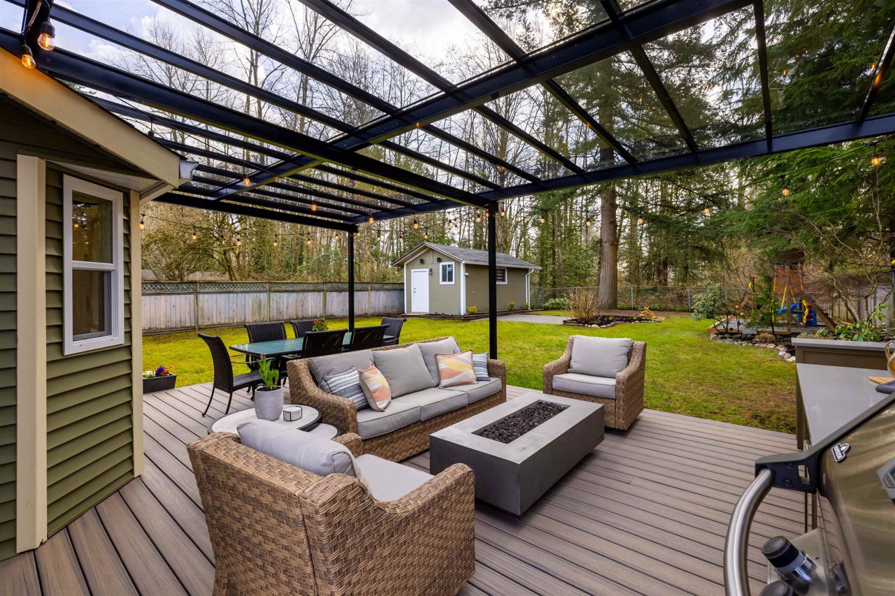 Desirable Walnut Grove location, steps to West Langley Hall & Park. Enjoy ultimate privacy in your massive yard, backing protected greenspace w/ no neighbours for blocks behind you. Extend the living space w/ the 22'x16' fully covered patio w/ glass awning, Trex composite decking, outdoor kitchen w/ quartz countertops, built-in gas BBQ, bar fridge & gas fire pit. The kids can play on the playground or explore the ravine & creek. 19'x11' workshop w/ it's own 100 amp panel. Water features & manicured gardens complete the outdoor space. Many interior updates incl. white shaker kitchen cabinets & quartz counters, S/S appliances, laundry / mud room, & powder room. Windows, siding, & roof have all been updated (2014-2016). Come see this amazing family home!