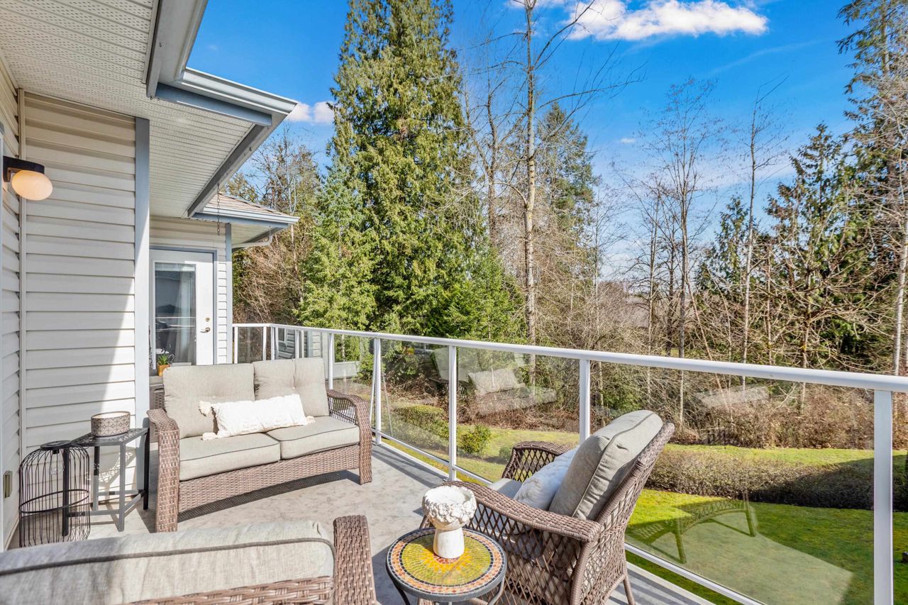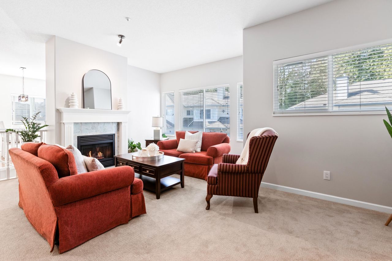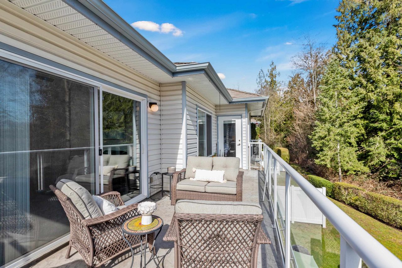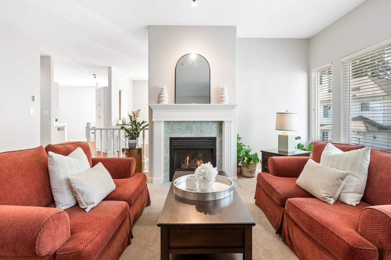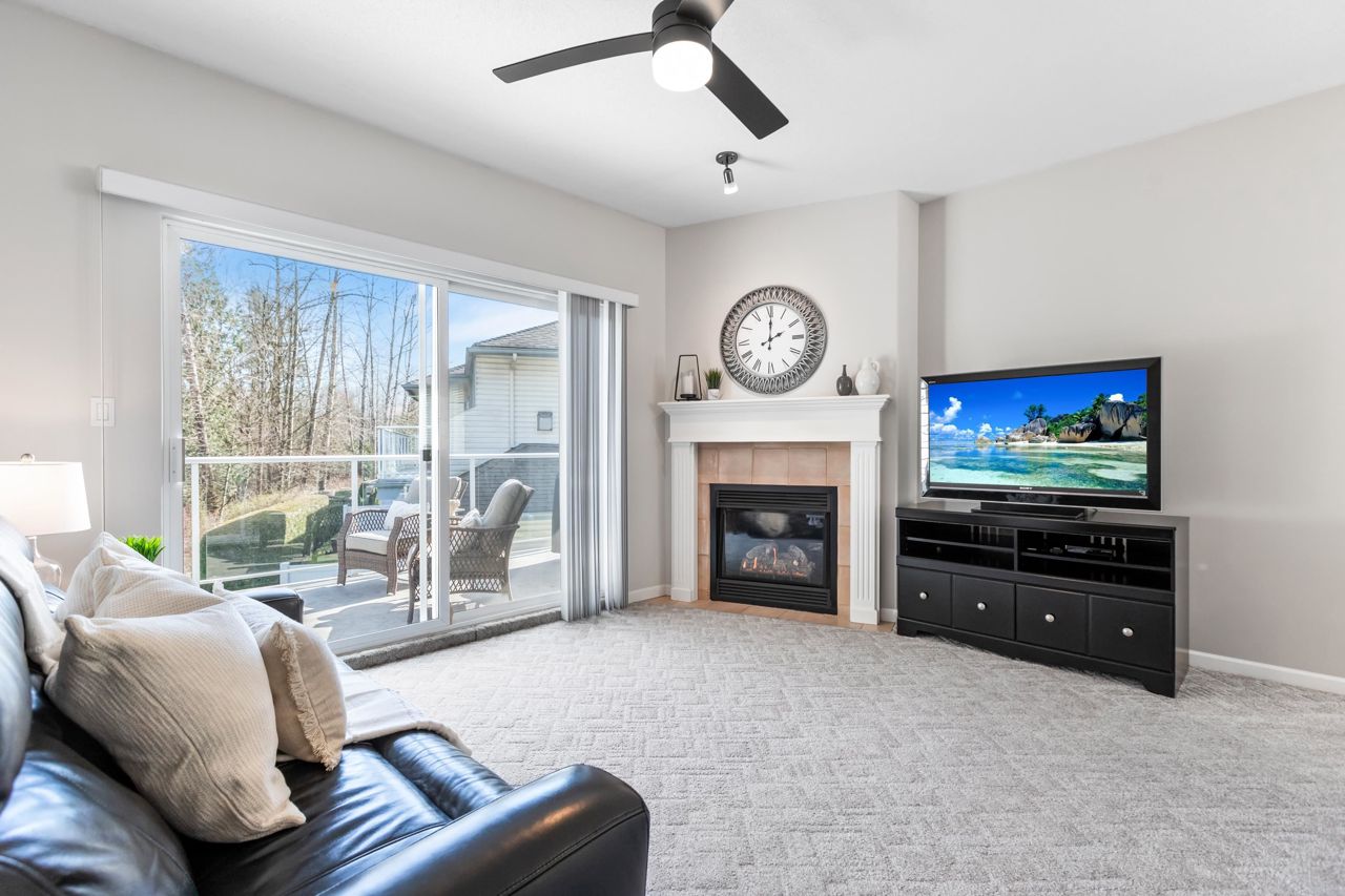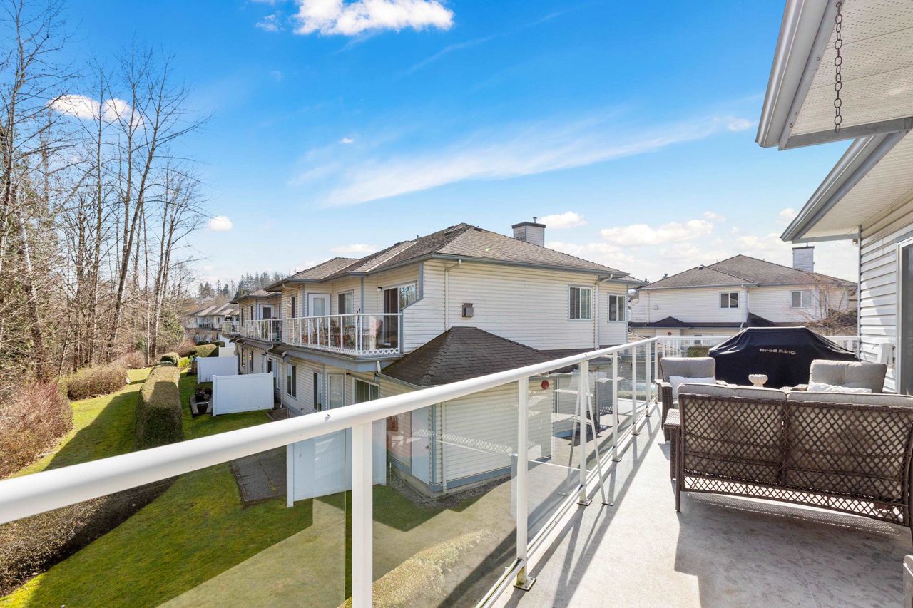 BEAUTIFULLY MAINTAINED & NESTLED IN THE DESIRABLE WALNUT GROVE AREA, this Upper Unit Boast a Generous Layout Featuring 2 Bedrms & 2 Bathrms. A Spacious Living Rm is Adorned W/a Cozy Gas F/P & Ample Windows that Flood the Room W/ Natural Light. An Adaptable Flex Area Offers Versatility, Easily Transformable into a Den/3rd Bedrm. Adjacent to the Living Rm is a Formal Dining Rm, connected to the Open-Concept Kitchen & Family Rm, complete W/another Inviting F/P. Step Outside onto the Expansive Deck, Enhanced W/Glass Panels, Perfect for Family Gatherings, BBQ's. Notably, is the Accompanying Private Green Space. The Primary Bedrm Featuring Access to the Deck, Double Closets & Spa like Ensuite W/Separate Tub & Shower. Highlights include a Spacious Laundry Rm, Radiant Heat & Double Car Garage.