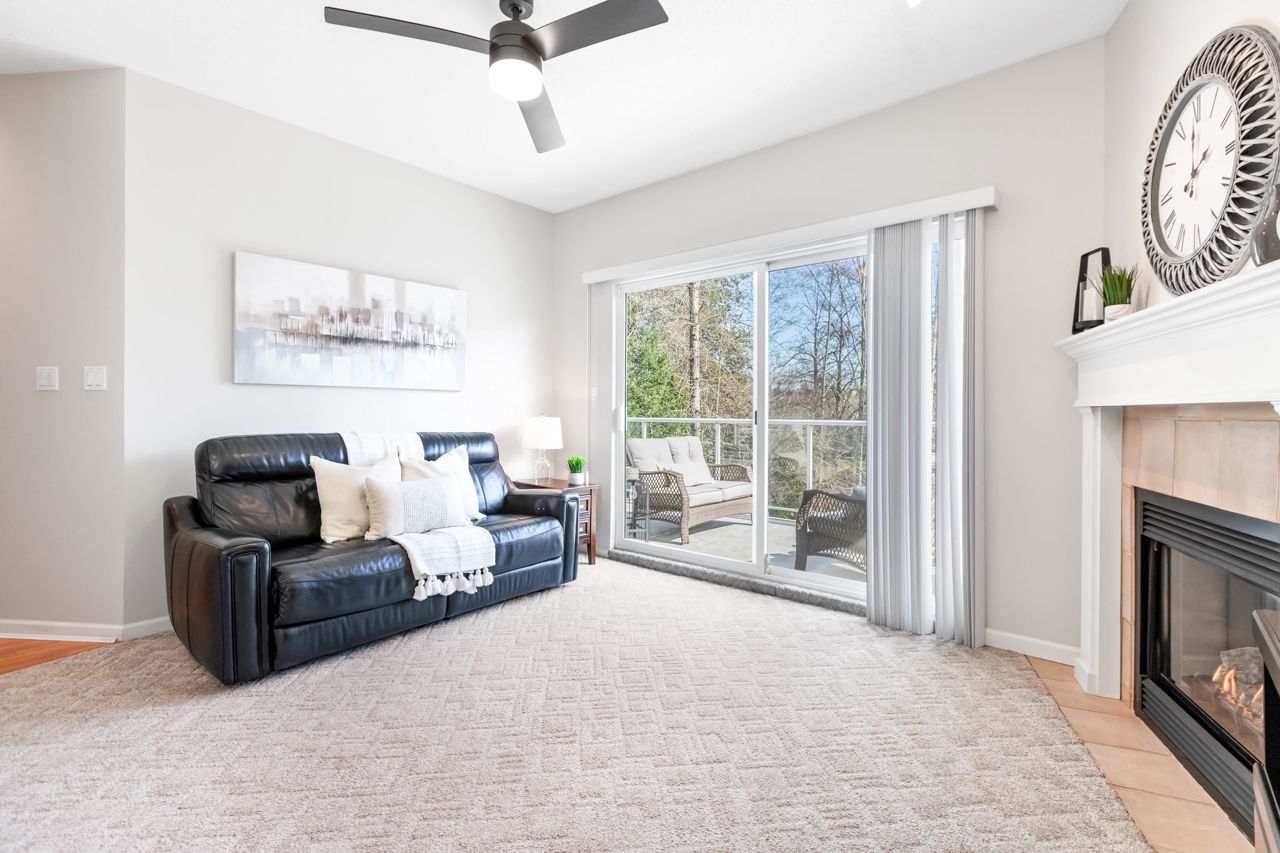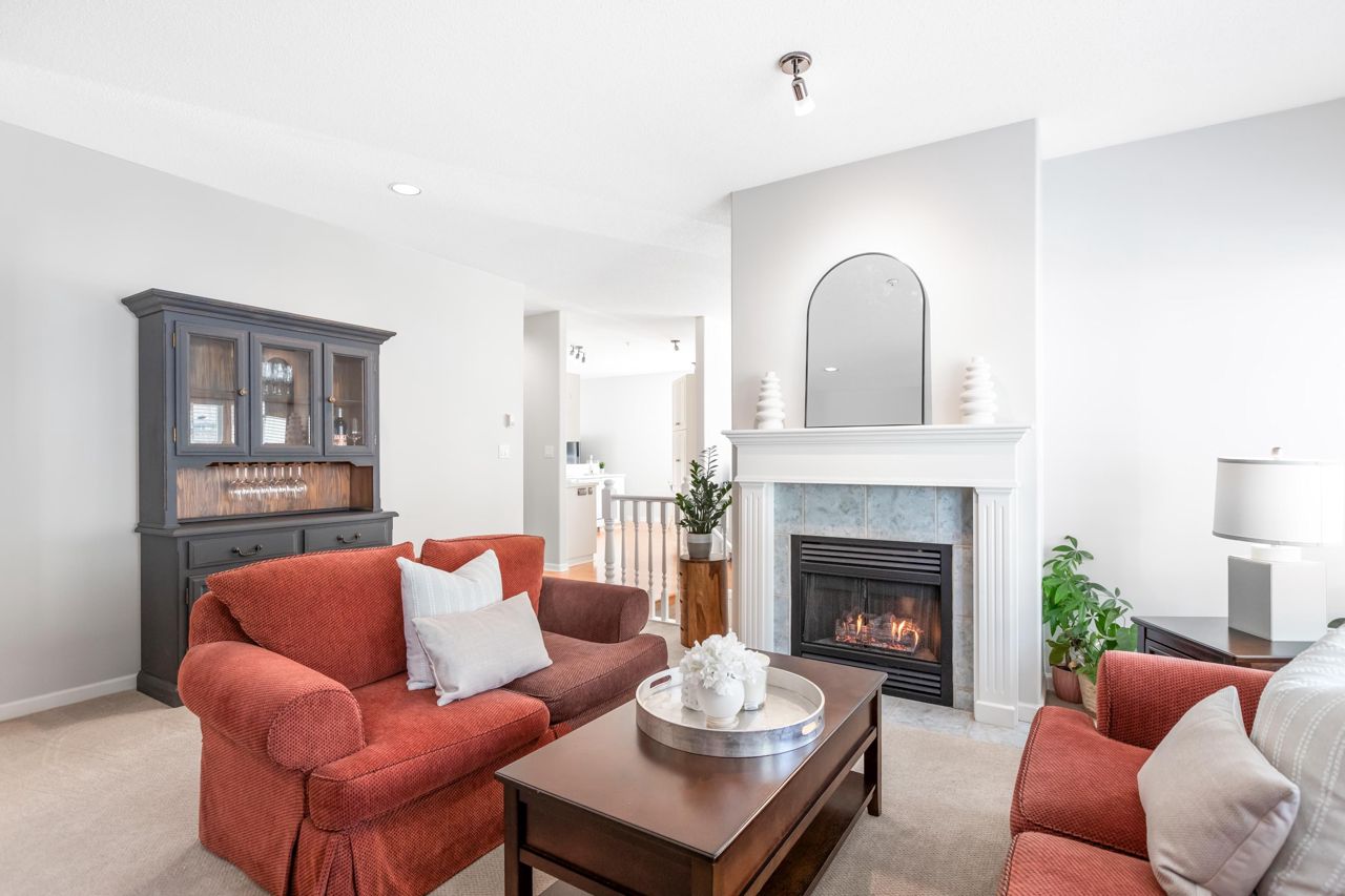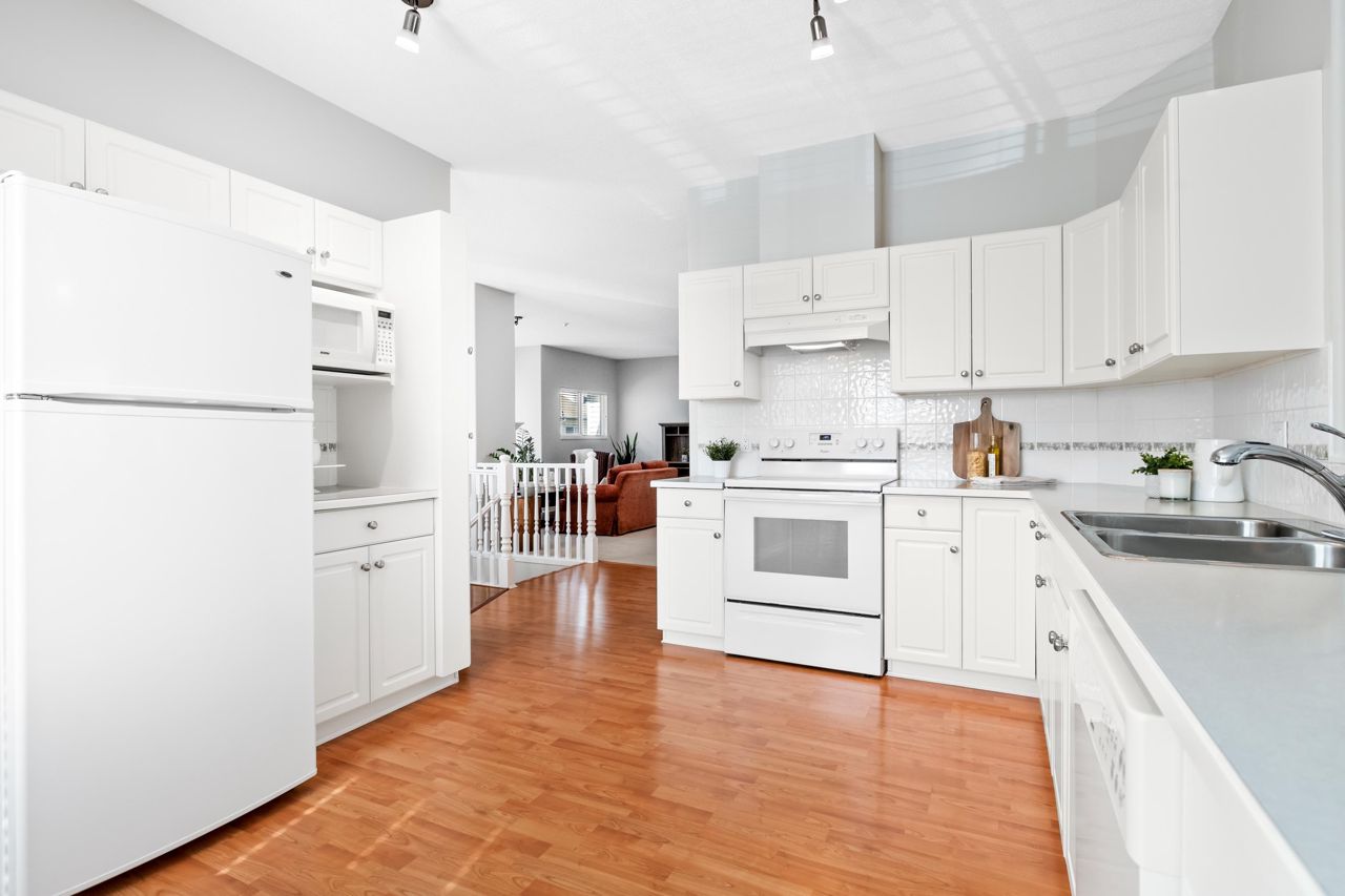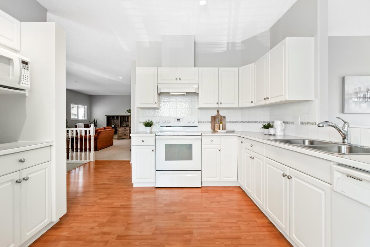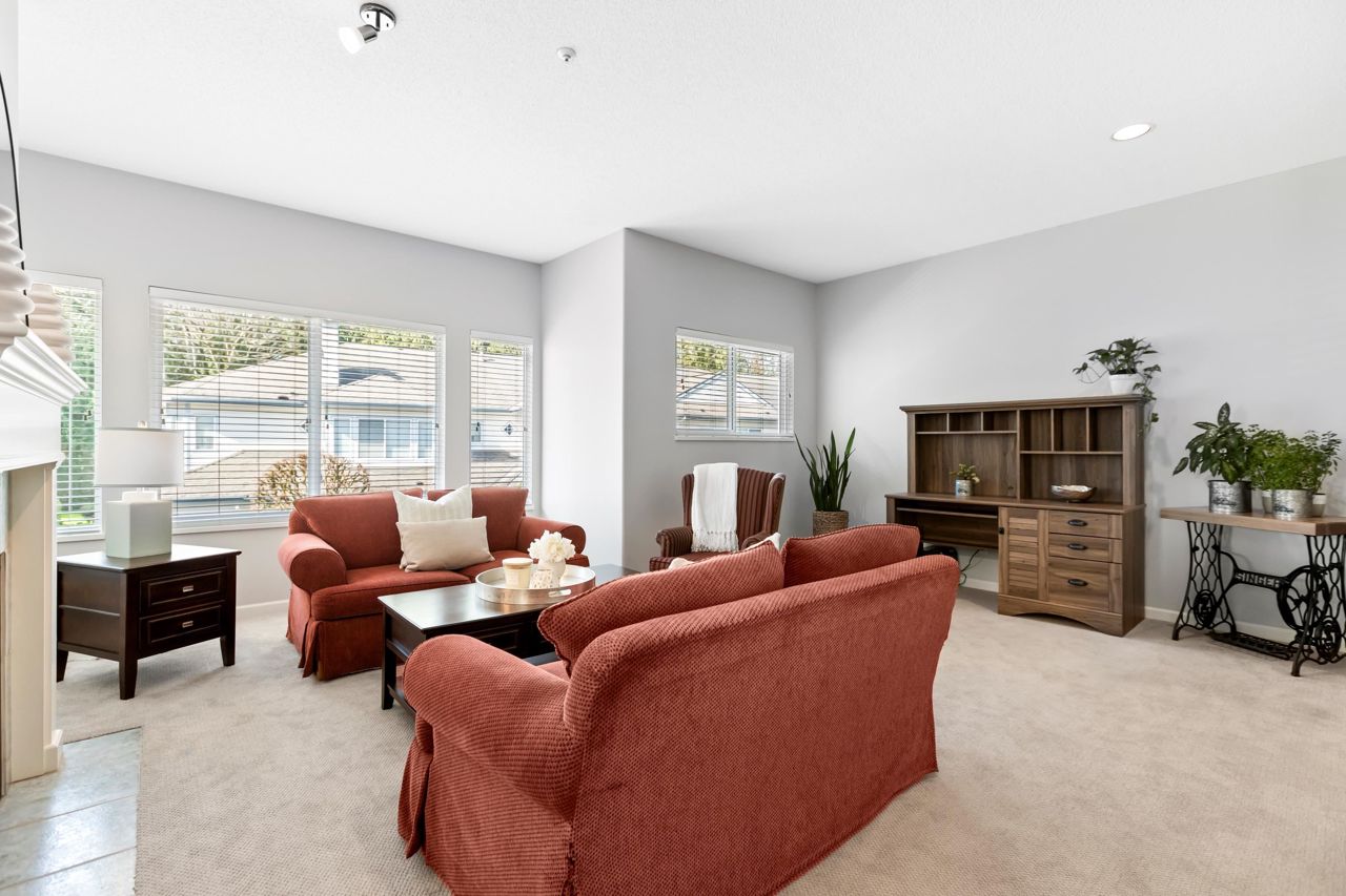 BEAUTIFULLY MAINTAINED & NESTLED IN THE DESIRABLE WALNUT GROVE AREA, this Upper Unit Boast a Generous Layout Featuring 2 Bedrms & 2 Bathrms. A Spacious Living Rm is Adorned W/a Cozy Gas F/P & Ample Windows that Flood the Room W/ Natural Light. An Adaptable Flex Area Offers Versatility, Easily Transformable into a Den/3rd Bedrm. Adjacent to the Living Rm is a Formal Dining Rm, connected to the Open-Concept Kitchen & Family Rm, complete W/another Inviting F/P. Step Outside onto the Expansive Deck, Enhanced W/Glass Panels, Perfect for Family Gatherings, BBQ's. Notably, is the Accompanying Private Green Space. The Primary Bedrm Featuring Access to the Deck, Double Closets & Spa like Ensuite W/Separate Tub & Shower. Highlights include a Spacious Laundry Rm, Radiant Heat & Double Car Garage.