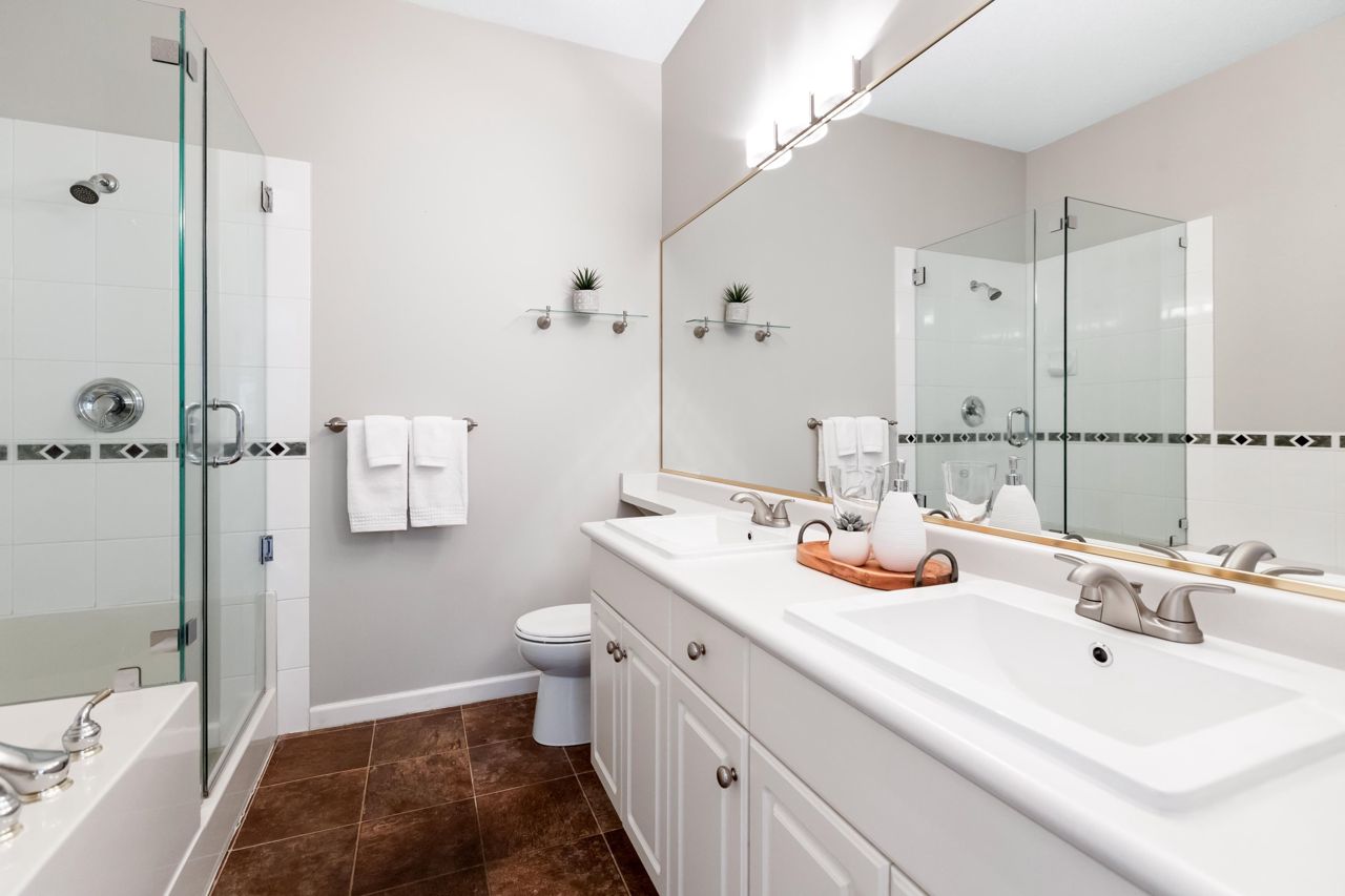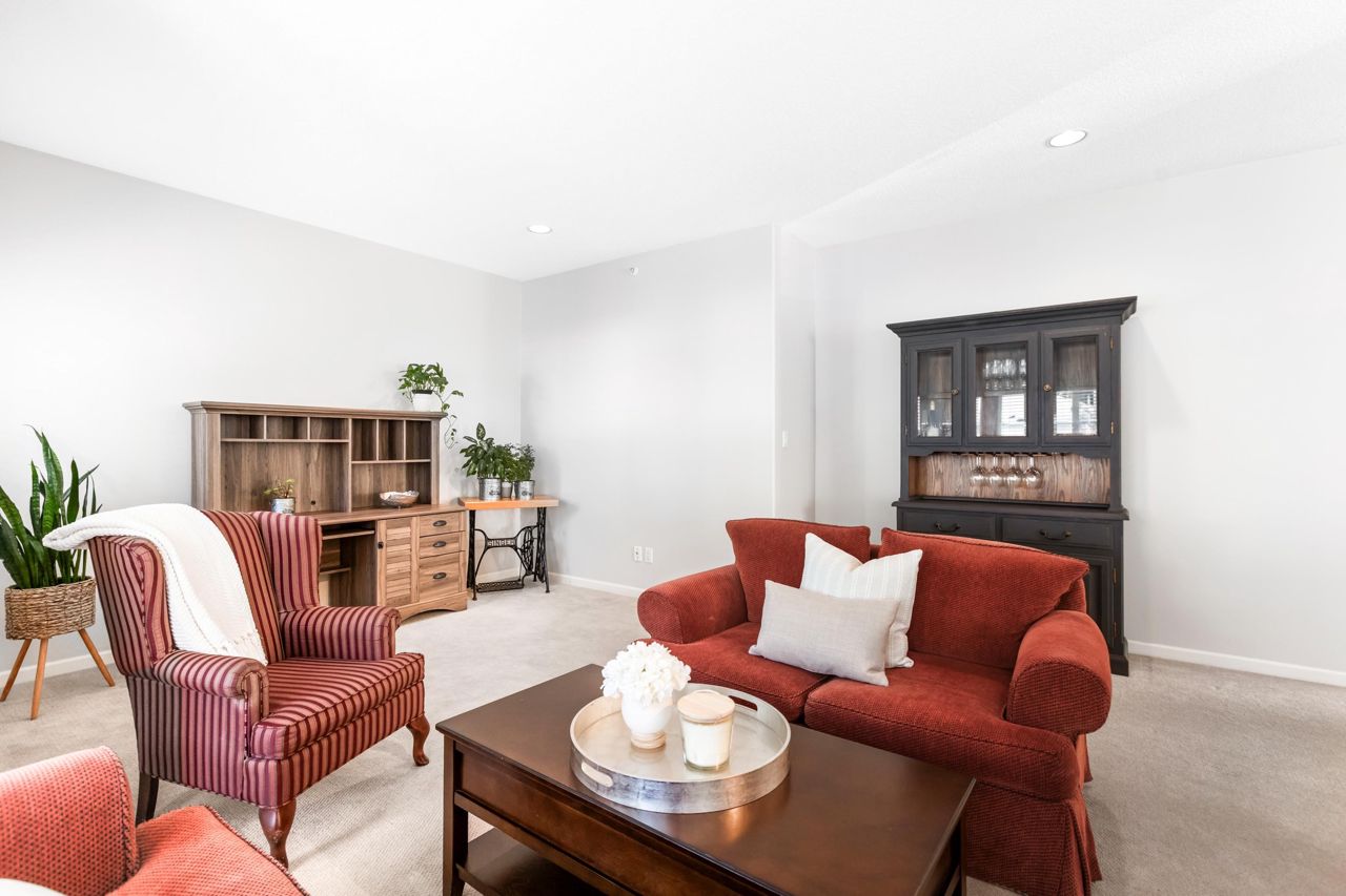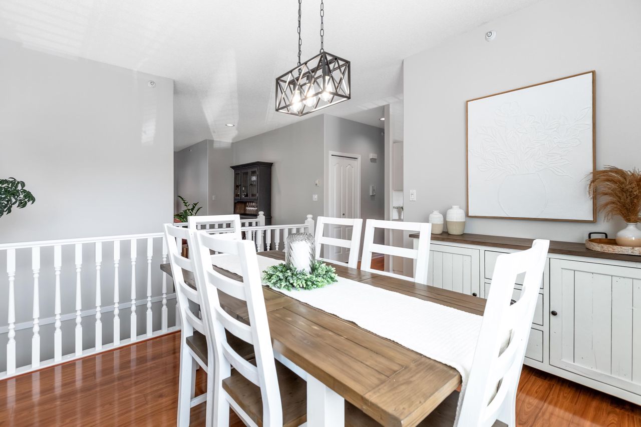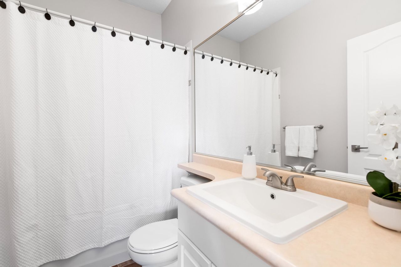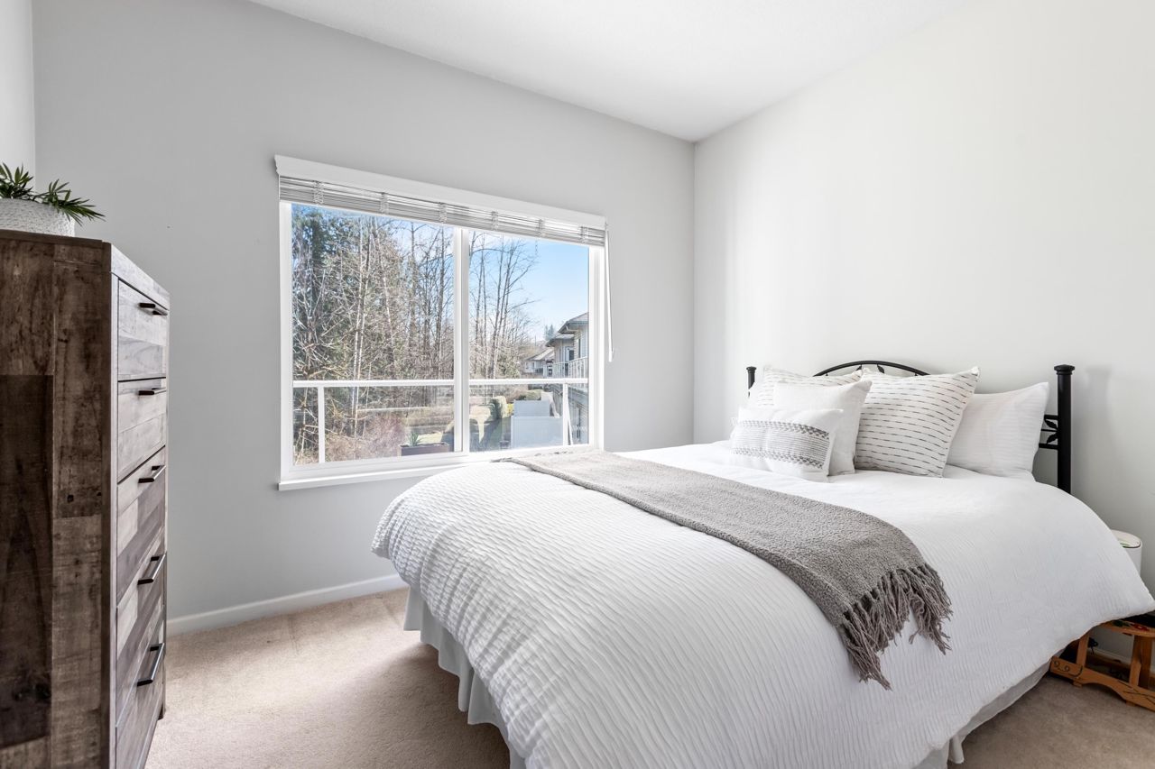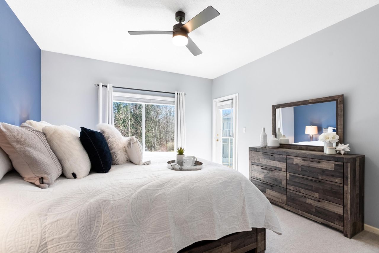 BEAUTIFULLY MAINTAINED & NESTLED IN THE DESIRABLE WALNUT GROVE AREA, this Upper Unit Boast a Generous Layout Featuring 2 Bedrms & 2 Bathrms. A Spacious Living Rm is Adorned W/a Cozy Gas F/P & Ample Windows that Flood the Room W/ Natural Light. An Adaptable Flex Area Offers Versatility, Easily Transformable into a Den/3rd Bedrm. Adjacent to the Living Rm is a Formal Dining Rm, connected to the Open-Concept Kitchen & Family Rm, complete W/another Inviting F/P. Step Outside onto the Expansive Deck, Enhanced W/Glass Panels, Perfect for Family Gatherings, BBQ's. Notably, is the Accompanying Private Green Space. The Primary Bedrm Featuring Access to the Deck, Double Closets & Spa like Ensuite W/Separate Tub & Shower. Highlights include a Spacious Laundry Rm, Radiant Heat & Double Car Garage.