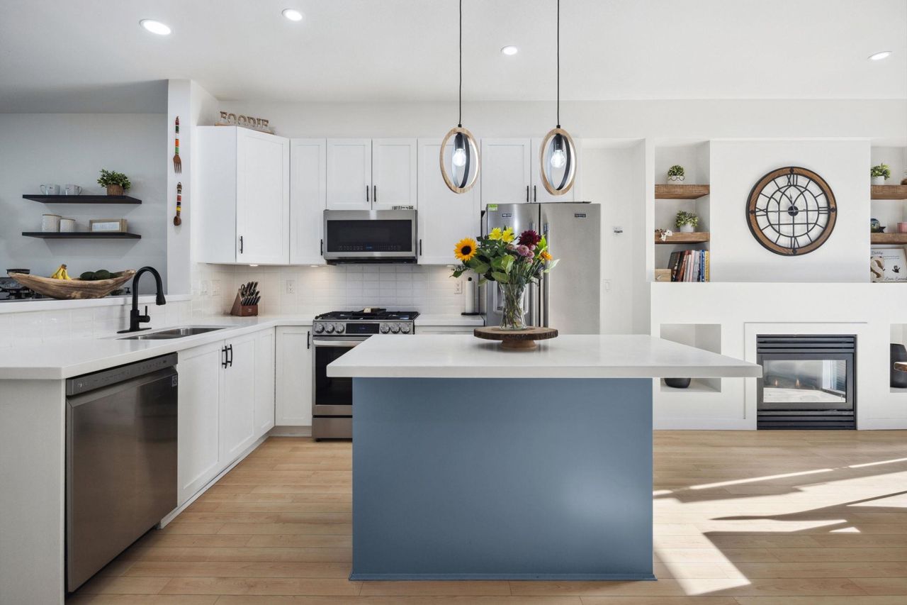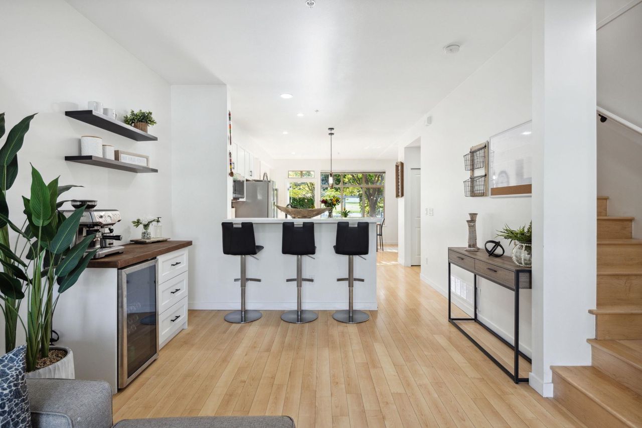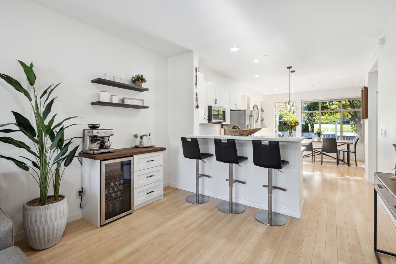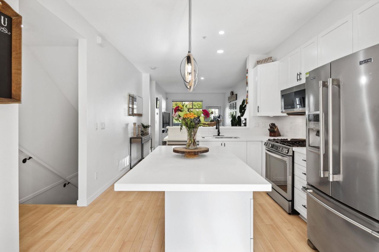 Proudly presenting this stunning, spacious, & remodelled 3 bed / 3 bath townhome w/ private yard & huge double garage in sought after Monterra. Brilliant open plan offers oversized living & dining areas, beautiful hardwood, updated main level powder room, coffee bar, & gas fireplace w/ gorgeous shelving & feature wall. Perennial kitchen includes sleek white countertop finishing, updated cabinetry, stylish pendants, pantry, & new premium s/s appliances. 3 generous bedrooms upstairs include true primary bedroom w/ his&hers closet & modern Scandinavian inspired ensuite w/ dual sink vanity & soaker shower. Step outside to your private, low maintenance & fully fenced turf yard & terrace perfect for the kids & entertaining loved ones. Double garage w/ tons of storage. Great location. A MUST SEE!