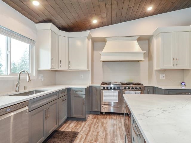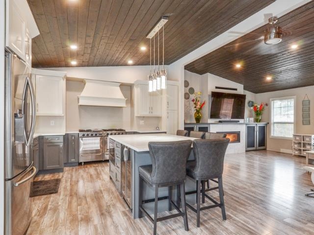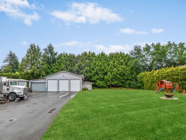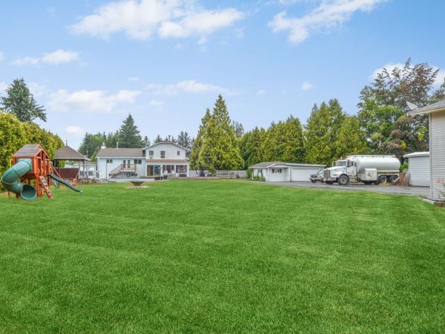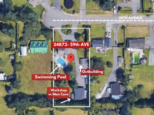 Easy inlaw suite and multi generational living on almost 1 acre lot with a 1,700+ sq ft SHOP in excellent cul-de-sac location in Langley's Salmon River area. Property has South facing backyard, is on City Water & not in the ALR. This 3,378 sq ft, 4 bdrm home features Hot Water On Demand, 2 fireplaces & vaulted ceilings in kitchen & living room. FULLY RENOVATED KITCHEN is finished w/quartz countertops, S/S appliances, gas stove w/6 burners, pull-out pantry & smart fridge that hooks-up directly to your phone. The backyard features Trexx decking, 2 BBQ gas hookups, an inground pool & gazebo w/bar & fan, a heated SHOP w/man cave, an easy in-law suite, three 12’ bay doors as well as RV PARKING. All situated close to Thunderbird Show Park, Krause Berry farms & quick highway access.