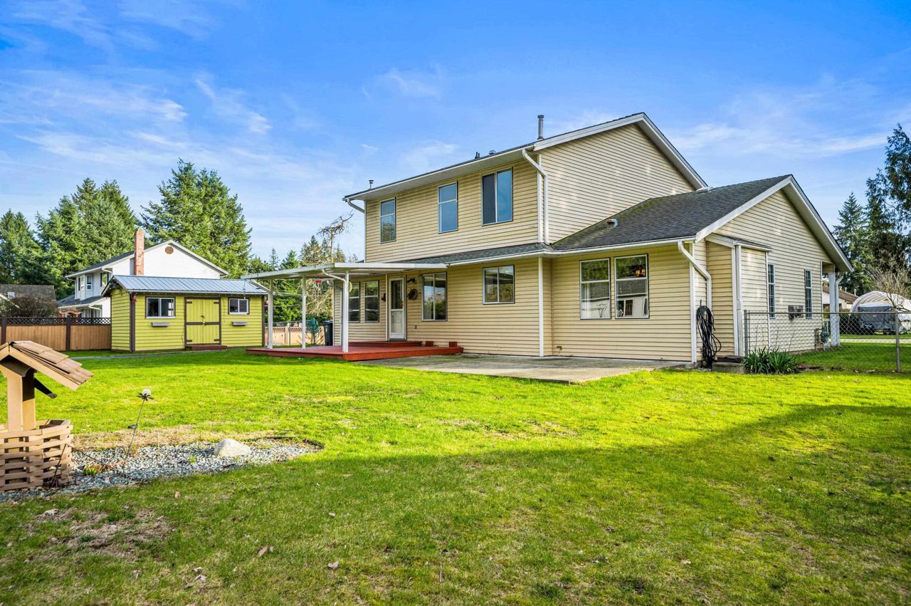 WELCOME HOME to this delightful 4 BEDROOM 3 BATHROOM PLUS DEN home in Salmon River nestled on an acre of land on a quiet street with cul-de-sac at the end. This well appointed home boasts hardwood flooring on the main, a formal living/dining and open kitchen/family room leading out to deck in the back yard. Double car garage leads into a laundry room w/brand new hot water tank & furnace, with side-by-side washer/dryer and BONUS SHOP with HEAT & 220 wiring and 3 sheds. Tons of parking including RV parking. Backing onto blueberry fields, this home (NOT IN THE ALR) offers the tranquility you are looking for as well as easy access to the freeway and Fraser Highway. Call today and make this house your new home! Some images digitally staged.