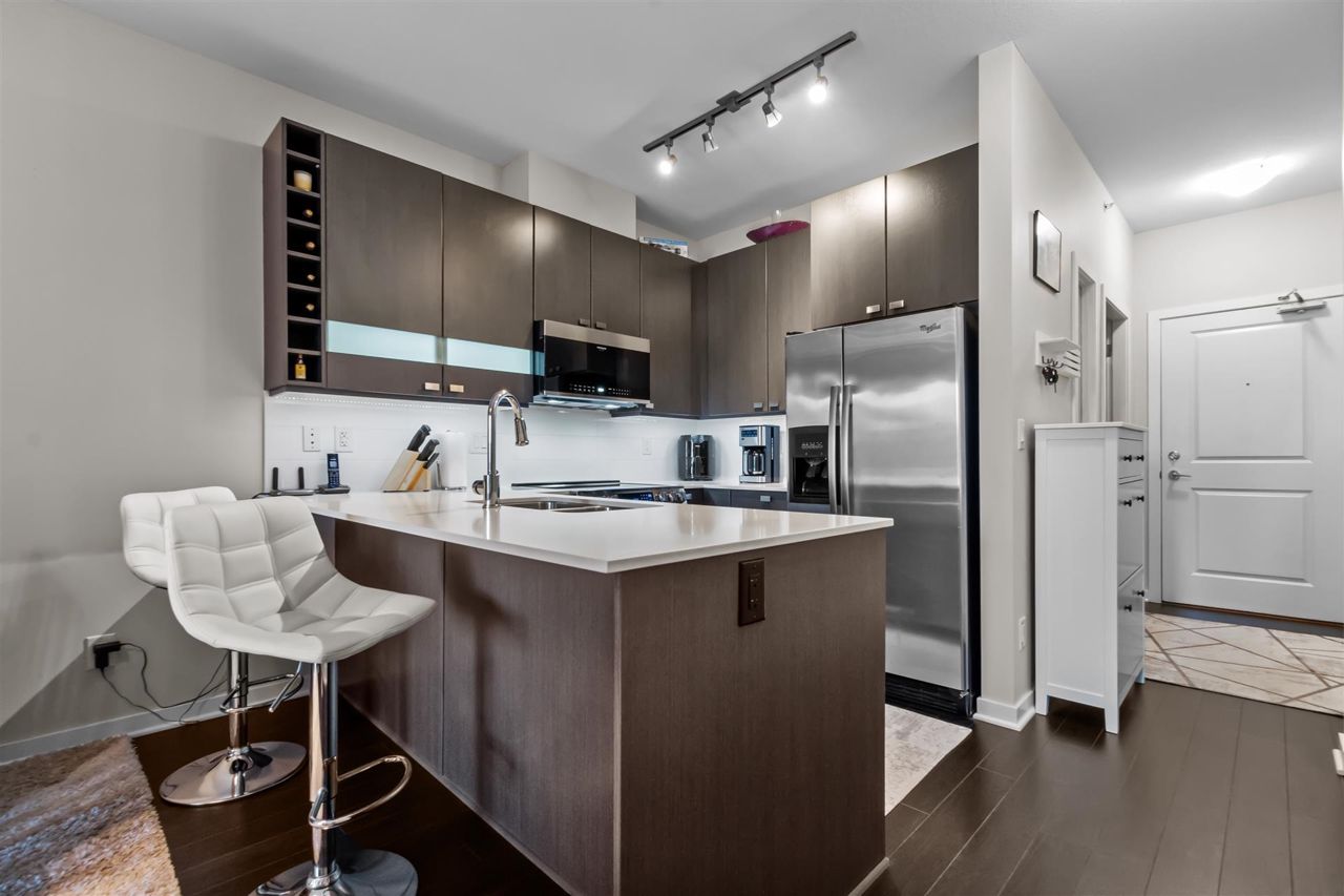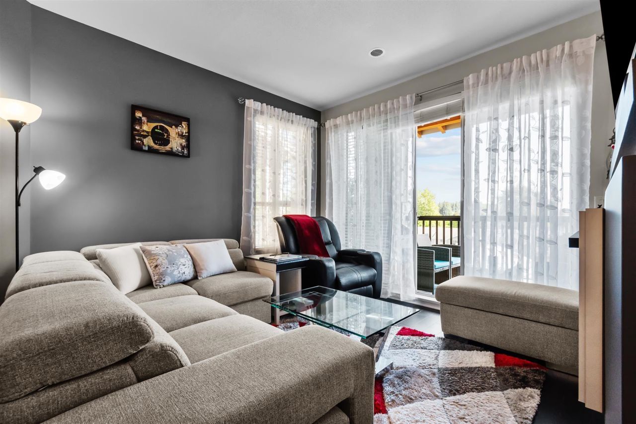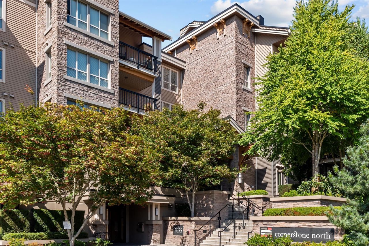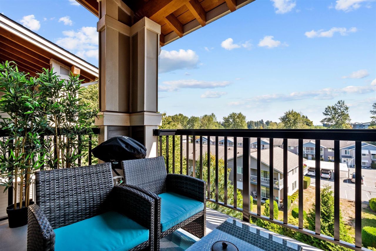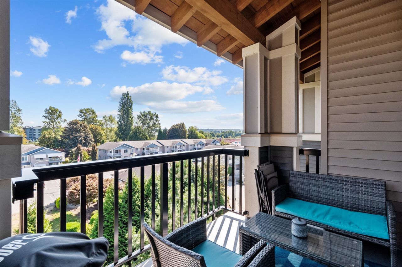 This is a rare opportunity to own a TOP FLOOR one Bedroom and Den apartment in the desirable Cornerstone North Building, built by the award winning Marcon Developments. This unit is on the quiet side of the building and offers partial views of the park and Mt Baker. It features 9' ceilings, SS appliances, breakfast bar, quartz countertops, soft closing cabinets, quality flooring, electric fireplace, plenty of windows for natural light and a spacious covered balcony to enjoy the sunny days. You can walk to shopping, recreation and Kwantlen University. Langley secondary and have easy access to Hwy 1, Fraser Hwy and Hwy 10, as well as the upcoming Skytrain. This unit is in excellent condition and will impress even the most discerning buyers. Don't miss this chance, call today.