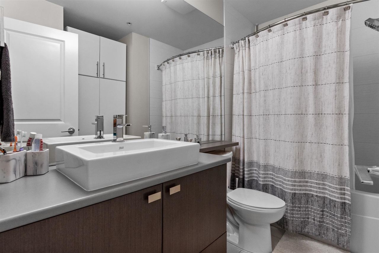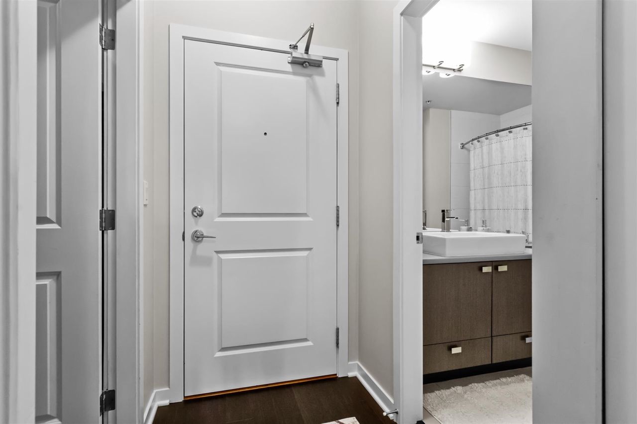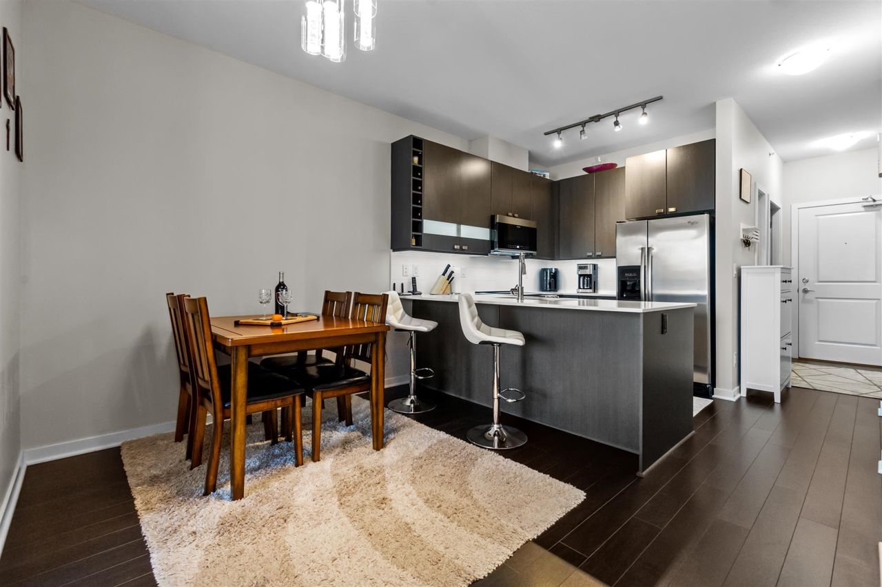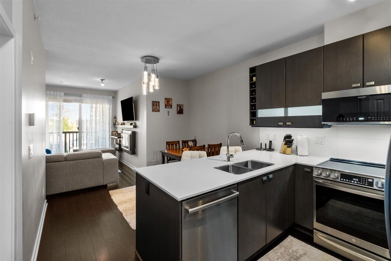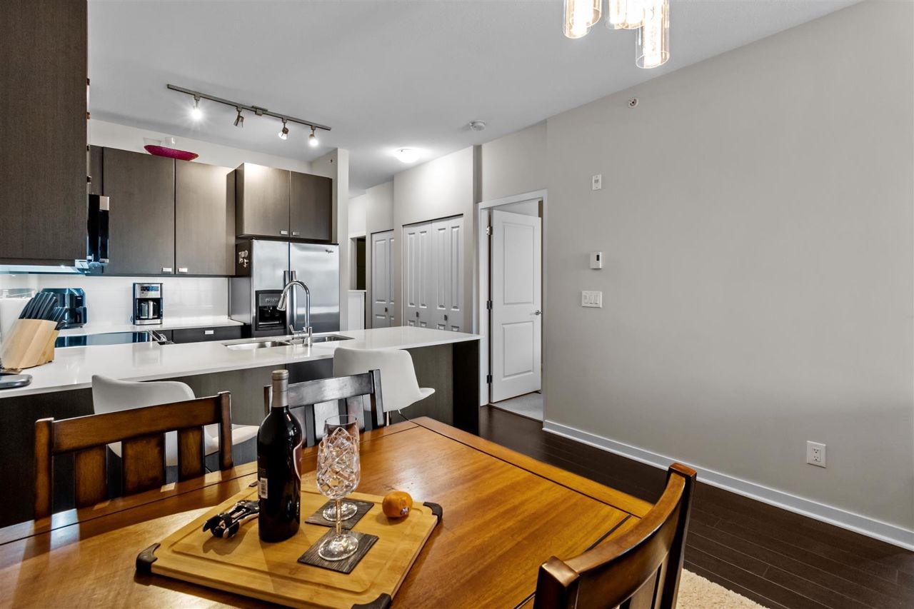 This is a rare opportunity to own a TOP FLOOR one Bedroom and Den apartment in the desirable Cornerstone North Building, built by the award winning Marcon Developments. This unit is on the quiet side of the building and offers partial views of the park and Mt Baker. It features 9' ceilings, SS appliances, breakfast bar, quartz countertops, soft closing cabinets, quality flooring, electric fireplace, plenty of windows for natural light and a spacious covered balcony to enjoy the sunny days. You can walk to shopping, recreation and Kwantlen University. Langley secondary and have easy access to Hwy 1, Fraser Hwy and Hwy 10, as well as the upcoming Skytrain. This unit is in excellent condition and will impress even the most discerning buyers. Don't miss this chance, call today.