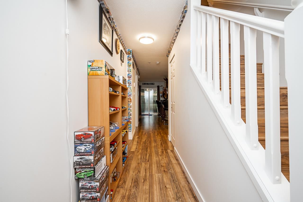 You've found HOME! Hunters Run townhome features everything you will need. Spacious 2 storey with bright kitchen featuring quartz counters and plenty of cupboard space. Large living area with a cozy fireplace and large windows create a welcoming atmosphere. Rich handscraped laminate floors throughout as well as a covered deck looking out over a private tree-lined space off the dining room. With large bedrooms and updated bathrooms there is nothing left to do but move in. Downstairs features a large Rec Room that could be easily converted to bedroom also, great outdoor space perfect for summer BBQs. Convenient laundry room and storage. Quiet location within the complex with trails nearby. 2 pets no restrictions. Close to all amenities and centrally located. Come take a look for yourself.