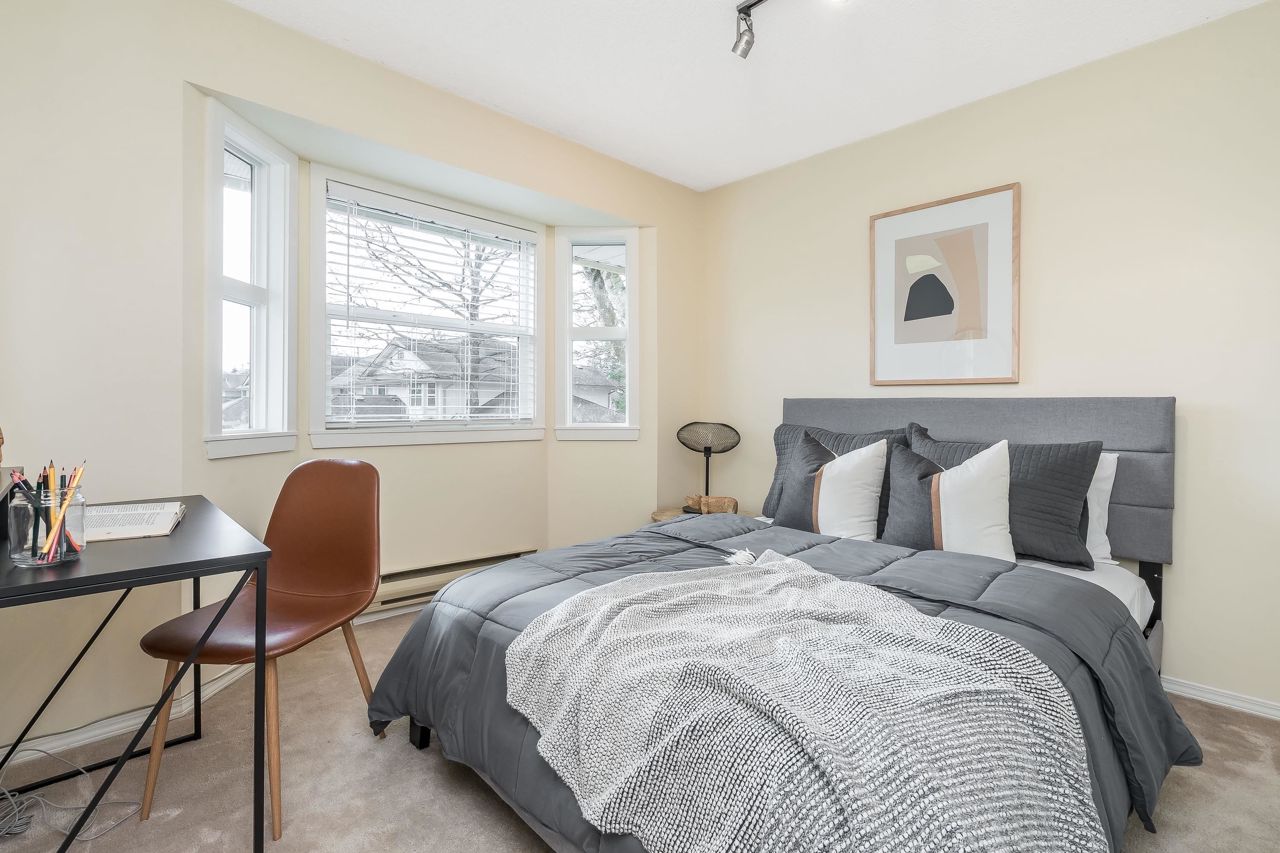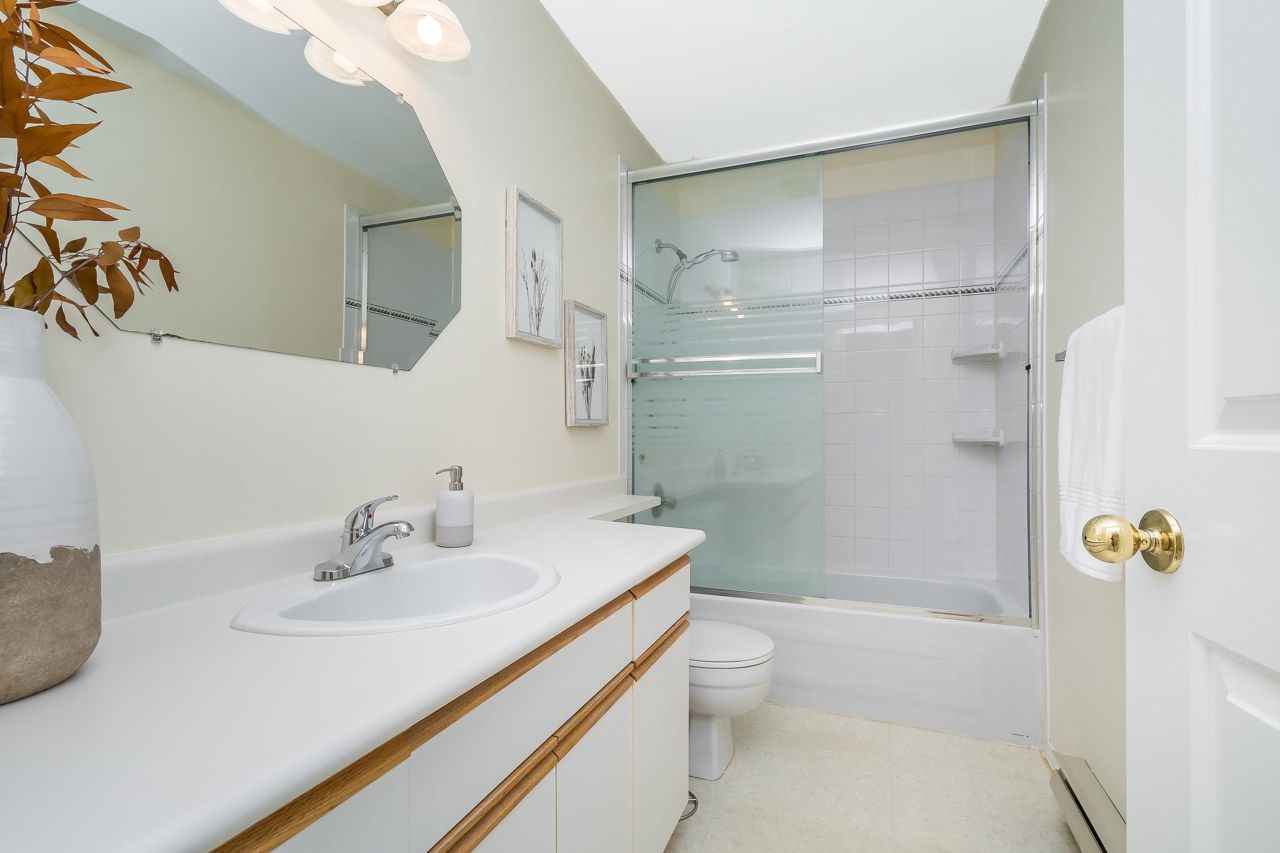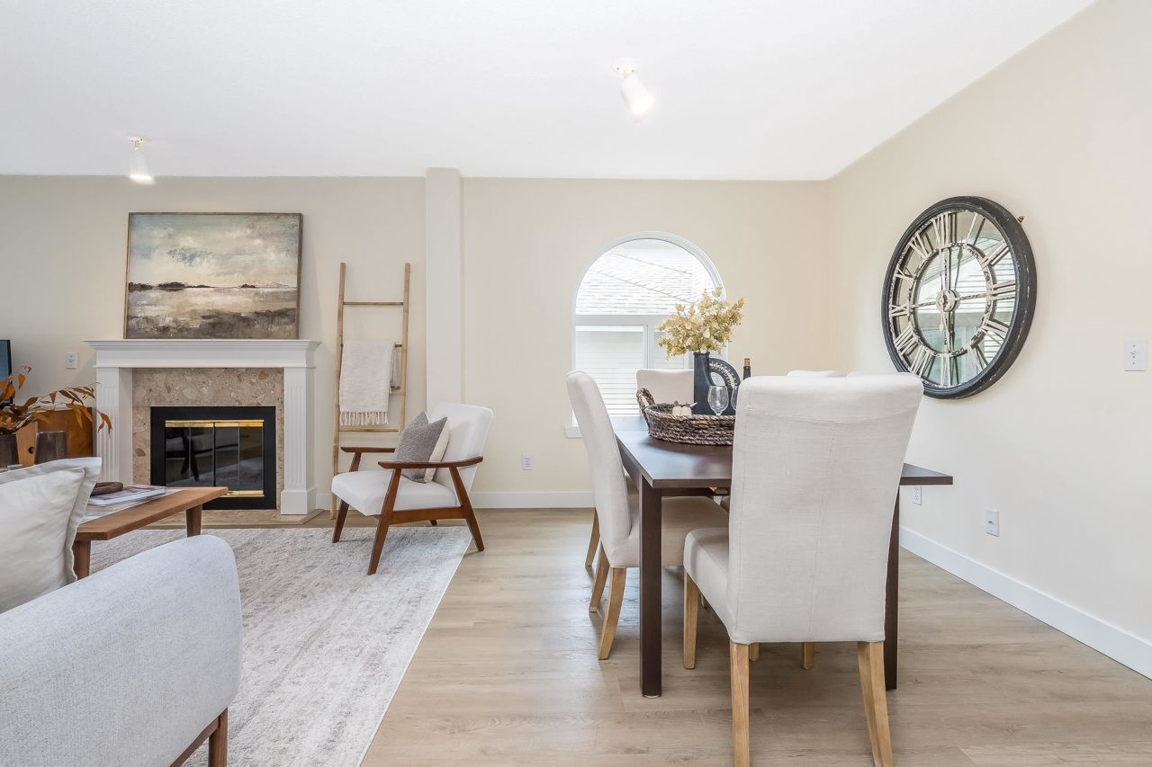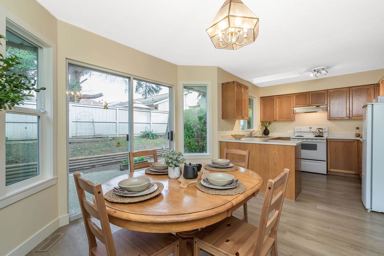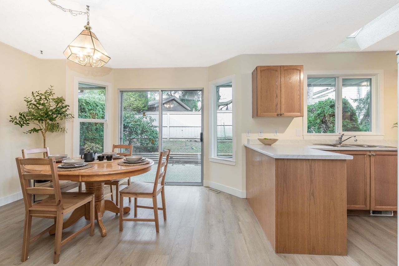 FANTASTIC 2 STORY END UNIT! This 3 Bed, 2.5 Bath, 1,599 sqft home is tucked away at the back of the complex for the ultimate peace & quiet. Enjoy your peaceful & sunny yard with direct access from the kitchen! UPDATES: Laminate floors & underlay on the main, fresh paint throughout, New furnace 2023, New windows, sills, casings & blinds, H/W Tank 2020, some fixtures, & a new front door and back sliders are being installed. Your sunny kitchen has an updated laminate countertop, large eating area, & a window over the sink. 3 spacious bedrooms up, with a partial mountain view from your Primary Suite. Loads of storage, bonus crawlspace, plus parking for 2 vehicles with a single garage & 2nd space. Walk to transit, schools, groceries, restaurants, pool, library, athletic park, gym & more!
