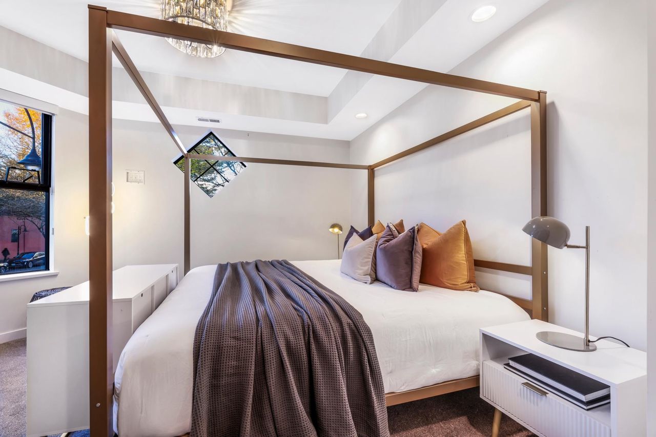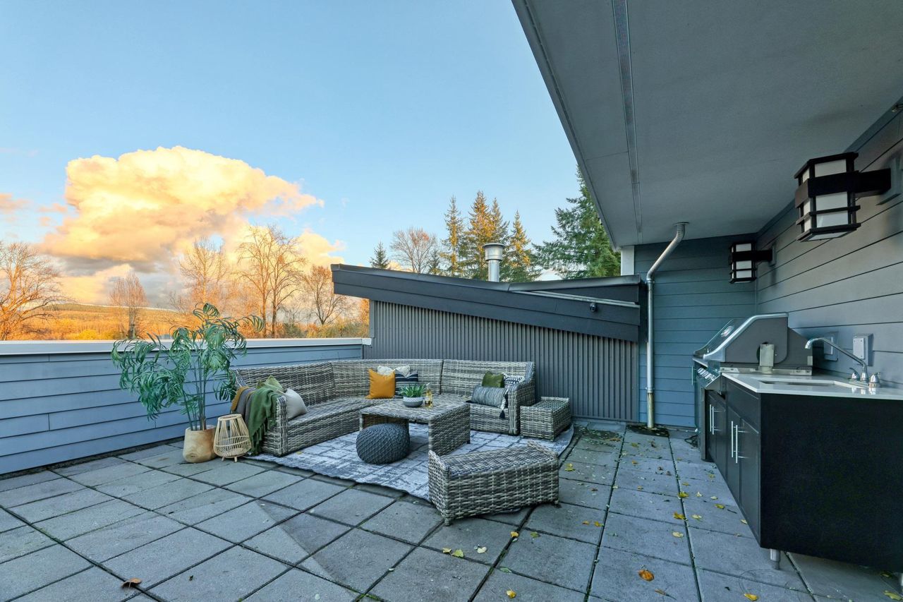 With only four unique homes in this boutique building, you may never get the chance to live at Reid Block again! Sitting right above Blacksmith Bakery, this particular home has stunning views from the rooftop patio and an elevator that'll take your guests up there. The outdoor kitchen has a built in bbq, fridge and sink as well as a hot tub hook up! Inside you'll find 2 large bedrooms, a loft, and 3 bathrooms. The kitchen has new pendant lights, plenty of cupboards, and quartz counters. The living room has a gas fireplace flanked by custom built ins. A great spot for people watching and only steps away from groceries, restaurants, a great gym, and the Fort to Fort trail that runs along the Fraser River. Small town charm combined with modern luxury. Viewings by private appointment only.