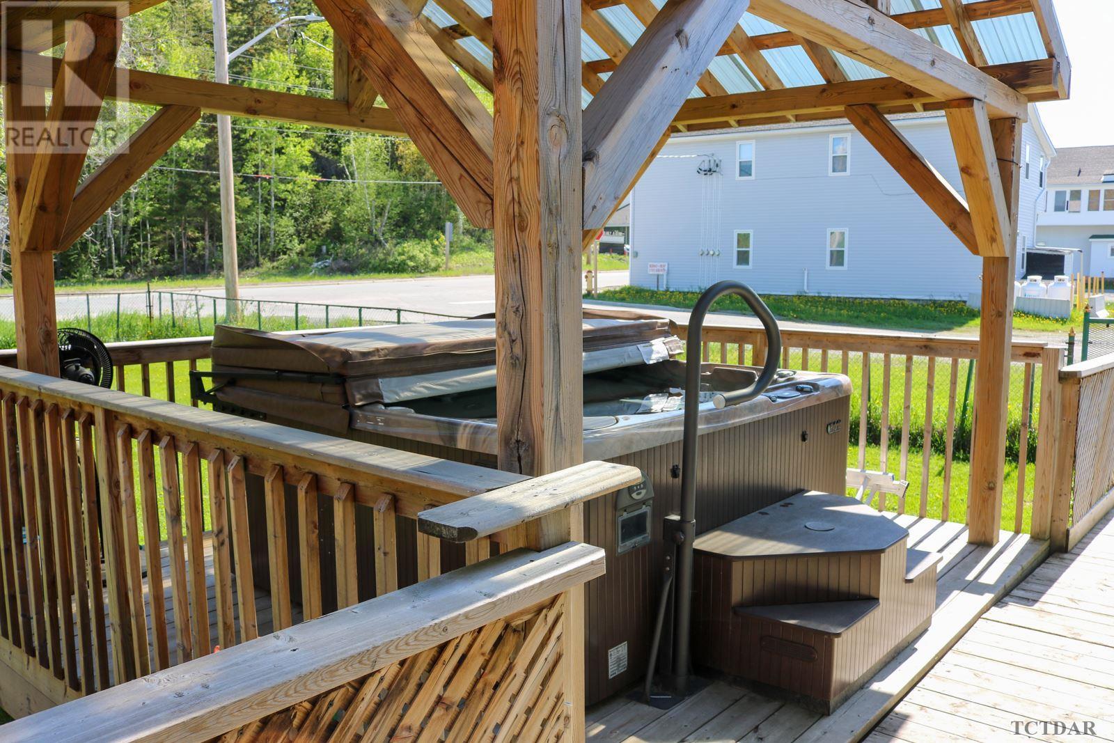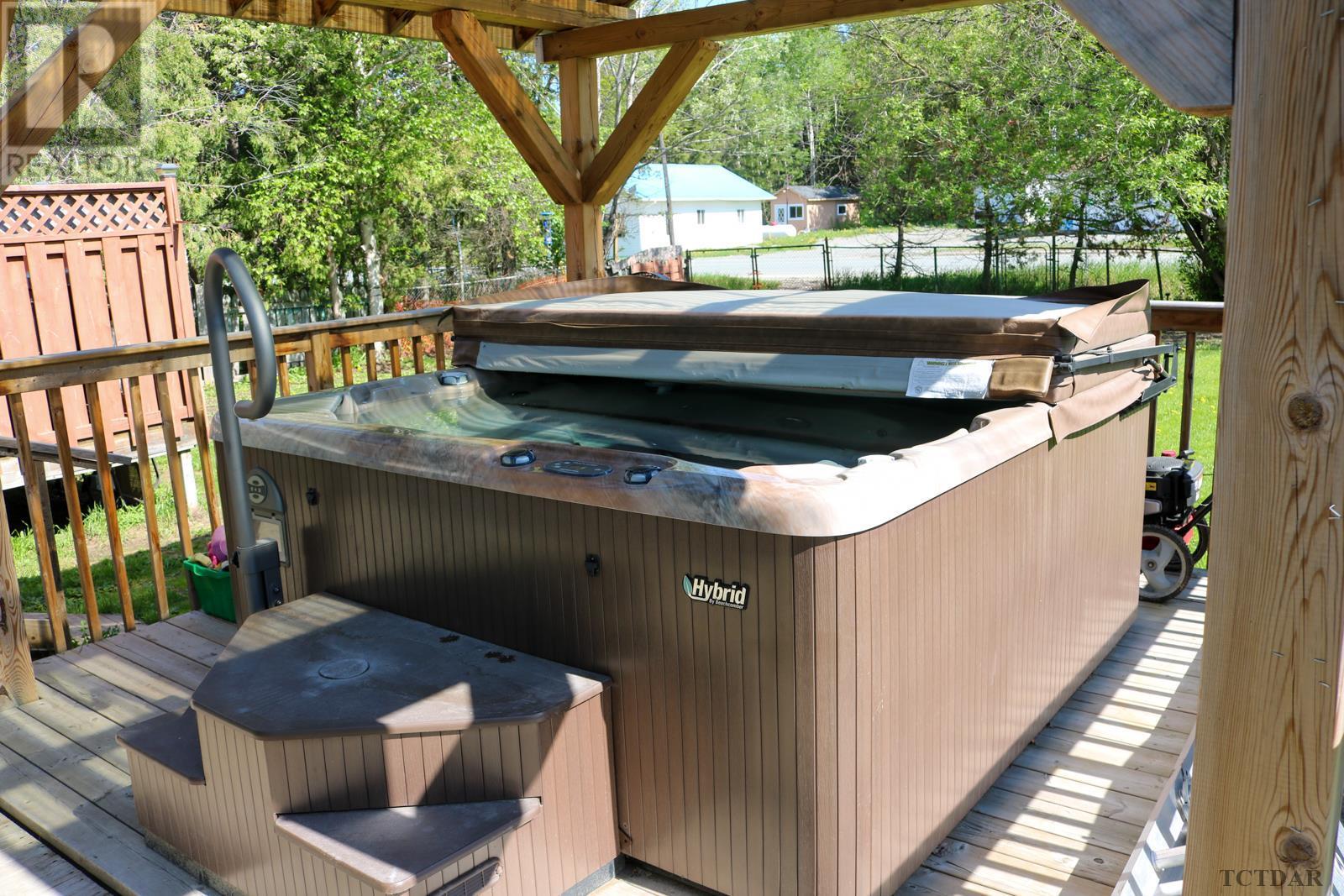 Beautiful 2 bedroom home located in a great area of Larder Lake. Close to all the stores, and only a short walk away from the lake. This 950+Sqft home is ready for your enjoyment. Some of the amazing exterior features include: Large 2 car garage, fenced in yard, deck with privacy fencing, and a nice large hot tub. Inside features, 2 large bedrooms, a good size kitchen and dining area, a bright living room and a huge bathroom. Downstairs is partially finished with another bathroom, laundry room and a wide open space that could be converted into additional bedrooms or a large rec room. (id:22211)