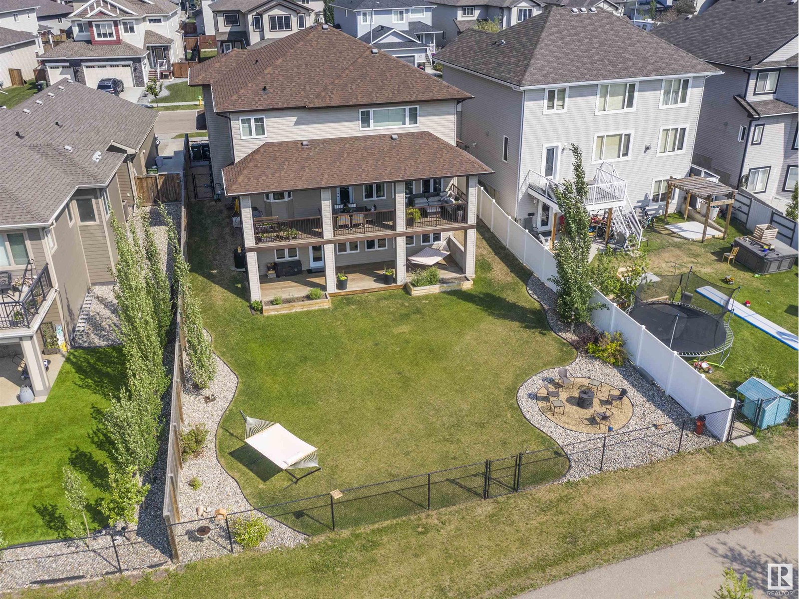 This BEAUTIFUL 2 Storey HOME w/OVER 3971.48 sq ft of Dev'd LIVING SPACE, Front Double OVERSIZED 2 DOOR Garage 295 X 2610, A/C unit, 9' CEILINGS, LOVELY Hardwood Floors, CALMING VIEWS on 692m2 lot+ TONS OF INCREDIBLE FEATURES! Excellent CURB APPEAL w/stone detail, LIGHT-TONED Entrance w/HIGH CEILINGS, Front Office + large DINING RM. INCREDIBLE CHEF'S Kitchen w/STUNNING GRANITE counters, dark Cabinetry, HUGE Island w/Pendant lighting + Breakfast Bar, MATCHING S.S. appl+ Walk-In-Pantry, Living rm w/gas FP, MUD RM+ 2 pc Bath! Upstairs feat Bonus rm, 4 pc bath, CONVENIENT Upstairs Laundry+ 3 BEDS UP incl HUGE Master w/GIANT W.I.C + AMAZING SPA 5 pc En-Suite w/DUAL Vanity, SOAKER TUB + stunning GLASS SHOWER! WALK-OUT Bsmt w/BIG Family rm + WET BAR, 4 pc Bath, 2 addtl Bdrms + COLD STORAGE! INCREDIBLE LANDSCAPED B-yard w/2 MASSIVE decks w/FIRE PIT Area for RELAXING + BACKS onto GORGEOUS GREEN SPACE! Walking distance to K-9 SCHOOL, Nearby REC CENTRE, POOL, parks, OUTLET shopping + quick ACCESS to INTL airport! (id:22211)