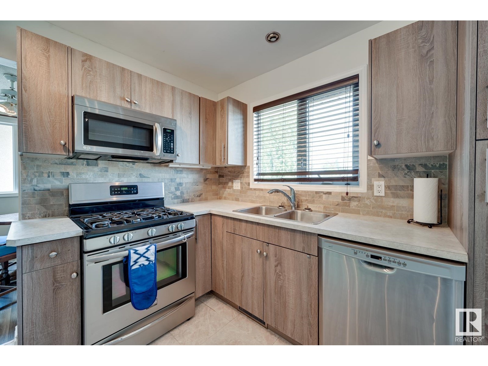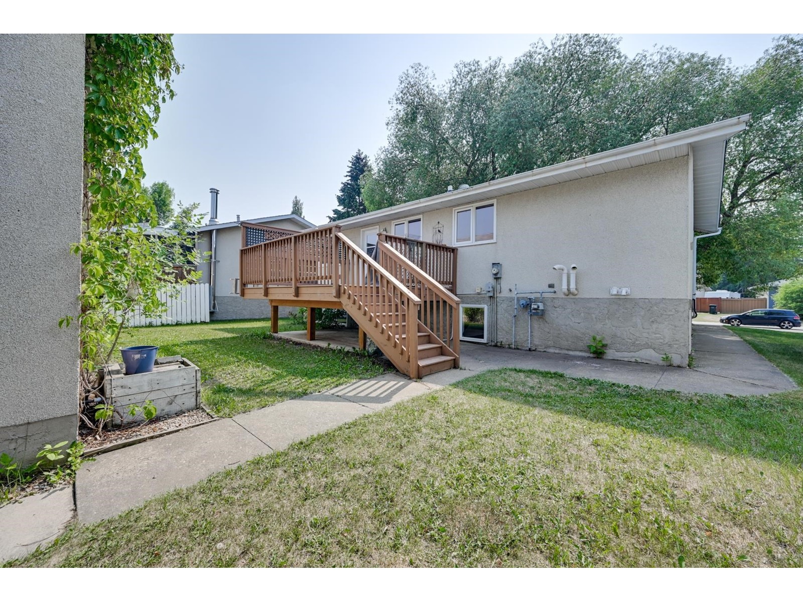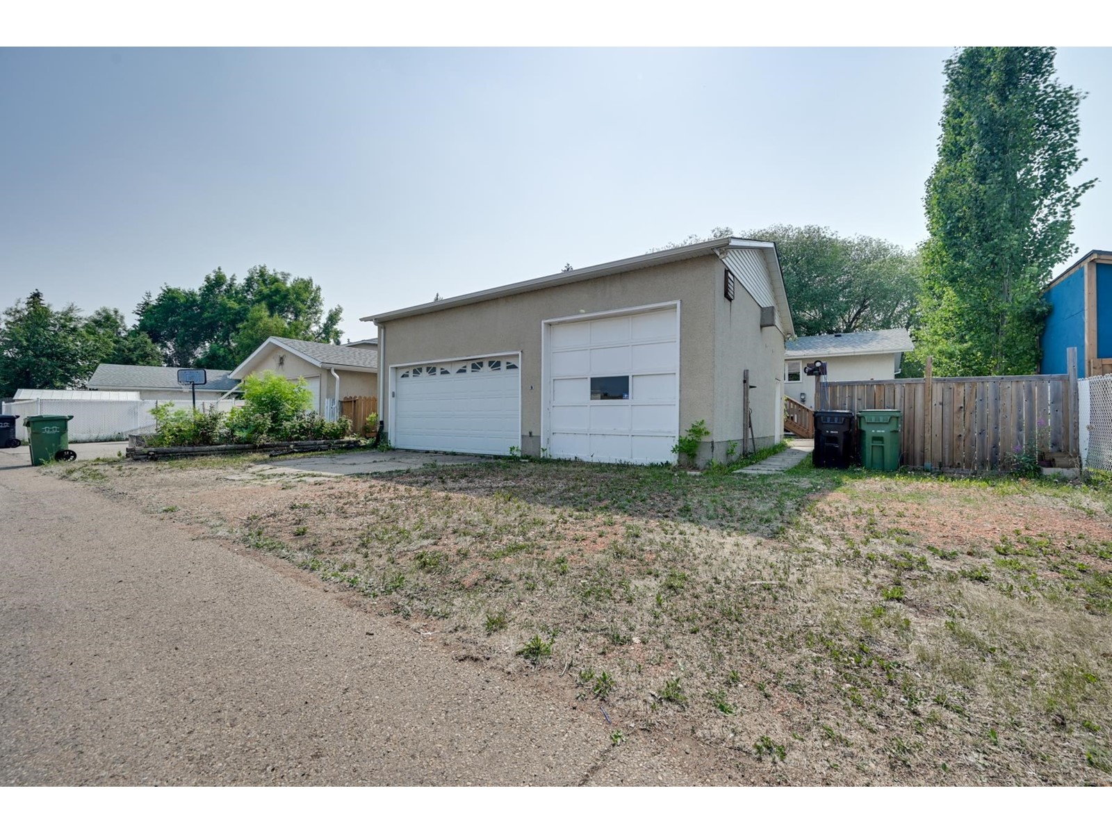 RARE OPPORTUNITY to own this 1023sq ft bilevel with a HEATED 28X32 TRIPLE GARAGE in a mature neighborhood with gorgeous trees. The garage is large enough to park 3 vehicles and still have room for toys or WORKSHOP SPACE. Same owner since 1991 has taken great care of this 2+2 bedroom, 2 bathroom home. Beautifully REMODELLED KITCHEN offers a bright space with tons of cabinets, stainless steel appliances & island with eating bar. Modern open concept feel as kitchen was opened up to overlook living room. Gas range even has an electric option. NEWER laminate floors flow thruout main level into bedrooms. Both bathrooms have been updated. UPDATED VINYL WINDOWS (main floor). NEW SHINGLES. UPDATED FURNACE (10yrs). Two bedrooms and bathroom are complete in lower level, while unfinished family room comes with a pool table. Large deck off back door. Garage has an 8ft & 10ft door with a new radiant heater BONUS parking for an extra 2 cars off back lane with no neighbors behind you. Walking distance to many amenities!! (id:22211)