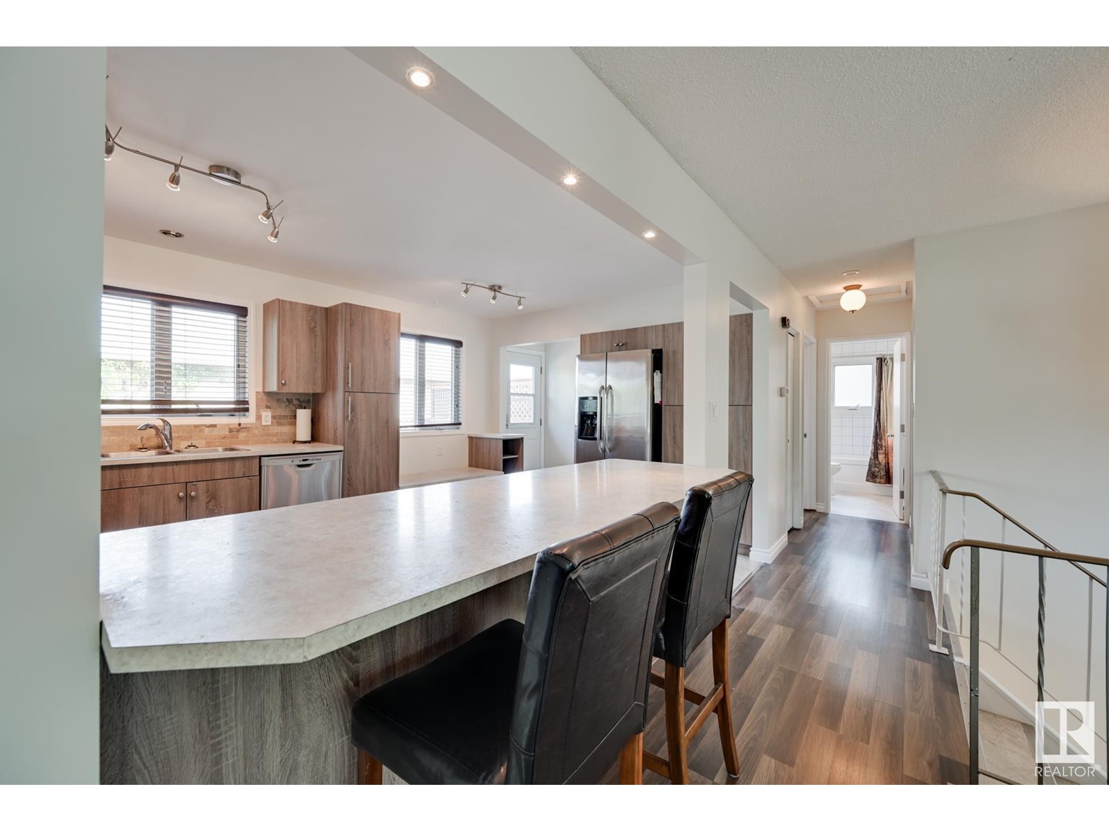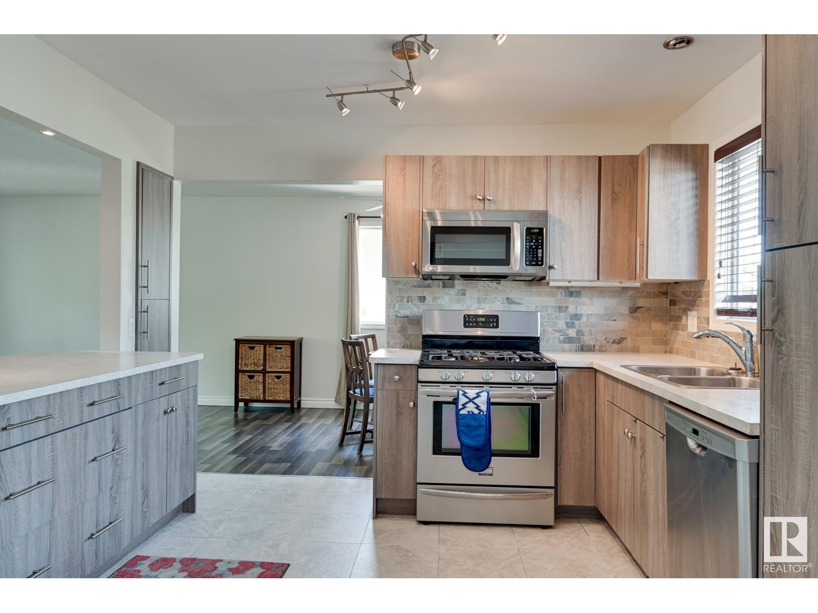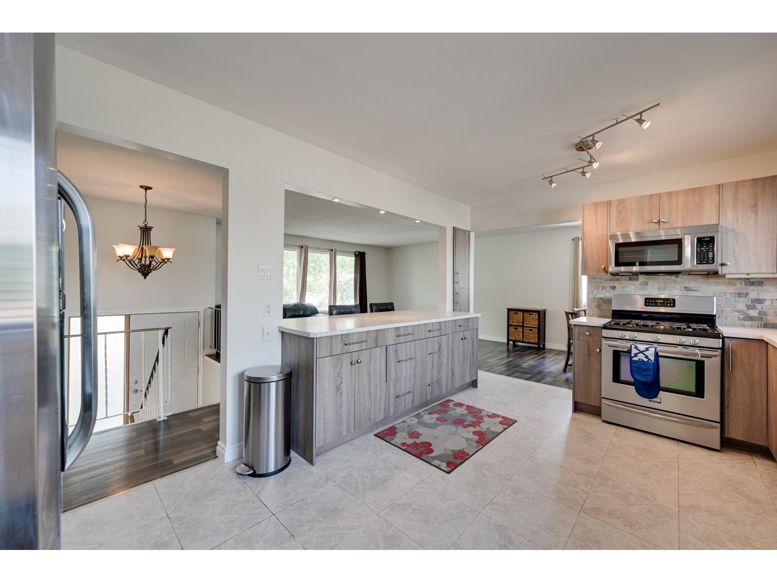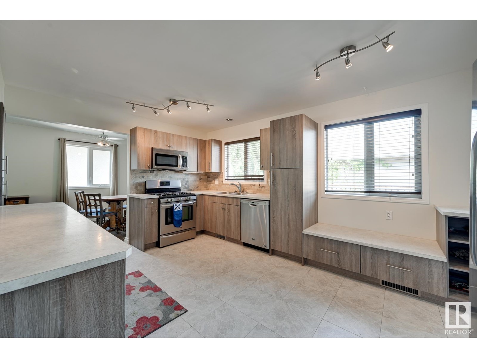 RARE OPPORTUNITY to own this 1023sq ft bilevel with a HEATED 28X32 TRIPLE GARAGE in a mature neighborhood with gorgeous trees. The garage is large enough to park 3 vehicles and still have room for toys or WORKSHOP SPACE. Same owner since 1991 has taken great care of this 2+2 bedroom, 2 bathroom home. Beautifully REMODELLED KITCHEN offers a bright space with tons of cabinets, stainless steel appliances & island with eating bar. Modern open concept feel as kitchen was opened up to overlook living room. Gas range even has an electric option. NEWER laminate floors flow thruout main level into bedrooms. Both bathrooms have been updated. UPDATED VINYL WINDOWS (main floor). NEW SHINGLES. UPDATED FURNACE (10yrs). Two bedrooms and bathroom are complete in lower level, while unfinished family room comes with a pool table. Large deck off back door. Garage has an 8ft & 10ft door with a new radiant heater BONUS parking for an extra 2 cars off back lane with no neighbors behind you. Walking distance to many amenities!! (id:22211)