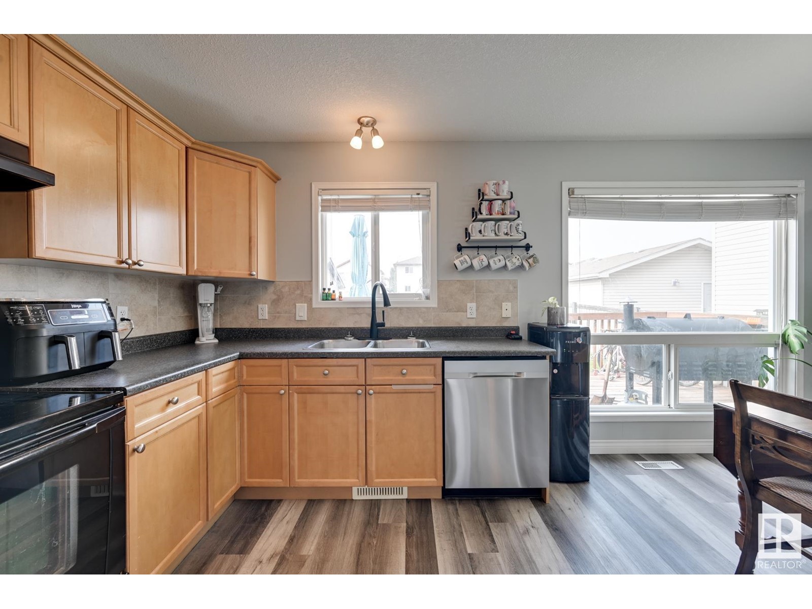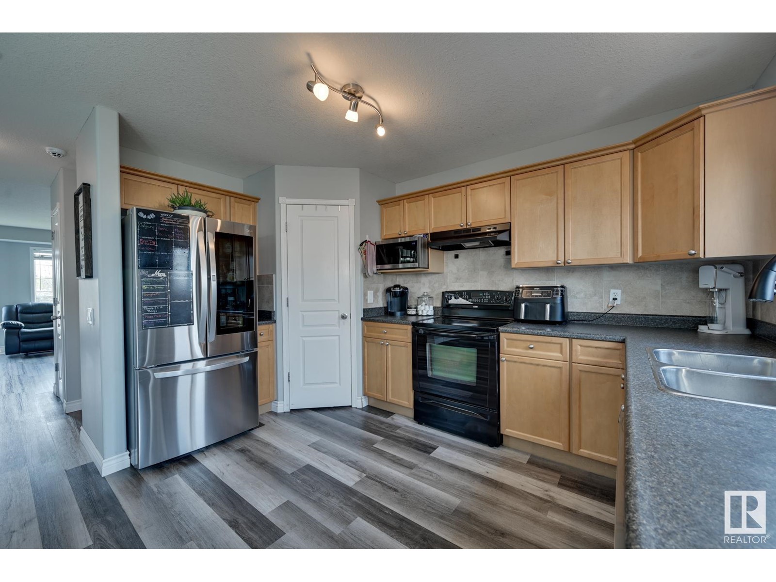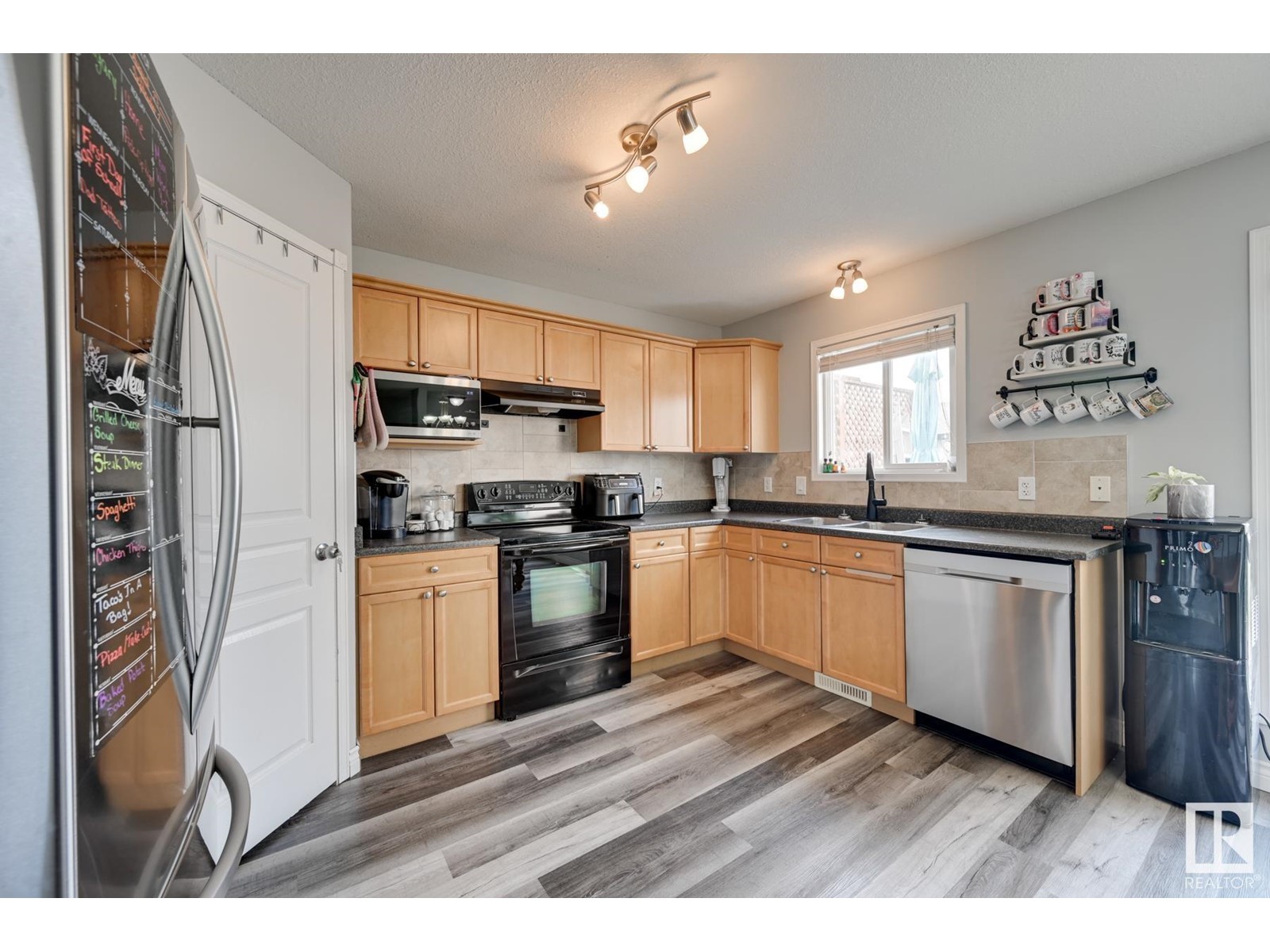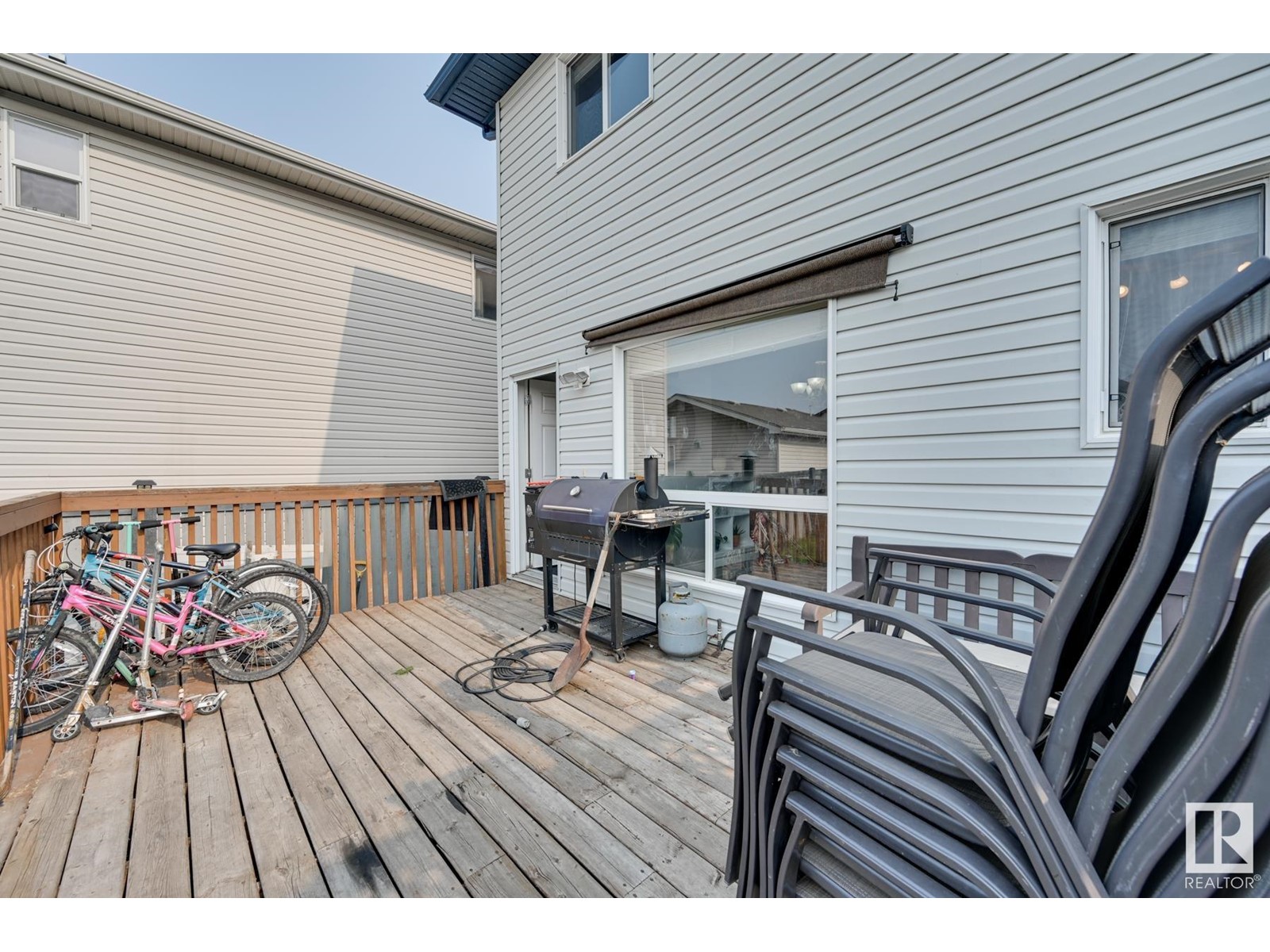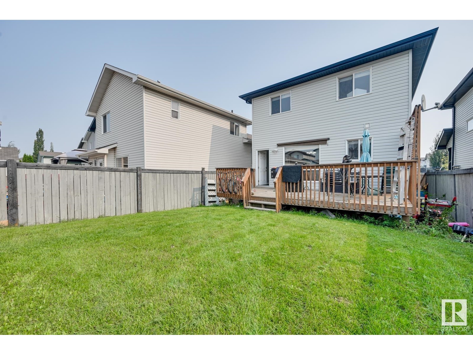 CHARMING 2-STORY home located in the heart of Bridgeport. This 3 BED & 2.5 BATH, 1380 sqft AIR CONDITIONED home provides ample space for families & individuals alike. Inviting open-concept space w/ LARGE WINDOWS, flood the home w/ natural light & UPDATED VINYL PLANK FLOORING The spacious EAT-IN kitchen is complete with BRAND NEW FRIDGE, STOVE & plenty of counter space for meal prep. Venture upstairs to find 3 good-sized bedrooms, including the primary with WALK-IN CLOSET & ensuite. The unfinished basement, allows for endless possibilities to create additional living space. Step outside to discover an EXPANSIVE DECK that extends the living space outdoors, offering an ideal setting for relaxation, outdoor dining & entertaining. The fenced yard provides plenty of space to play. With back lane access & parking, there's even room for a future garage. This residence situated within WALKING DISTANCE to a playground & Leduc Common - providing shopping, restaurants, & more. Easy access to 50 Ave & HWY 2. (id:22211)