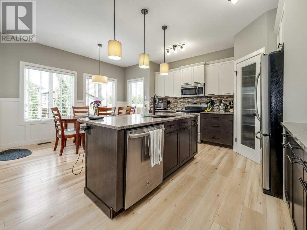 ***PRICE REDUCED***Introducing the ultimate dream home you've been waiting for! This exquisite residence in Riverstone is a true gem, boasting a complete package that will leave you in awe. Impeccably finished and thoughtfully landscaped, this property offers not one, but two garages, ensuring ample space for all your vehicles and storage needs.Step inside to discover a main floor designed for modern living, where open concept living, dining, and kitchen areas bathe in an abundance of natural light. The main floor also features a convenient half bathroom and a full laundry room, adding to the overall functionality of the space.As you ascend to the upper level, you'll find a haven of relaxation in the primary suite, complete with a spacious ensuite and a walk-in closet. Two additional bedrooms, a full bathroom. Up the other side of the feature stairwell, you will find a large bonus room which provides exceptional privacy.The finished basement showcases a generously sized bedroom, a full bathroom, a comfortable living space, and a utility room offering ample storage and shelving solutions.But the incredible features don't stop with the house alone. Prepare to be amazed by the detached oversized garage, which is fully insulated and heated. A true craftsman dream. Outside, the attention to detail continues with meticulous landscaping. The property is adorned with underground sprinklers, a beautiful cedar fence, a patio featuring a custom pergola, a deck with storage underneath, and a meticulously maintained lawn. Every aspect has been carefully considered to provide a stunning outdoor oasis.When we say you don't want to miss out on this one, we genuinely mean it. This property truly is the total package you have been waiting for, combining superb finishes, abundant space, and captivating outdoor amenities. Don't let this opportunity slip away. (id:22211)