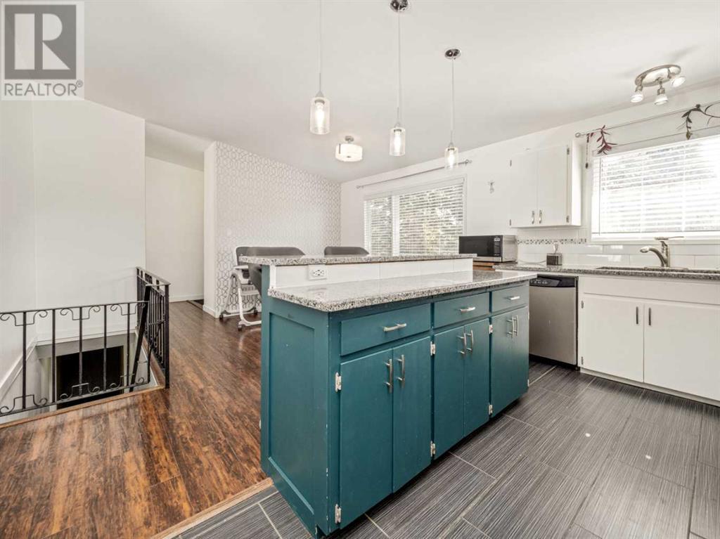 Great home in an amazing location! This bungalow features a beautiful living room, framed by two huge windows to enjoy the yard. A bright kitchen with stone countertops, a waterfall island with barstool seating, and a connected dining area. Down the hall on the main floor, you will find a large master bedroom, with dual closets, and it's own 3 piece bathroom, two additional bedrooms, and 4 piece bathroom complete the main floor. In the basement you'll find two huge living areas, and an additional bedroom. The yard has a lovely covered carport, that can be used for a patio, great for BBQing in all weather! Flower beds, and gardening area are spaced out around the yard, giving the kids plenty of room to run around and enjoy! With a double garage opposite the carport you have everything you could need. Close to plenty of parks and playgrounds, and the Lethbridge Montessori School! (id:22211)