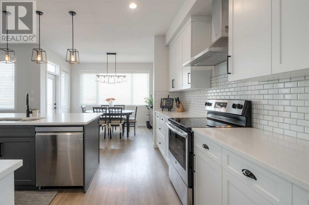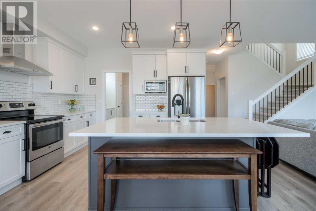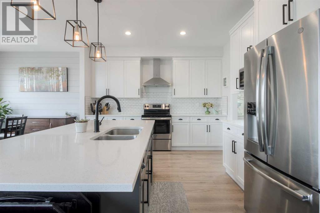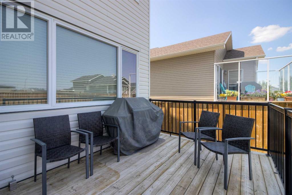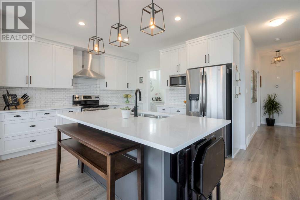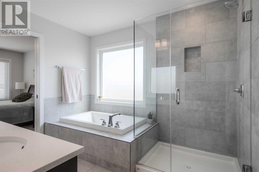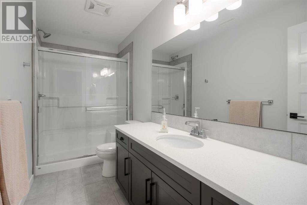 Simply stunning is one way to describe this former Galko show home in RiverStone! Located steps away from the dog park and quick jaunt to coulee walking trails, this beautifully maintained and scrupulously clean home definitely stands out. Being a former show home, there are lots of thoughtful upgrades and features complete with high-end, workmanship and contemporary finishings. As soon as you walk into the spacious foyer, you will notice the thoughtful design of this home: a walk-through closet that connects the front foyer to garage entry, 9' ceilings, abundance of natural light through oversized windows and Hunter Douglas blinds. This home features a kitchen that even the most discerning chef would appreciate! Complete with ample amount of counterspace, quartz counters, and soft-close drawers and doors. The walk-through butler's pantry to garage make grocery unloading a breeze. Upstairs boasts a large primary suite with generous sized walk-in closet and spa-like ensuite that includes dual sinks, deep soaker tub, and custom glass shower. Completing the upper lever are two additional large bedrooms, bonus living room, and conveniently located laundry room. Downstairs you will find a theatre room, two more generous sized bedrooms and full bathroom with large shower. Outside is landscaped and outfitted with a multi-zone underground sprinkler system. The oversized, finished garage is heated and includes epoxy coated floor. Enjoy the summer evenings sitting on your deck or have some fun on your personal basketball court, complete with adjustable Goliath net. There is simply nothing left for you do other than move in and enjoy! (id:22211)