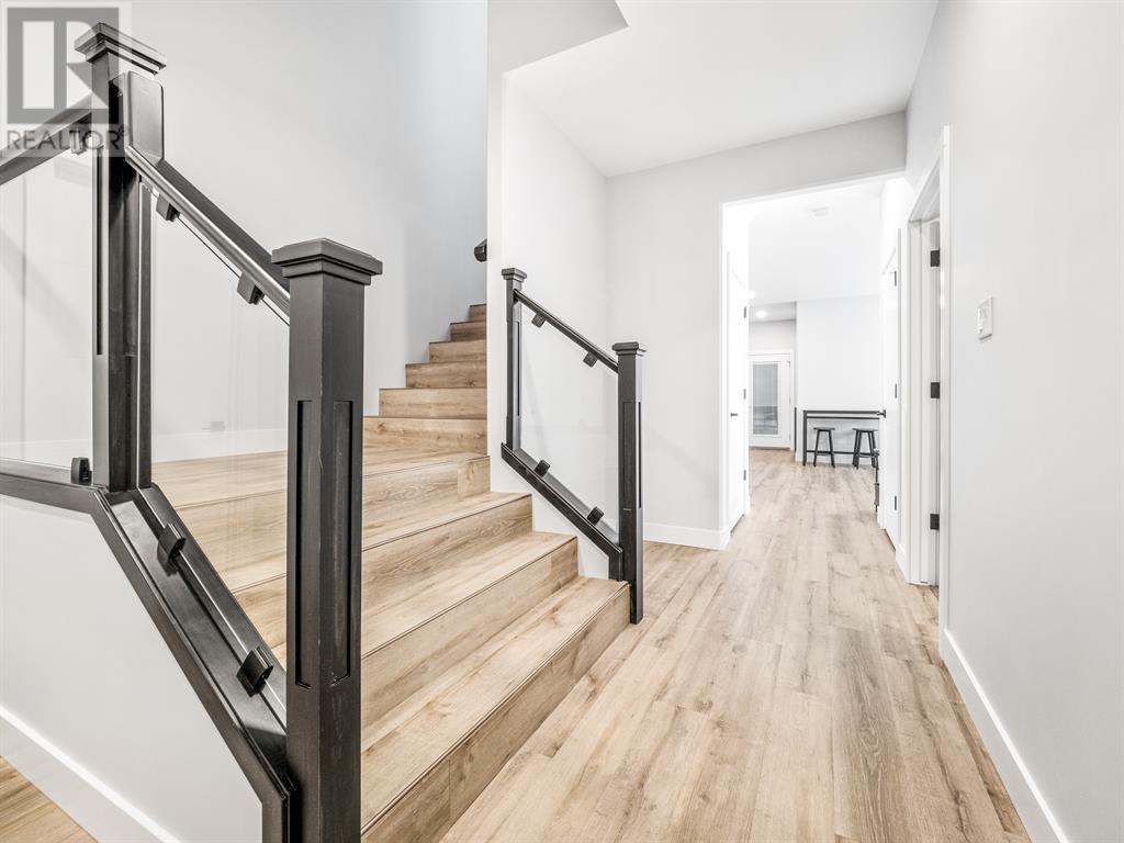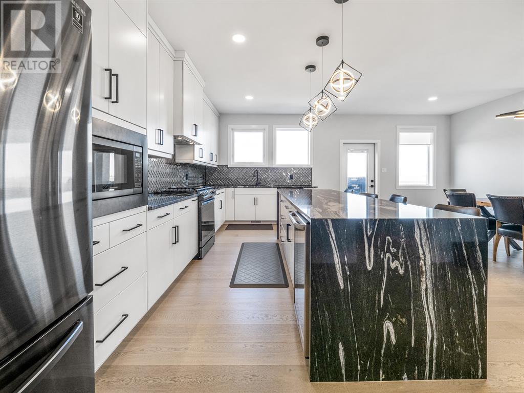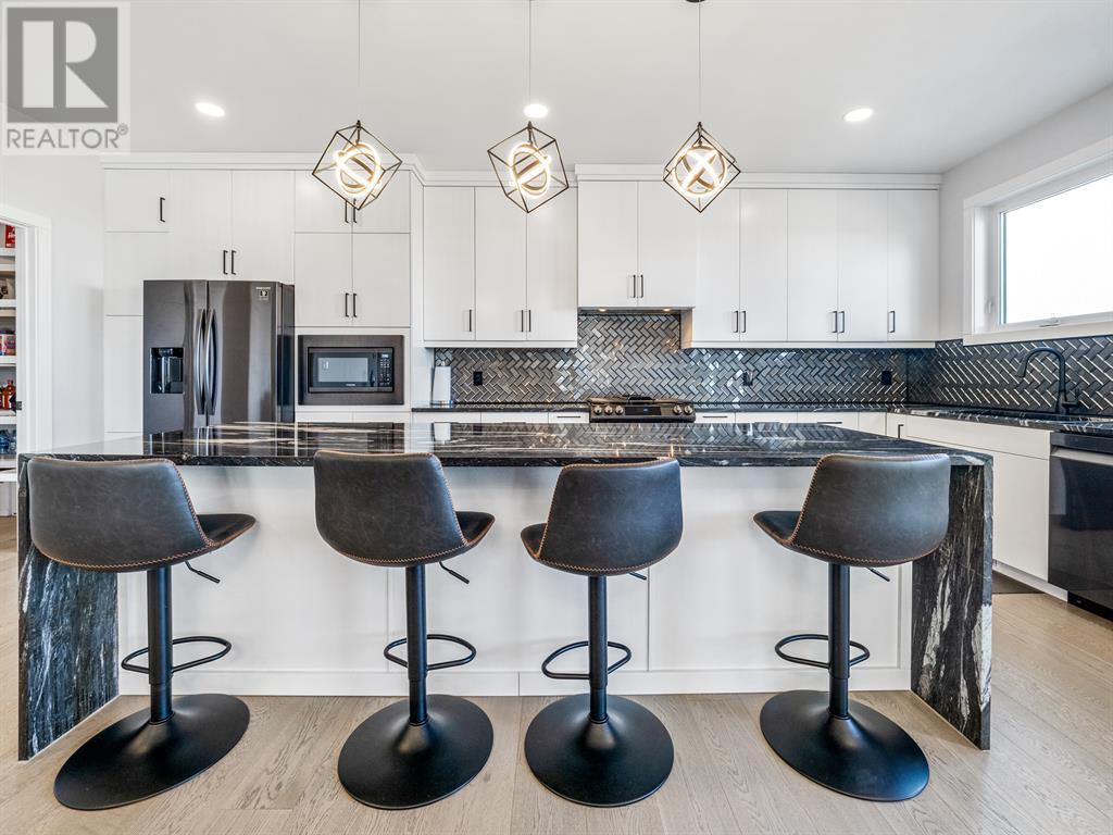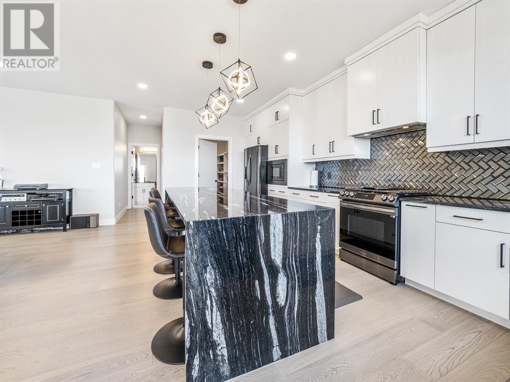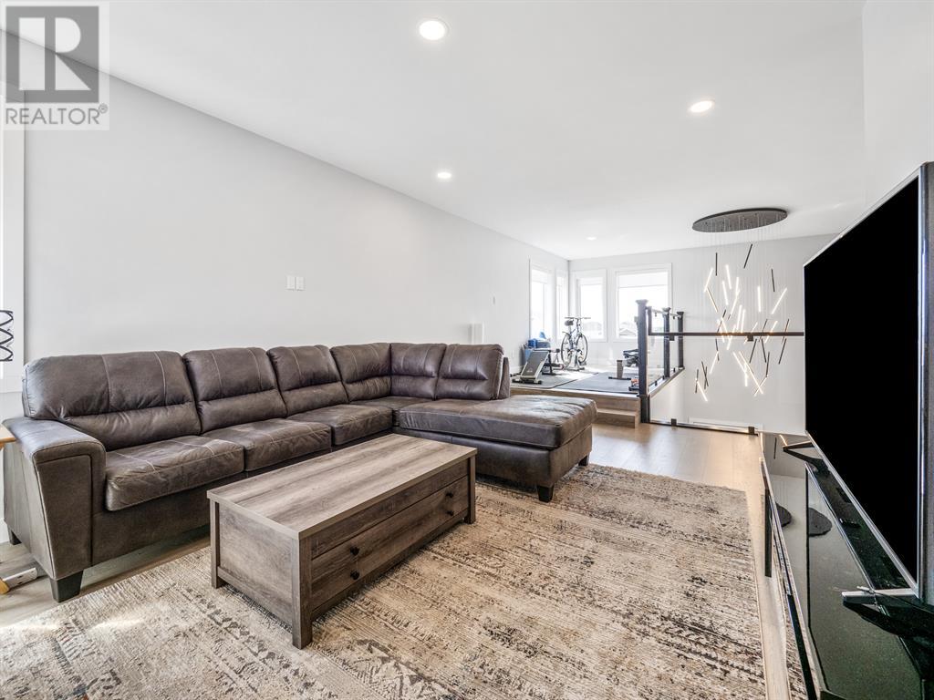 Fully developed with no neighbors behind!! This property will suit many different lifestyles, it's perfect for large families, great single family dwelling, multigenerational living, in law suite, billets, rental income, or a space to work from home. With 3201 sqft above grade, this home has a lot to offer. As you enter you are greeted with vaulted ceilings, hardwood floors and a den(would be a great playroom too). The kitchen is a cook or entertainers dream, large eat up island, waterfall granite counters, and black stainless steel appliances. The main floor also features a massive walk through pantry, mudroom, 2 pcs bathroom, living room(gas fireplace), dining room and access to the large partially covered deck. Upstairs you will find the media room, bonus area(currently used as a home gym), 3 large bedrooms, laundry room, and two bathrooms(one of which is an ensuite). Downstairs is a 2 bedroom, 1 bathroom, kitchen, its own laundry and entrance! The yard is fully fenced, landscaped and boost underground sprinklers. A few extra features are Gemstone lights(permanent Christmas lights) and led lights on interior railings. Call your favorite Realtor today! (id:22211)