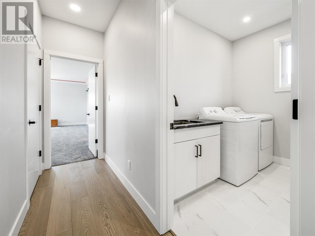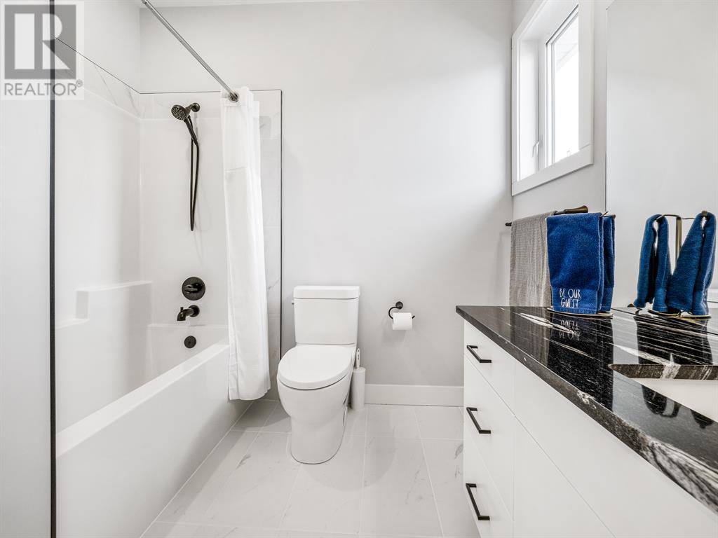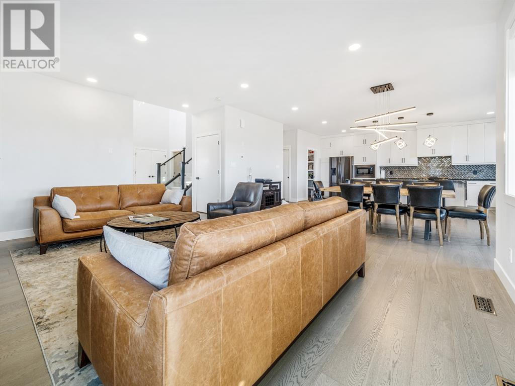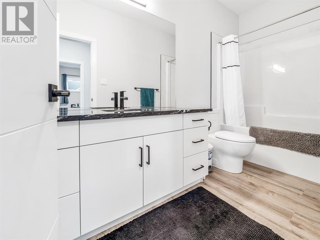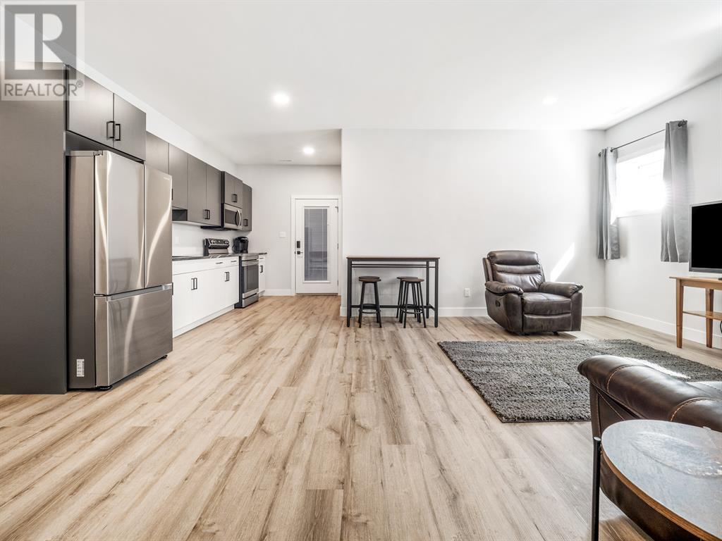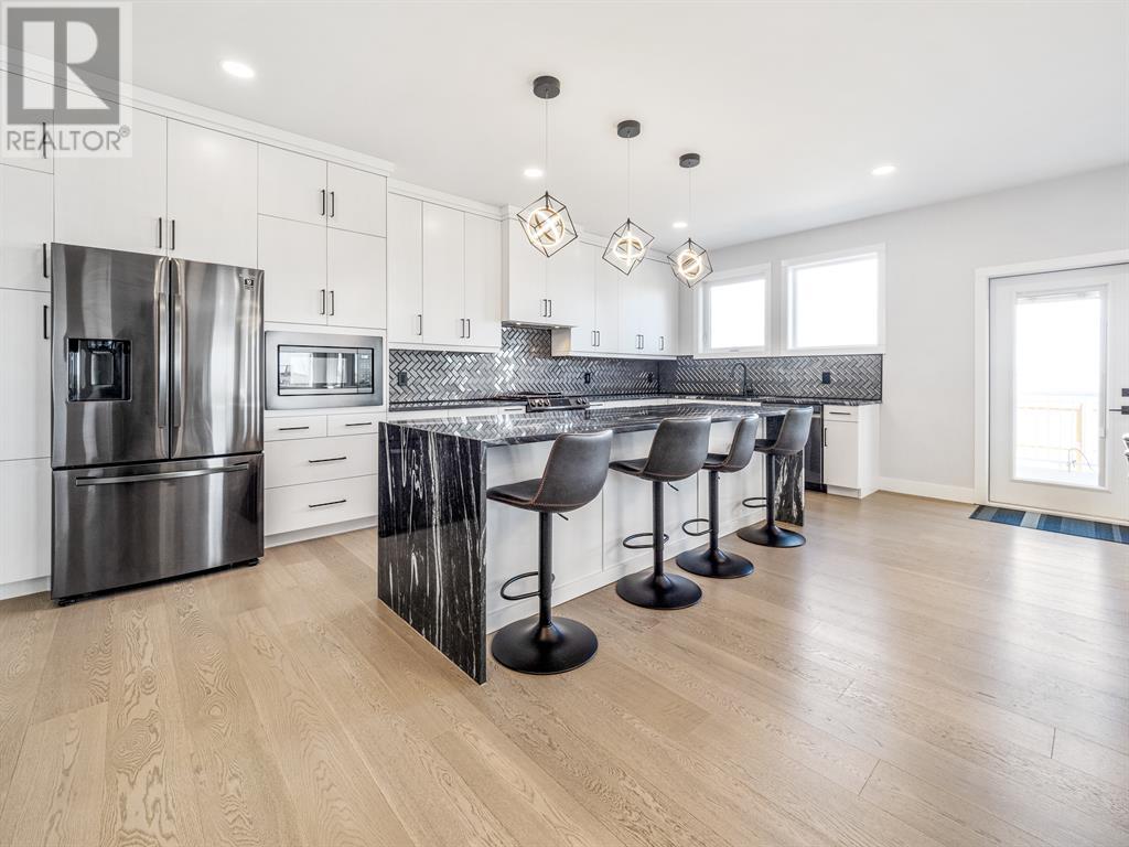Fully developed with no neighbors behind!! This property will suit many different lifestyles, it's perfect for large families, great single family dwelling, multigenerational living, in law suite, billets, rental income, or a space to work from home. With 3201 sqft above grade, this home has a lot to offer. As you enter you are greeted with vaulted ceilings, hardwood floors and a den(would be a great playroom too). The kitchen is a cook or entertainers dream, large eat up island, waterfall granite counters, and black stainless steel appliances. The main floor also features a massive walk through pantry, mudroom, 2 pcs bathroom, living room(gas fireplace), dining room and access to the large partially covered deck. Upstairs you will find the media room, bonus area(currently used as a home gym), 3 large bedrooms, laundry room, and two bathrooms(one of which is an ensuite). Downstairs is a 2 bedroom, 1 bathroom, kitchen, its own laundry and entrance! The yard is fully fenced, landscaped and boost underground sprinklers. A few extra features are Gemstone lights(permanent Christmas lights) and led lights on interior railings. Call your favorite Realtor today! (id:22211)