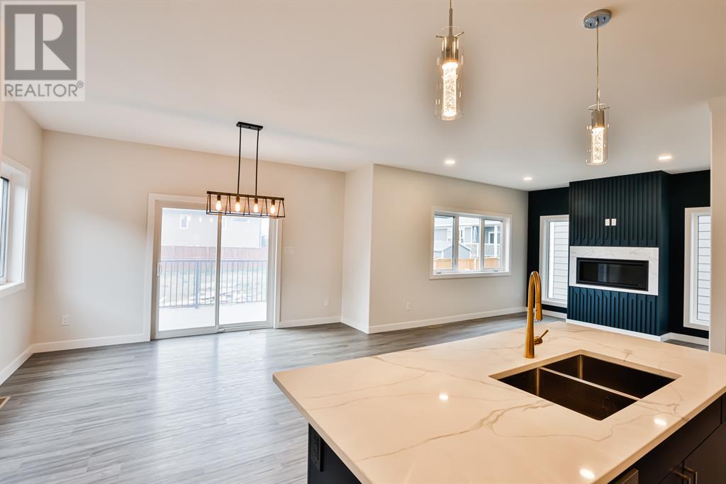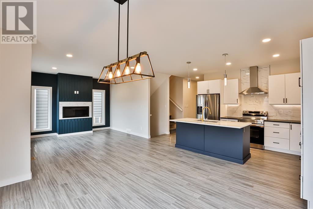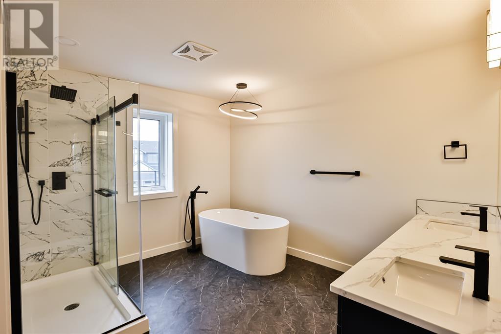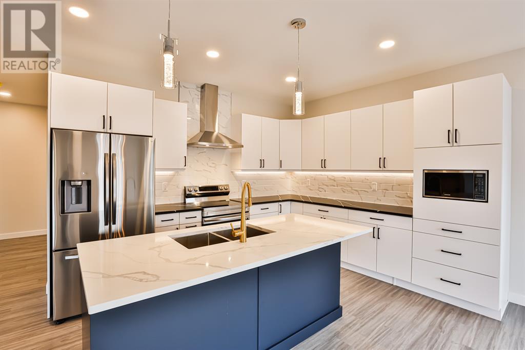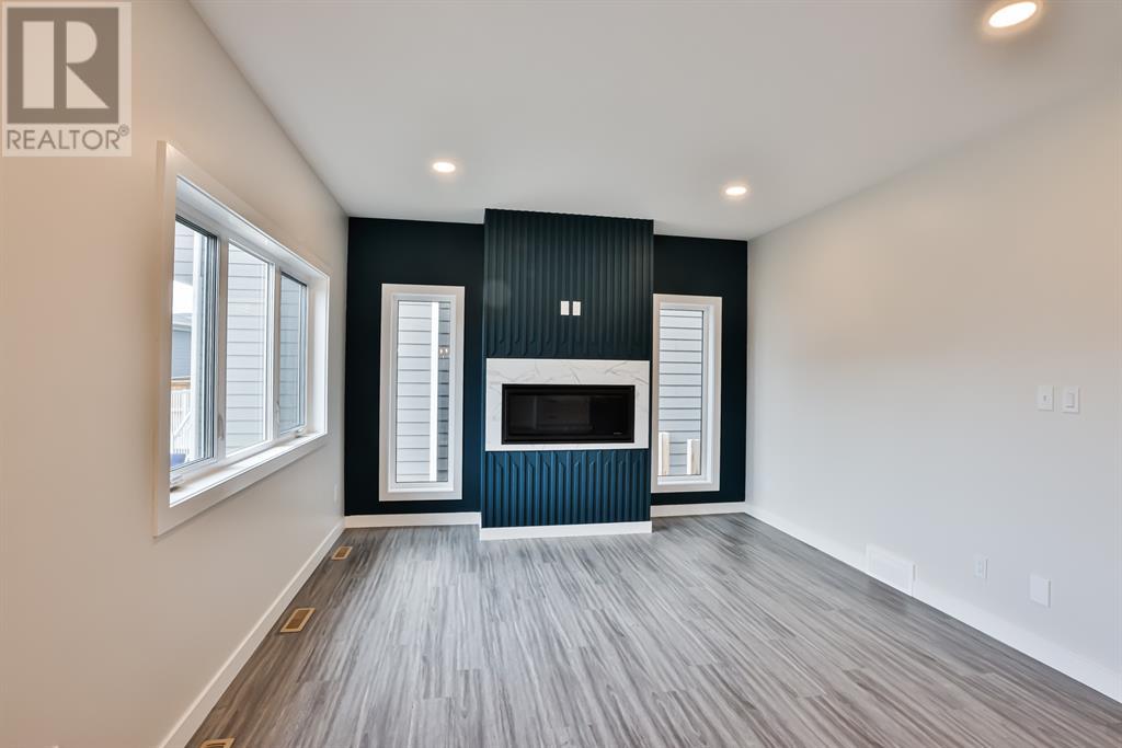 You are going to want to see this brand new modern build with loads of thoughtful details, in an amazing location! The main floor hosts a home office just off the front entrance, which is perfect if you work from home. The kitchen has beautiful white modern cabinets with a navy island, black and white quartz countertops, and under cabinet lighting to make everything pop! There are stainless steel appliances and a large walk in pantry as well. The whole main floor is nice and open, perfect for entertaining! The living room is cantered around a beautifully built in fireplace, with large triple paned windows on either side, offering incredible natural light everywhere you look. Follow the modern glass railing to the second floor bonus room, conveniently located right at the top of the stairs. There are 3 bedrooms, a laundry room, and bathroom up there as well. The primary bedroom is built over the garage, and has its own massive deck with glass railing. The ensuite has a stunning custom tile shower, double sinks, and a deep soaker tub with window for more natural light! Off the front of the house you get the most incredible, unobstructed view of the mountains! There is another composite deck in the back, and the basement is fully developed with 1 bedroom, 1 bathroom and a bar area. There is also a second option for laundry in the basement. This home is located just a couple minutes from the amazing YMCA with swimming pools, a gym, hockey arenas, a daycare, and plenty of services for the kids. A short walk to the amazing new Crossings Playground, groceries, restaurants, pharmacy and more. Give your realtor a call and come and see this gorgeous home! (id:22211)