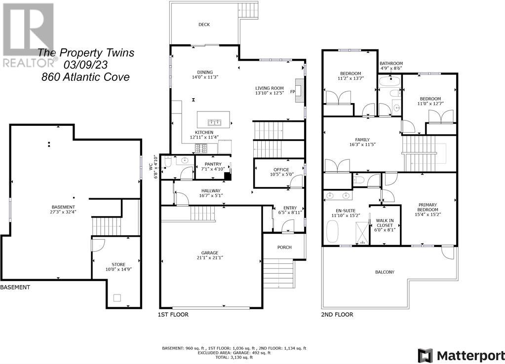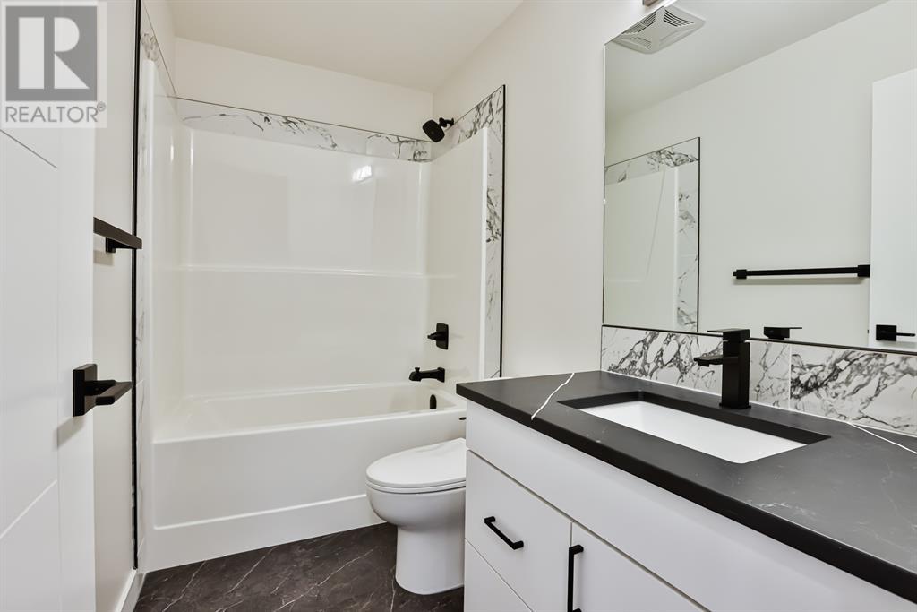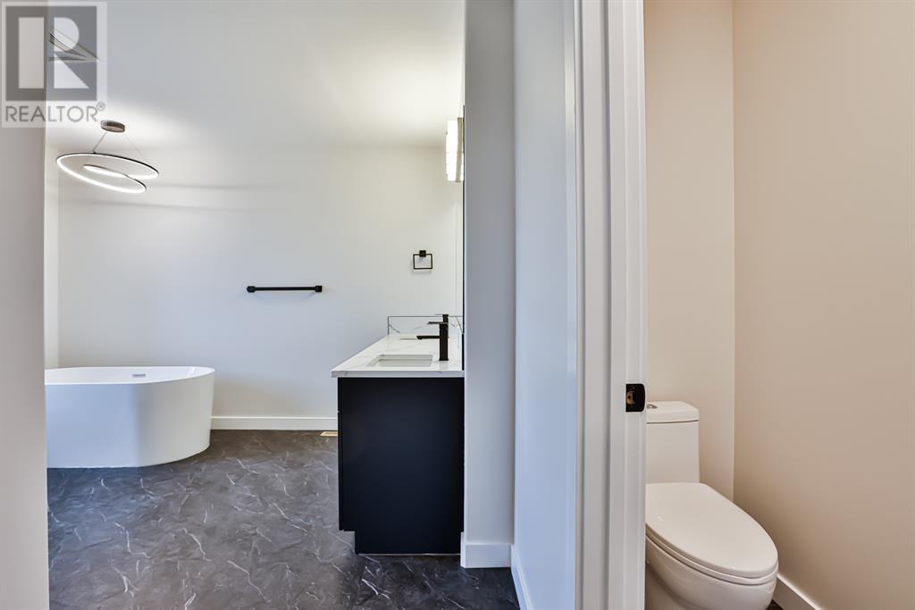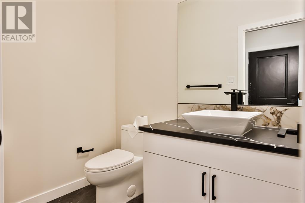 You are going to want to see this brand new modern build with loads of thoughtful details, in an amazing location! The main floor hosts a home office just off the front entrance, which is perfect if you work from home. The kitchen has beautiful white modern cabinets with a navy island, black and white quartz countertops, and under cabinet lighting to make everything pop! There are stainless steel appliances and a large walk in pantry as well. The whole main floor is nice and open, perfect for entertaining! The living room is cantered around a beautifully built in fireplace, with large triple paned windows on either side, offering incredible natural light everywhere you look. Follow the modern glass railing to the second floor bonus room, conveniently located right at the top of the stairs. There are 3 bedrooms, a laundry room, and bathroom up there as well. The primary bedroom is built over the garage, and has its own massive deck with glass railing. The ensuite has a stunning custom tile shower, double sinks, and a deep soaker tub with window for more natural light! Off the front of the house you get the most incredible, unobstructed view of the mountains! There is another composite deck in the back, and the basement is fully developed with 1 bedroom, 1 bathroom and a bar area. There is also a second option for laundry in the basement. This home is located just a couple minutes from the amazing YMCA with swimming pools, a gym, hockey arenas, a daycare, and plenty of services for the kids. A short walk to the amazing new Crossings Playground, groceries, restaurants, pharmacy and more. Give your realtor a call and come and see this gorgeous home! (id:22211)