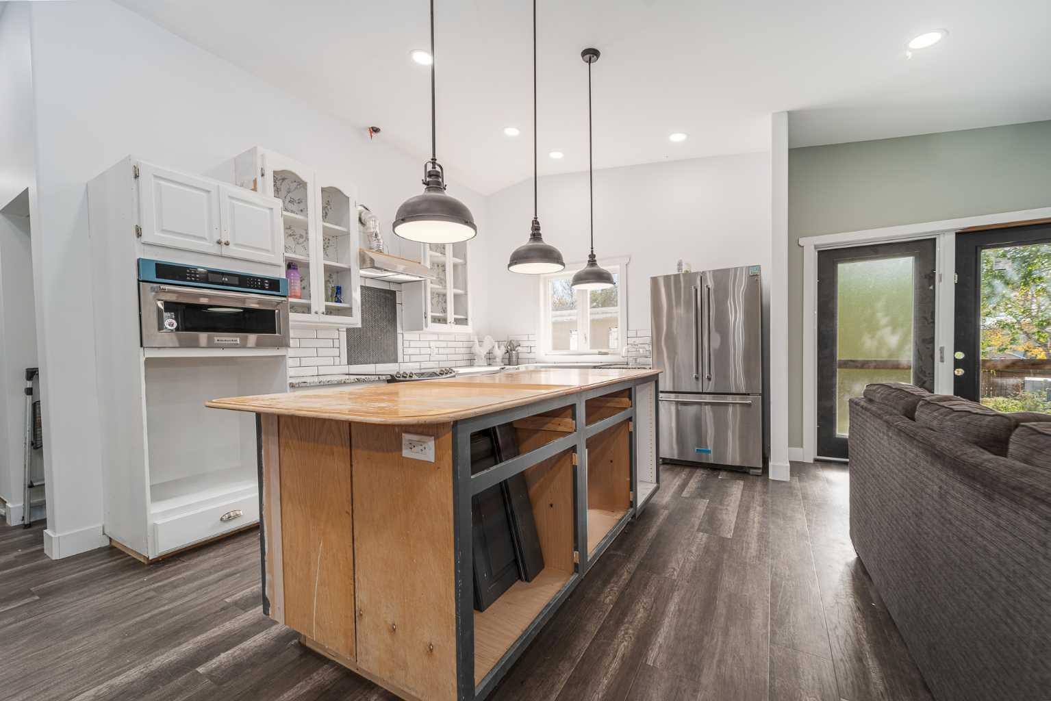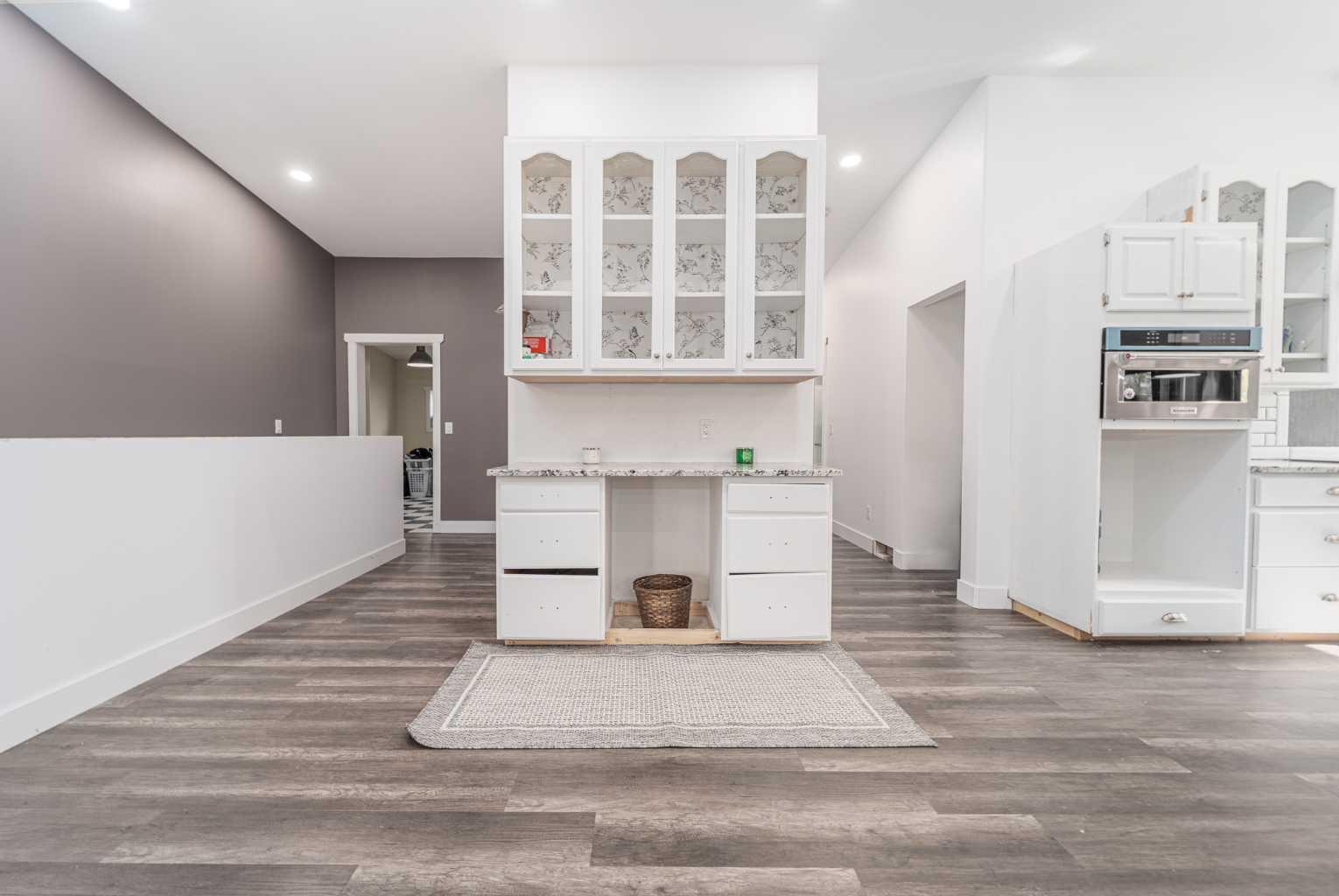 Interior FeaturesBathroom Rough-in,Breakfast Bar,High Ceilings,Kitchen Island,Laminate Counters,No Smoking Home,Open Floorplan,Recessed Lighting,Separate Entrance,Vaulted Ceiling(s),Vinyl Windows,Walk-In Closet(s)