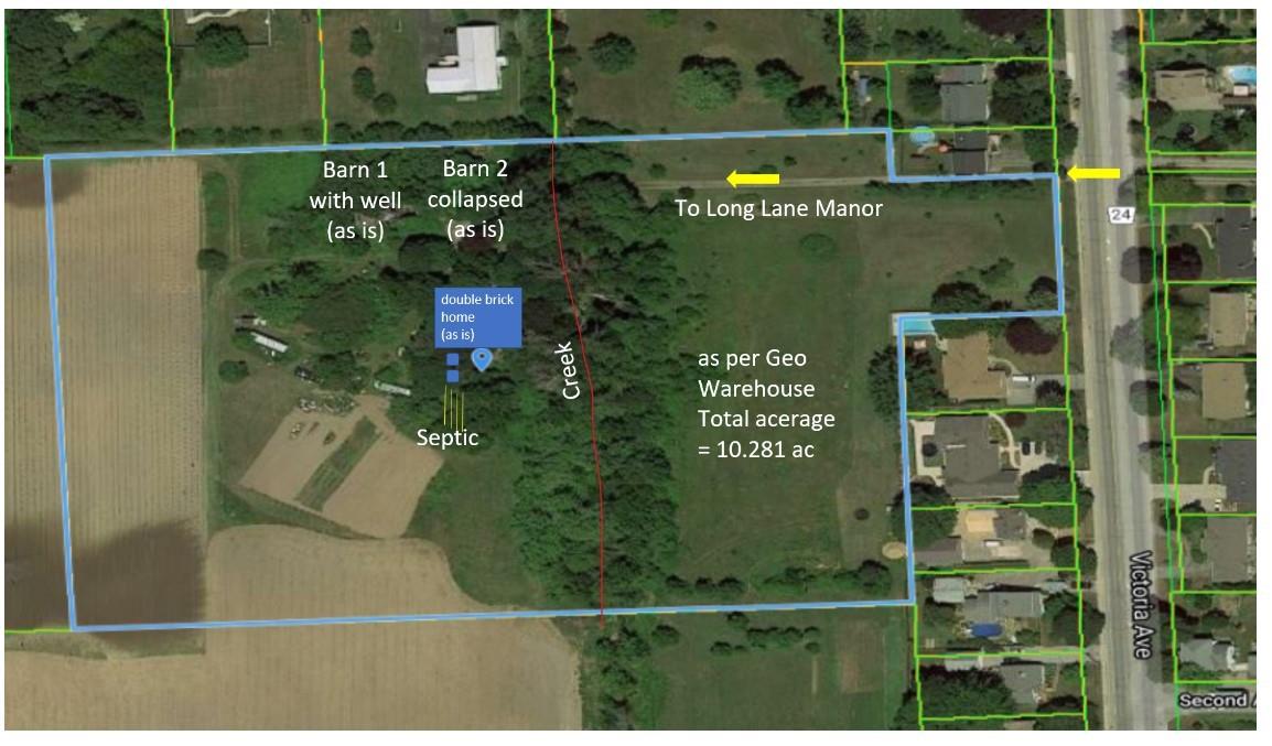 Location! Welcome to Long Lane Manor just over an hour drive from Toronto. Exceptional opportunity to own prime acreage within minutes from the highway as well as many wineries and restaurants. This property welcomes you with an exceptionally large frontage right on Victoria Ave. Follow the long lane up just over the bridge as you are welcomed by your double-brick century home that is just under 2300 sq ft and is nestled on a hill privately behind many mature, grand trees. This home is a diamond in the rough and awaits your imagination of bringing back the charm of another era. With over 10 acres to explore you have ample space to enjoy this property and work it as a hobby farm if you decide not to rent it to a farmer. This home and property is being sold "as is", "where is" and awaits your passion. (id:22211)