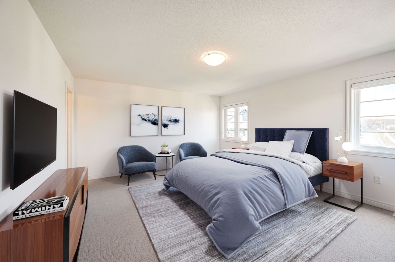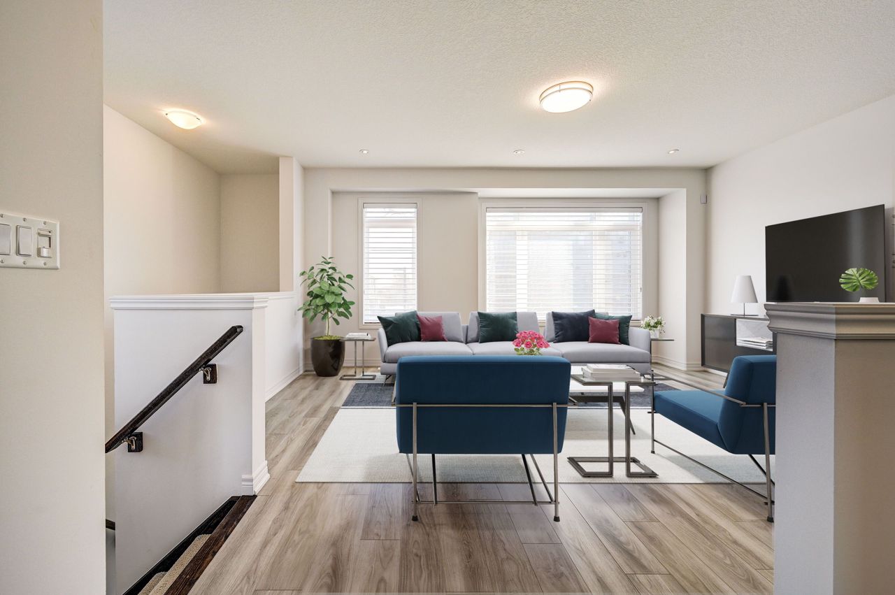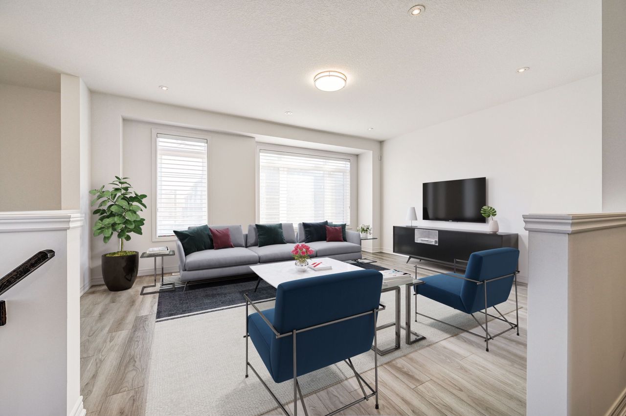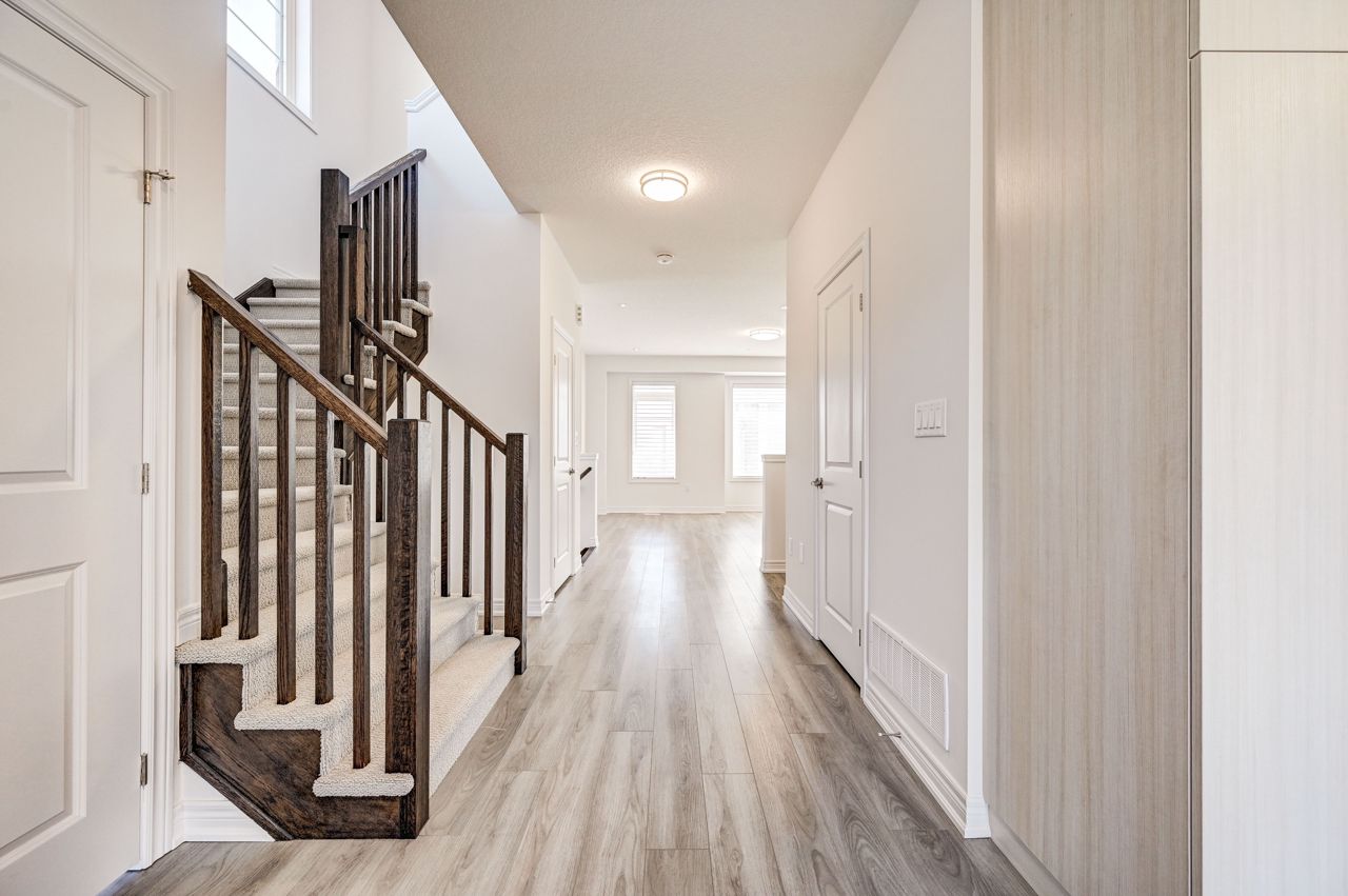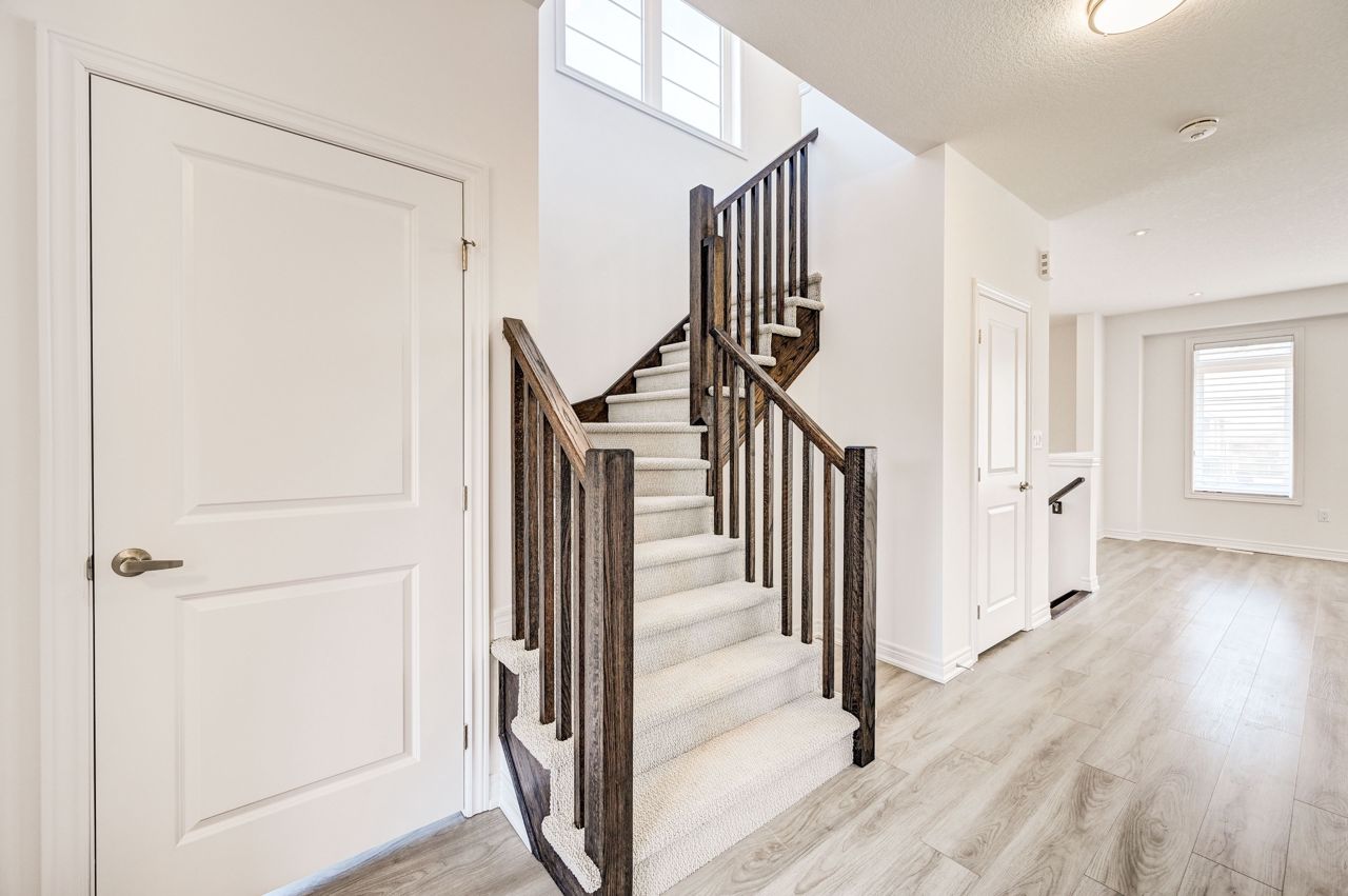 This magnificent home offers spectacular views, including a view of Lake Ontario. It is the largest of its kind, providing 2187 square feet of living space and the added convenience of 4 car parking. The home also features a walk-out finished basement. Despite being an end unit, it feels like a detached home due to the large open space both inside and outside. The main floor includes a den that can also serve as a bedroom, complete with a walk-out. The bedrooms in the home boast large closets and large windows, allowing for plenty of natural light. The interior has a modern feel and has been tastefully upgraded, providing a turnkey experience for those looking to move in without any additional work. The location of this property is also highly desirable. It is just steps away from parks, schools, and offers easy access to the highway. Given its attractive features and prime location, this home is expected to generate significant interest and will likely sell quickly.