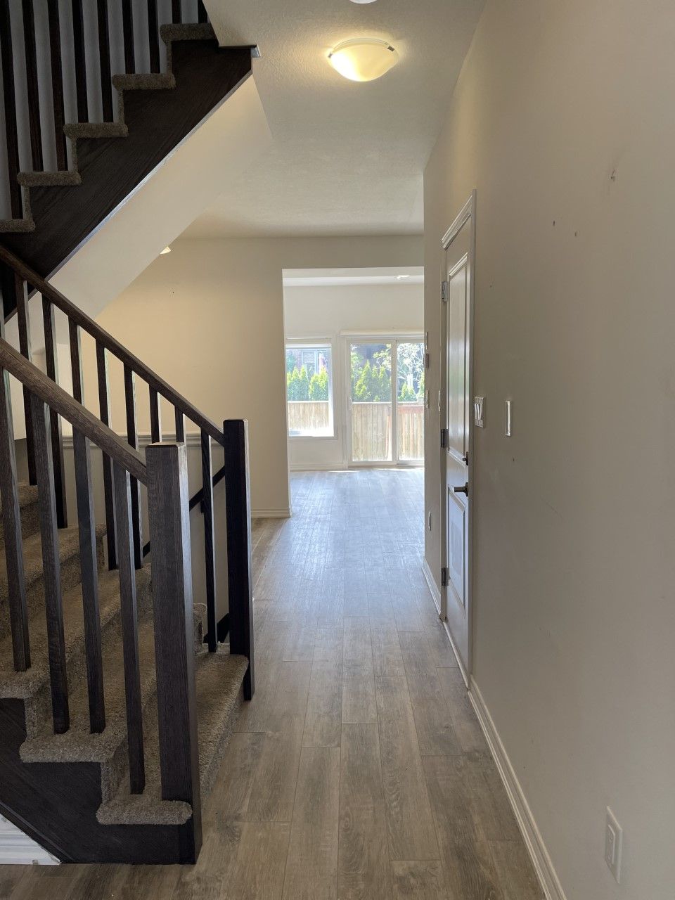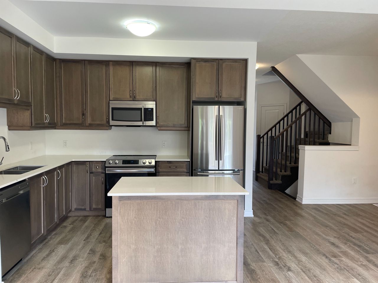 Spacious 3 bed/3 washroom Modern townhouse. Main floor features 9ft ceilings, open concept floorplan with an upgraded large eat-in kitchen with S/S appliances and island. Spacious bright great room with pot lights, laminate flooring and a walk out to the backyard. Large Master bedroom features oversized windows, walk-in closet and a 3 pc washroom. 2nd floor laundry room. Convenient Interior garage access. Steps to Playground, basket ball and tennis court., Close to many locally-owned shops, Walking distance to Stadelbauer Ravine Trail and St. Mark Catholic school. Quick access to QEW for commuters. POTL road fee is $96.00/month.S/S kitchen appliances: stove, fridge, built-in dishwasher, washer and dryer, Electrical Light fixtures and Window coverings