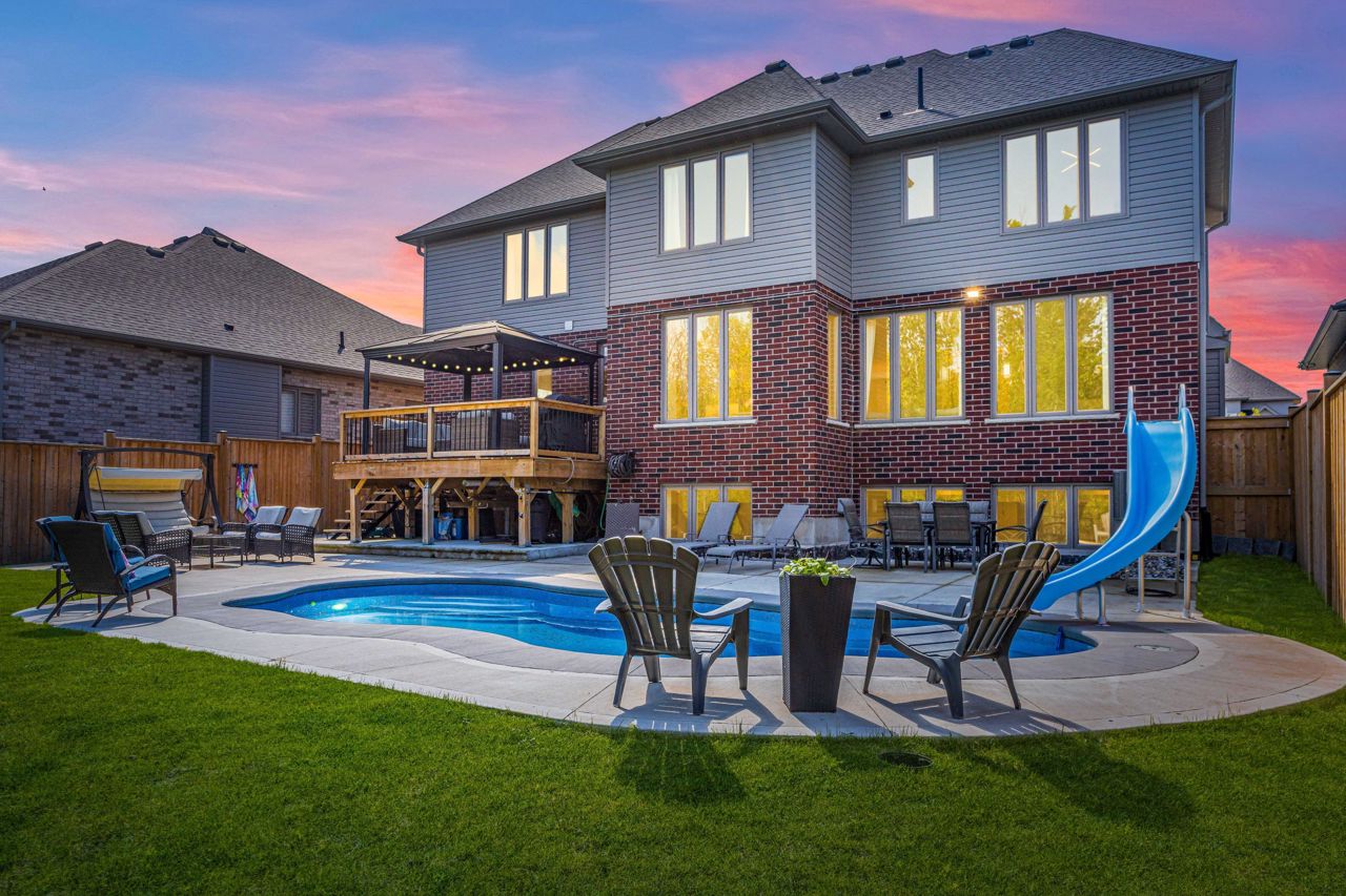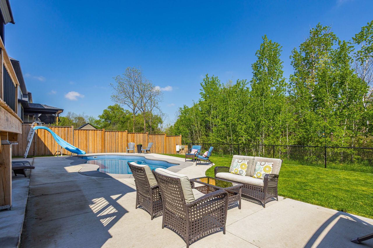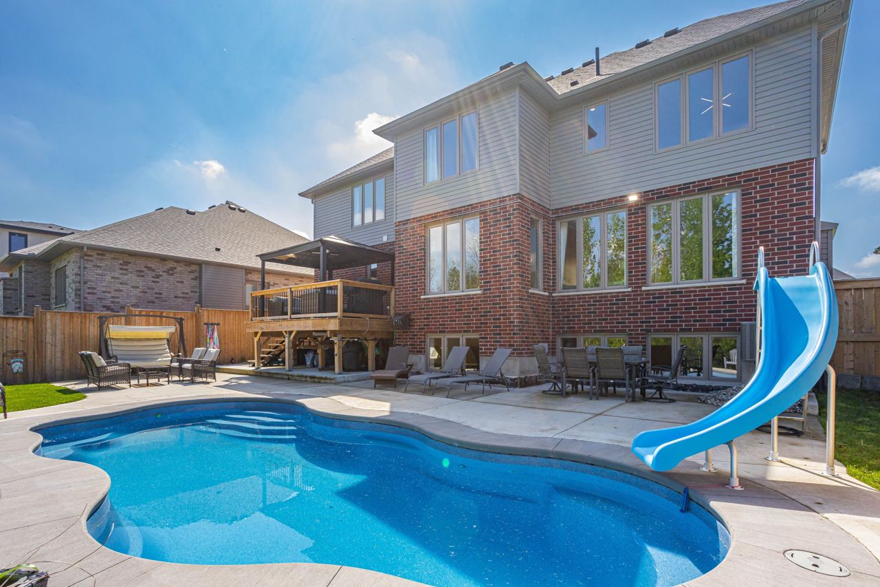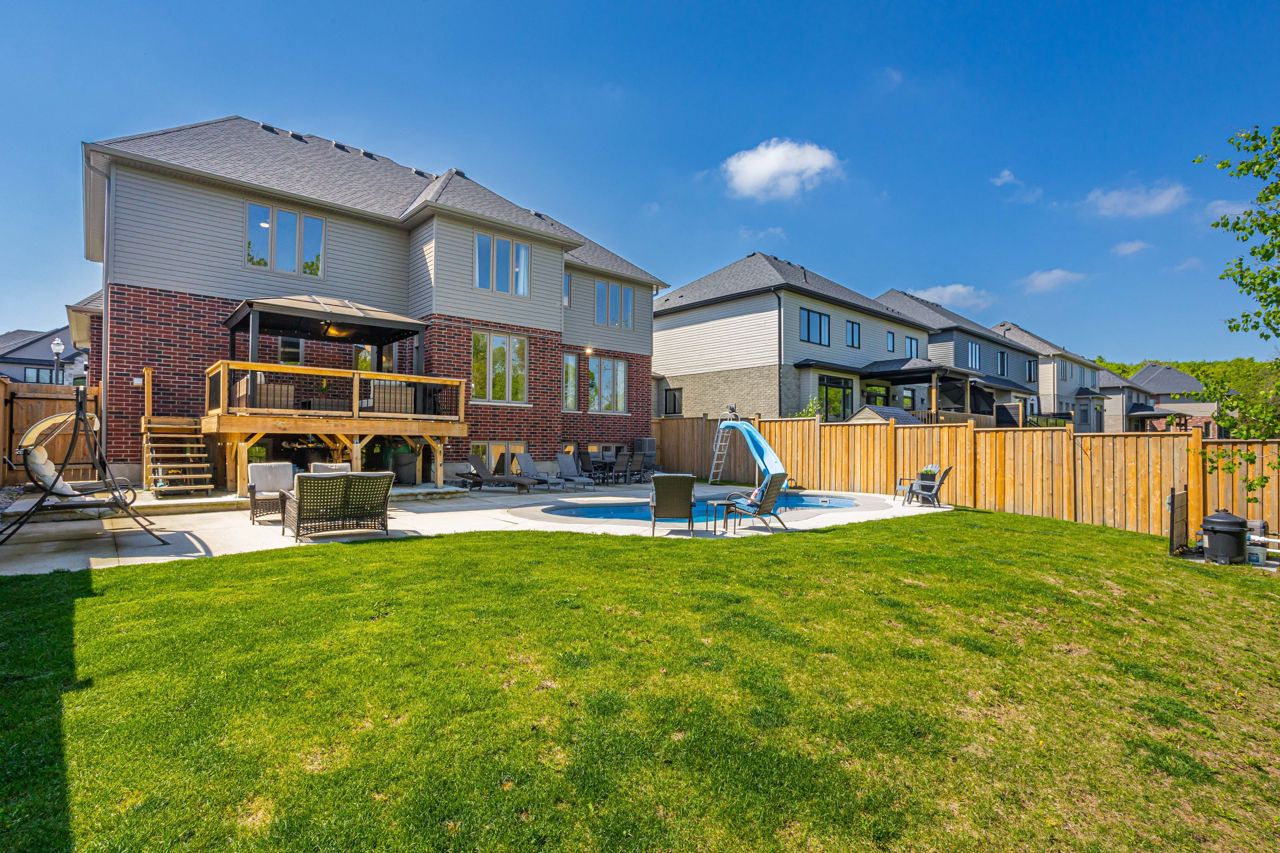 Elegant Living in Uplands North! A forest-backed retreat nestled in the highly coveted Uplands North neighbourhood, this exceptional Westhaven custom-built home (2021) offers unparalleled privacy, backing onto protected trees & the Medway Valley Heritage Forest Conservation Area. From breathtaking sunsets seen through panoramic windows to the tranquil natural surroundings, this property is a true sanctuary.Spanning over 4,000 sq. ft. of total living space, this opulent residence combines modern luxury with timeless design. The soaring front foyer opens to an elegant staircase, with light oak hardwood flooring flowing throughout. Natural light floods the open-concept main floor, creating a warm and inviting atmosphere.The chefs kitchen is a showpiece, featuring a stunning 20-foot quartz island with ample seating, custom range hood and backsplash. A bespoke coffee bar with custom cabinetry and glass cupboards adds a unique touch. The kitchen flows seamlessly into the formal dining room and cozy living area, complete with a gas fireplace, custom built-ins, and forest views.Upstairs, the primary suite is a retreat in itself, offering a spa-like ensuite with double quartz vanities, soaker tub, oversized glass shower, and a walk-in closet. A second bedroom with vaulted ceilings, large windows, and its own ensuite provides versatility for a second primary suite. Two additional bedrooms share a Jack-and-Jill bathroom with double sinks.The fully finished basement features oversized look-out windows and offers a spacious recreation area, games room, bedroom, and bathroom, ideal for guests or family. The outdoor oasis is an entertainers dream with a kidney-shaped saltwater pool, upper and lower level seating, and a peaceful forest backdrop.This home is truly a retreat where luxury meets nature. With a two-car garage, mudroom, large pantry, expansive main floor office and thoughtfully designed spaces, its the perfect blend of comfort and sophistication. Floor Plans Available.