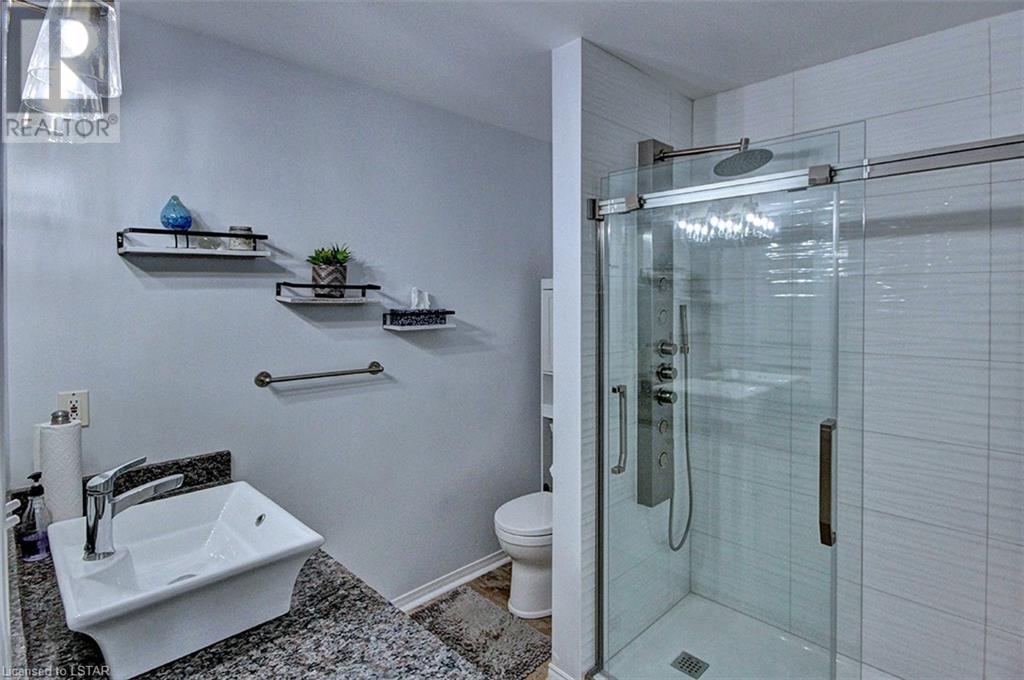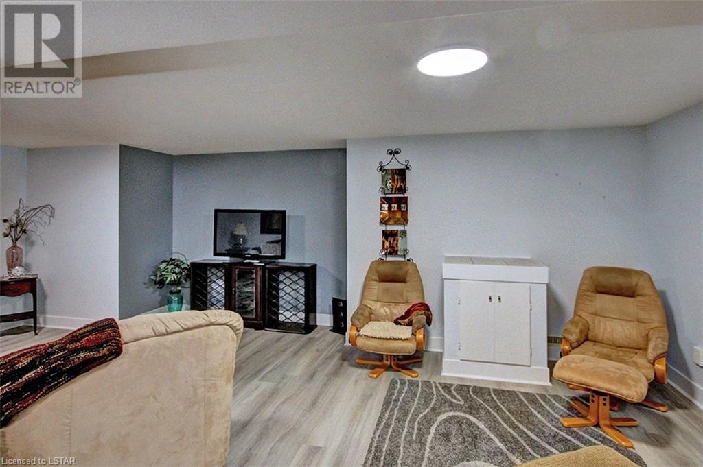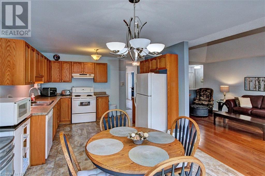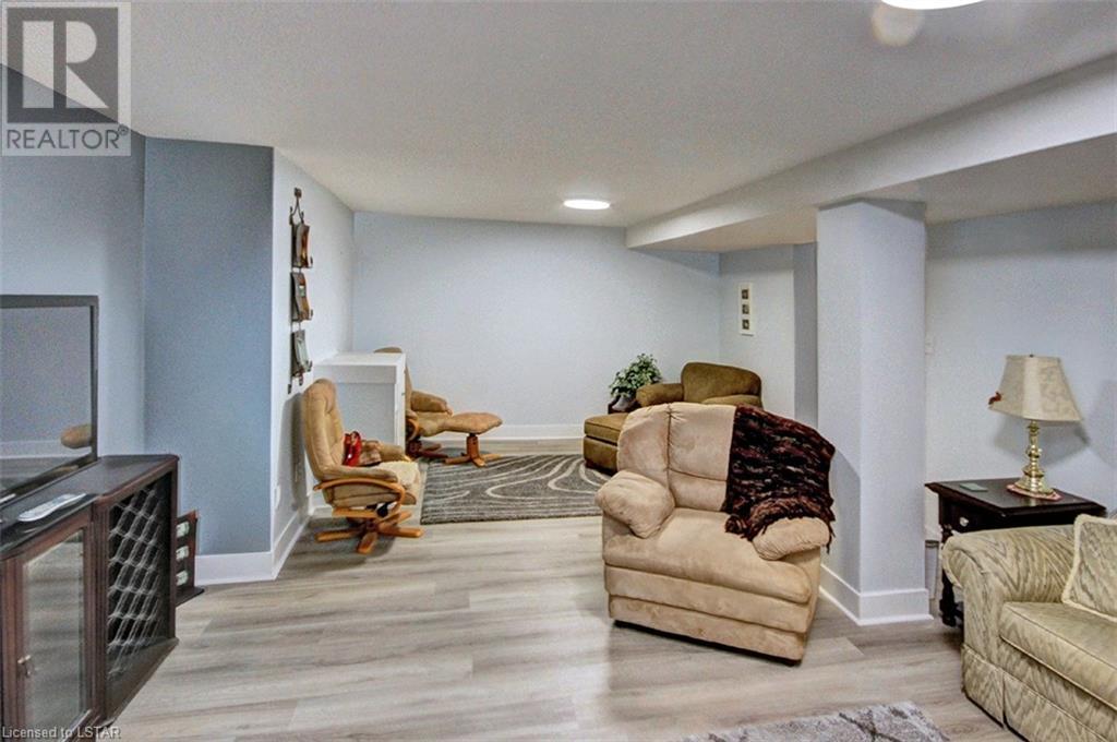 Stunning on Stroud. This updated 3+1 bedroom, 2 full bathroom one floor condo in White Oaks is ready for you! Featuring beautiful hardwood flooring throughout the main floor. The spacious living room has a cove ceiling and the dining room leads out to an amazing two tier deck. The lower portion has been recently replaced. The primary bedroom is spacious and bright with large closet. The primary bathroom has been recently updated with with a new ceramic and rain head shower. The finished basement features a large family room, 4th bedroom and 3 piece bathroom and we have to mention the basement still has loads of storage room. No need to cut the grass or shovel, the low condo fees include snow removal and lawn maintenance! Close access to the 401/402 and incredible shopping, this home is ready for you to enjoy the holidays and create new memories! Don't miss out. (id:22211)