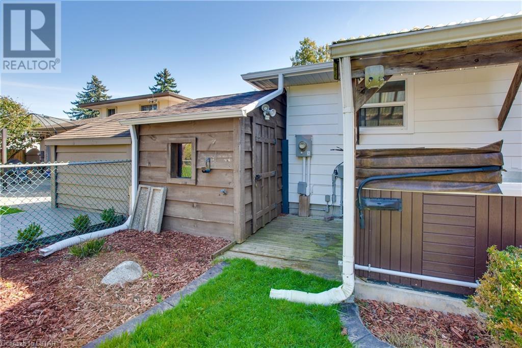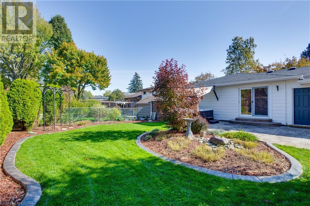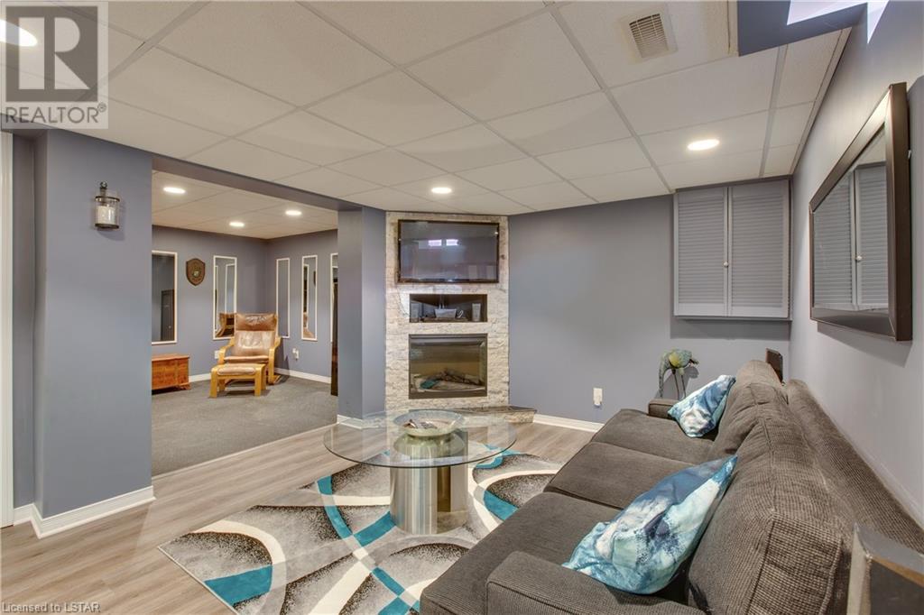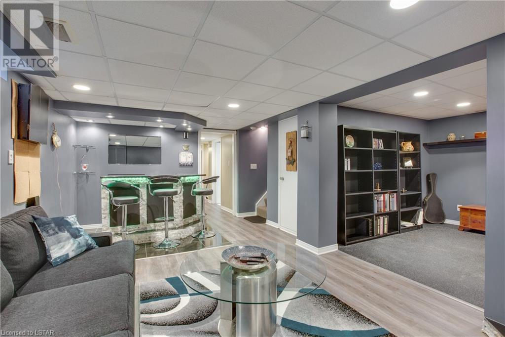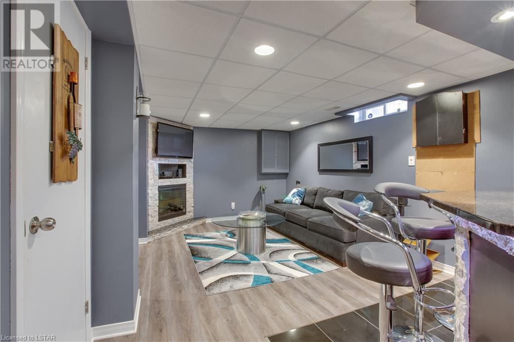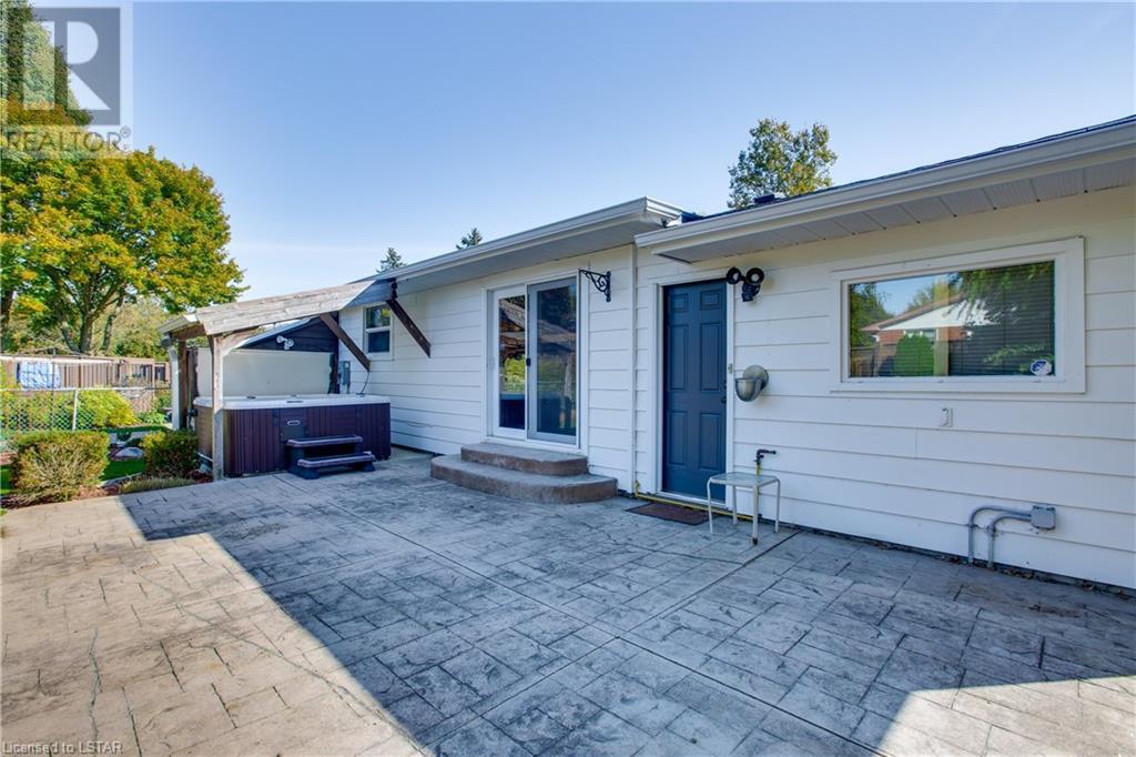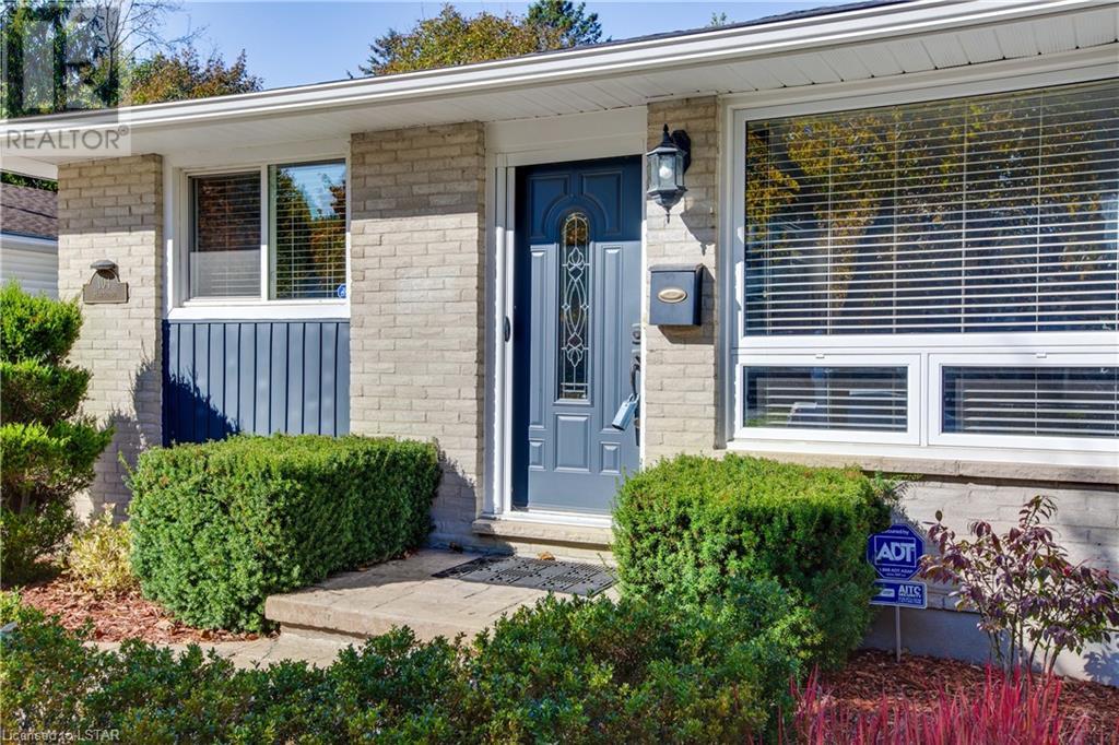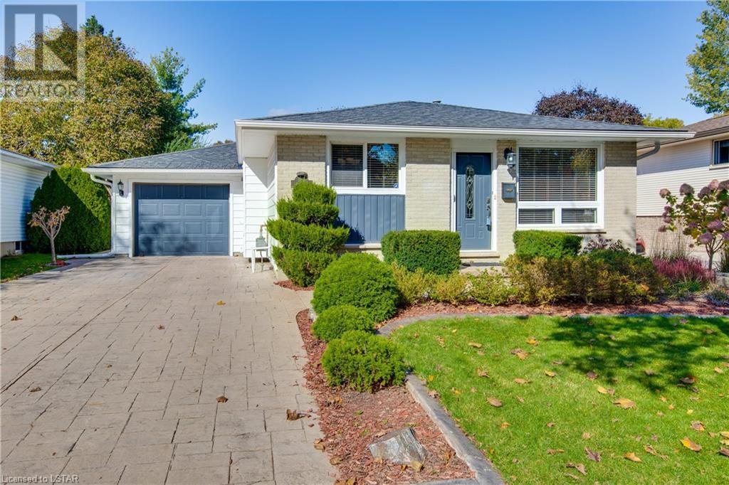 This is the one you’ve been waiting for! 2+1 bedroom, 2 bath northwest London bungalow is loaded with features and upgrades. Enter into the freshly painted spacious living room adorned with hardwood floors, crown moulding and a sleek electric fireplace. The rest of the main floor features a gorgeous kitchen with all appliances, pantry and corner free standing cabinet included, 3 bedrooms on the main floor with one currently being used as an office with a custom built-in desk and a beautiful 4 piece renovated bathroom. The fully finished lower level was spray foamed throughout and has everything that you could possibly want, recroom with fireplace and mounted tv(included), gym with rubber floor, bar(with fridge and barstools included), spacious laundry room and 2 more finished rooms which could be transformed into legal bedroom(s) with the addition of an egress window(s). The stunning exterior features low maintenance gardens surrounded by concrete curbing, stamped concrete patio, walkway and driveway, covered hot tub and shed. The fully insulated and heated garage is presently used as a man cave and includes, rubber flooring, ice/water machine, second fridge, freezer, loads of cabinetry and workbench. Updated hydro panel, CA(22’). Close to great schools and all amenities. Don’t wait on this one! (id:22211)
