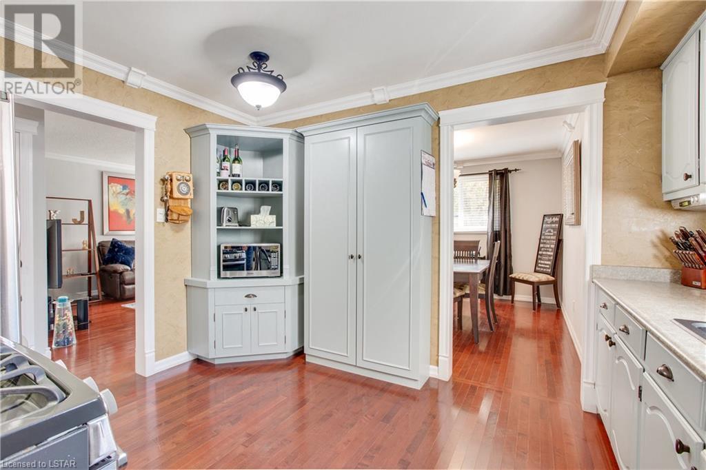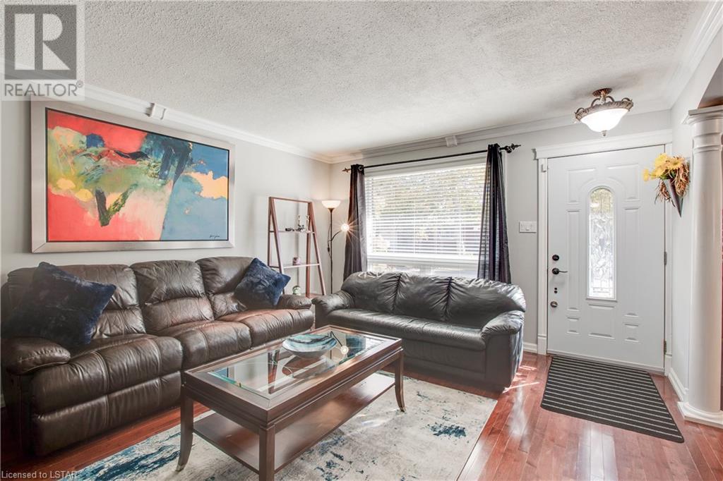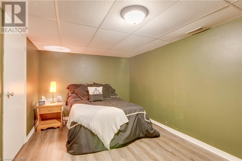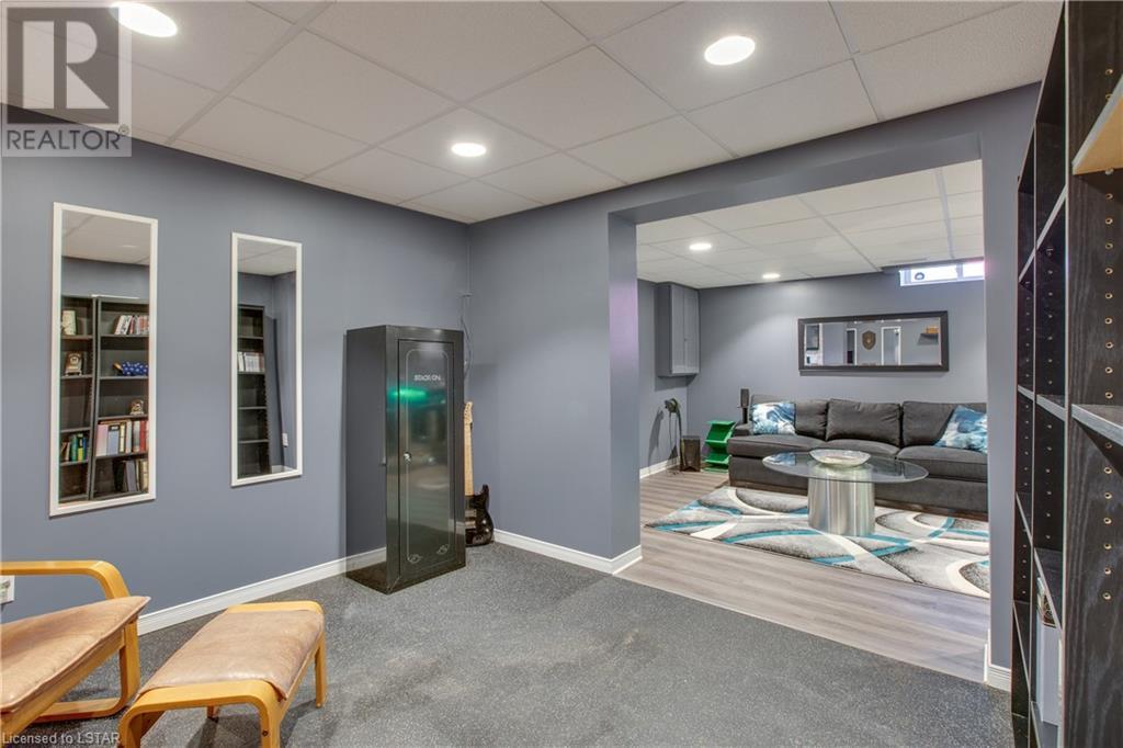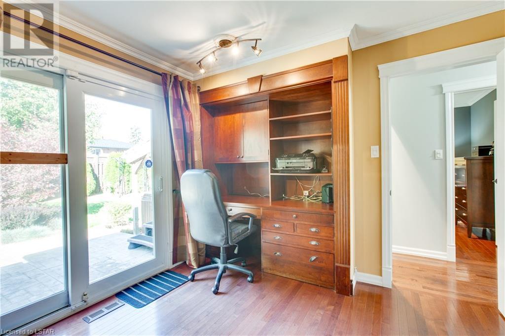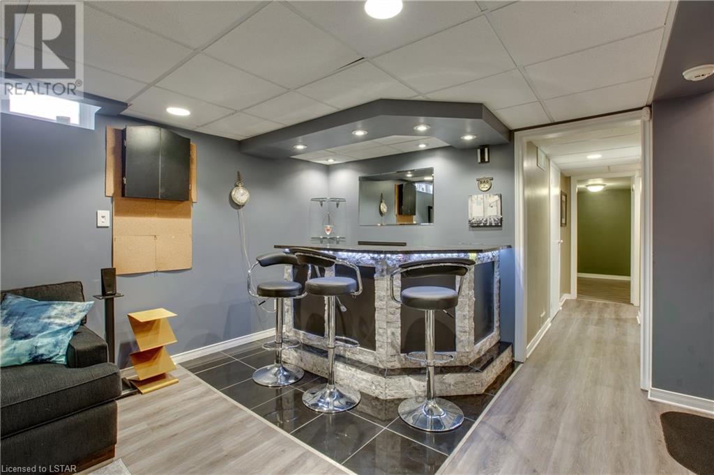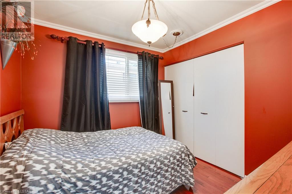 This is the one you’ve been waiting for! 2+1 bedroom, 2 bath northwest London bungalow is loaded with features and upgrades. Enter into the freshly painted spacious living room adorned with hardwood floors, crown moulding and a sleek electric fireplace. The rest of the main floor features a gorgeous kitchen with all appliances, pantry and corner free standing cabinet included, 3 bedrooms on the main floor with one currently being used as an office with a custom built-in desk and a beautiful 4 piece renovated bathroom. The fully finished lower level was spray foamed throughout and has everything that you could possibly want, recroom with fireplace and mounted tv(included), gym with rubber floor, bar(with fridge and barstools included), spacious laundry room and 2 more finished rooms which could be transformed into legal bedroom(s) with the addition of an egress window(s). The stunning exterior features low maintenance gardens surrounded by concrete curbing, stamped concrete patio, walkway and driveway, covered hot tub and shed. The fully insulated and heated garage is presently used as a man cave and includes, rubber flooring, ice/water machine, second fridge, freezer, loads of cabinetry and workbench. Updated hydro panel, CA(22’). Close to great schools and all amenities. Don’t wait on this one! (id:22211)