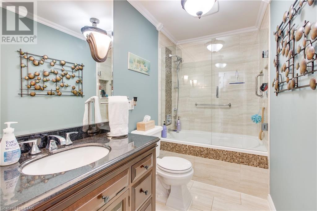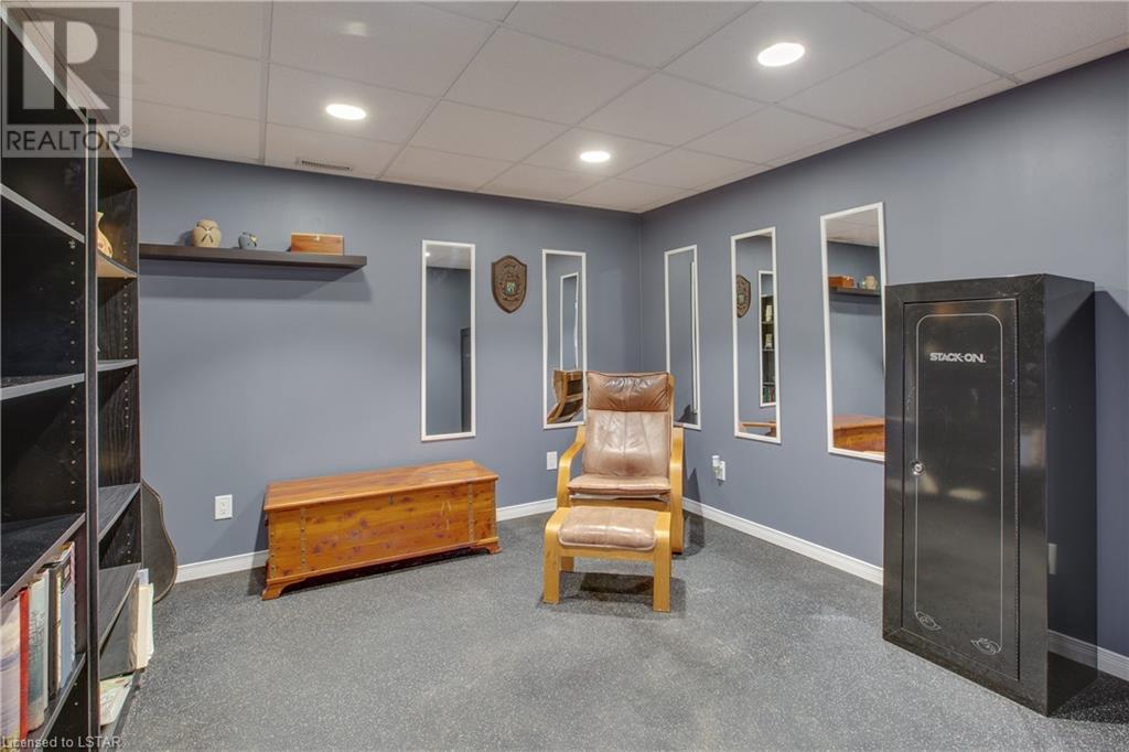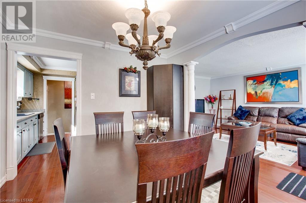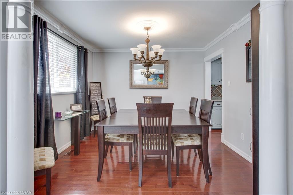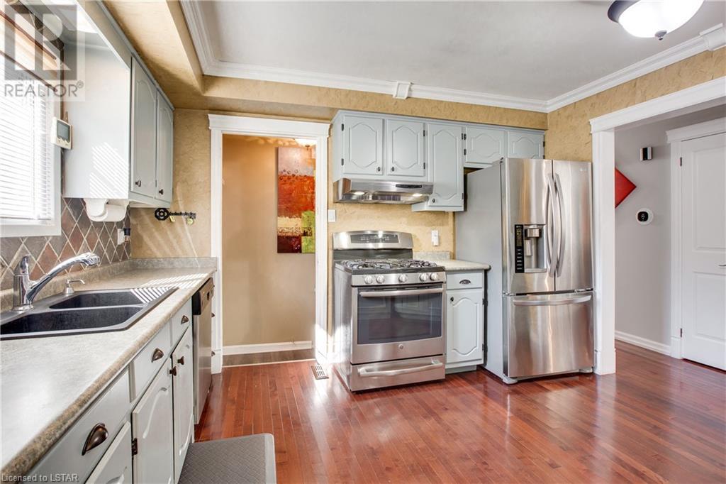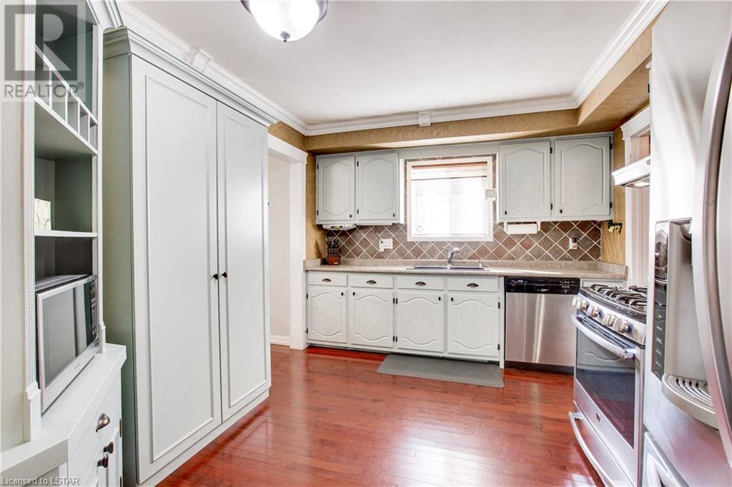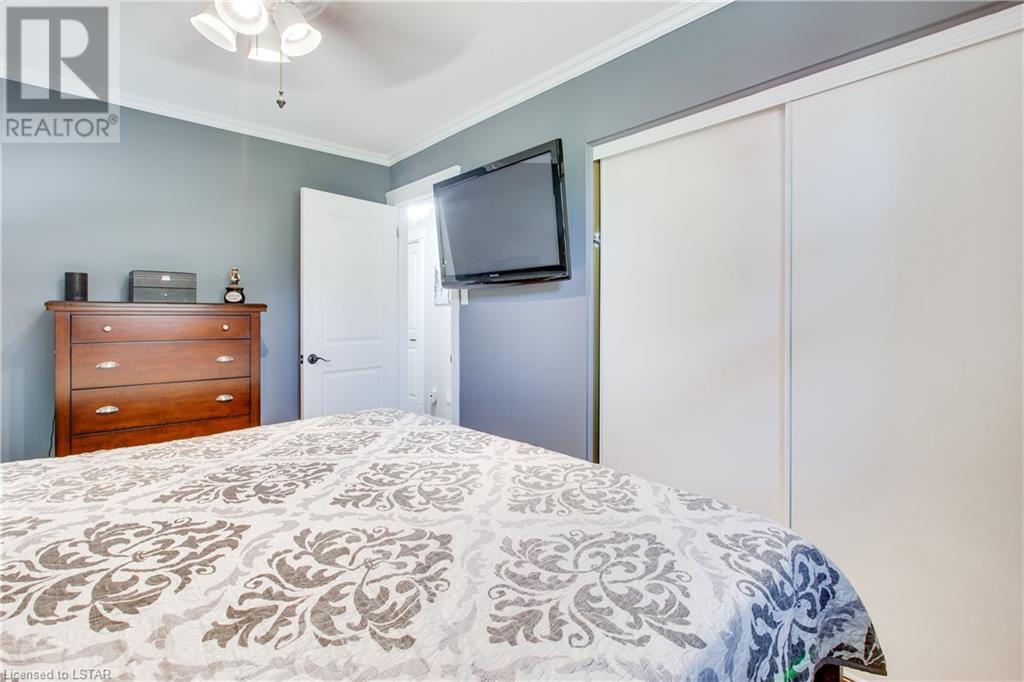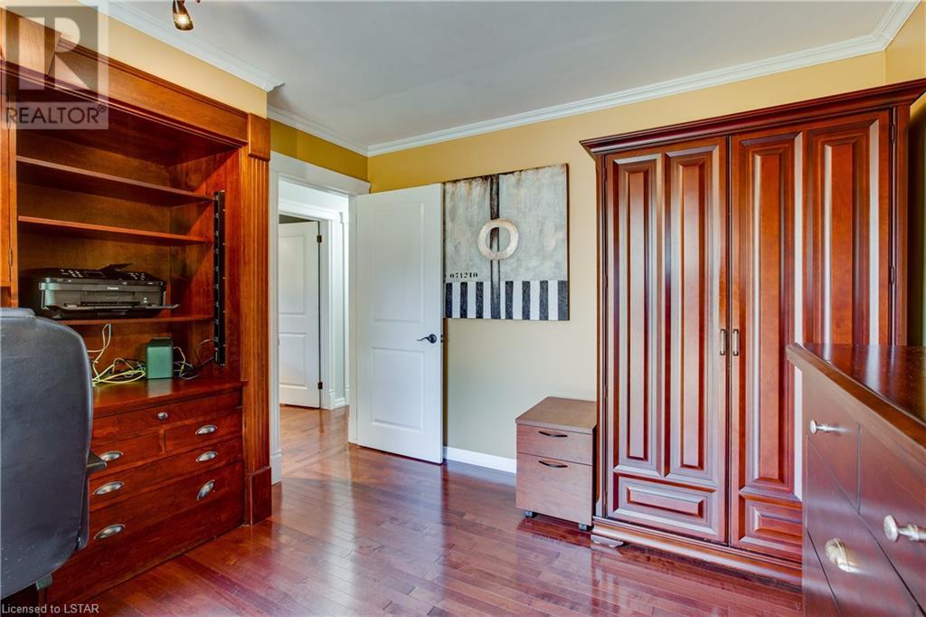 This is the one you’ve been waiting for! 2+1 bedroom, 2 bath northwest London bungalow is loaded with features and upgrades. Enter into the freshly painted spacious living room adorned with hardwood floors, crown moulding and a sleek electric fireplace. The rest of the main floor features a gorgeous kitchen with all appliances, pantry and corner free standing cabinet included, 3 bedrooms on the main floor with one currently being used as an office with a custom built-in desk and a beautiful 4 piece renovated bathroom. The fully finished lower level was spray foamed throughout and has everything that you could possibly want, recroom with fireplace and mounted tv(included), gym with rubber floor, bar(with fridge and barstools included), spacious laundry room and 2 more finished rooms which could be transformed into legal bedroom(s) with the addition of an egress window(s). The stunning exterior features low maintenance gardens surrounded by concrete curbing, stamped concrete patio, walkway and driveway, covered hot tub and shed. The fully insulated and heated garage is presently used as a man cave and includes, rubber flooring, ice/water machine, second fridge, freezer, loads of cabinetry and workbench. Updated hydro panel, CA(22’). Close to great schools and all amenities. Don’t wait on this one! (id:22211)