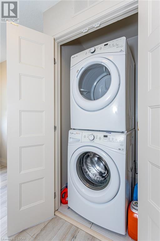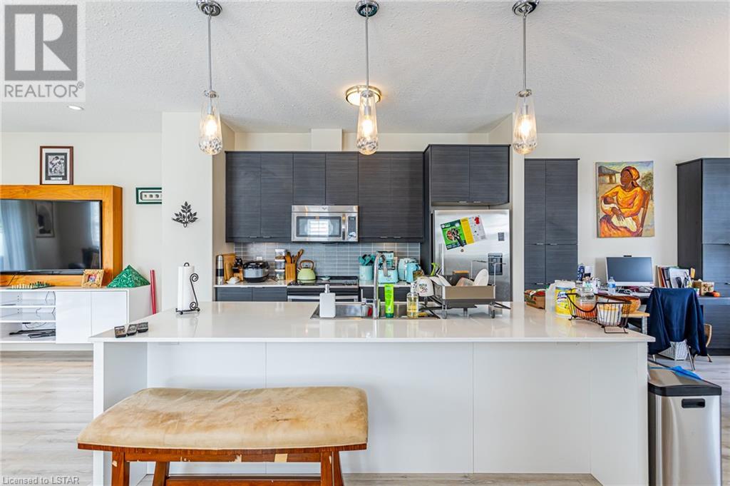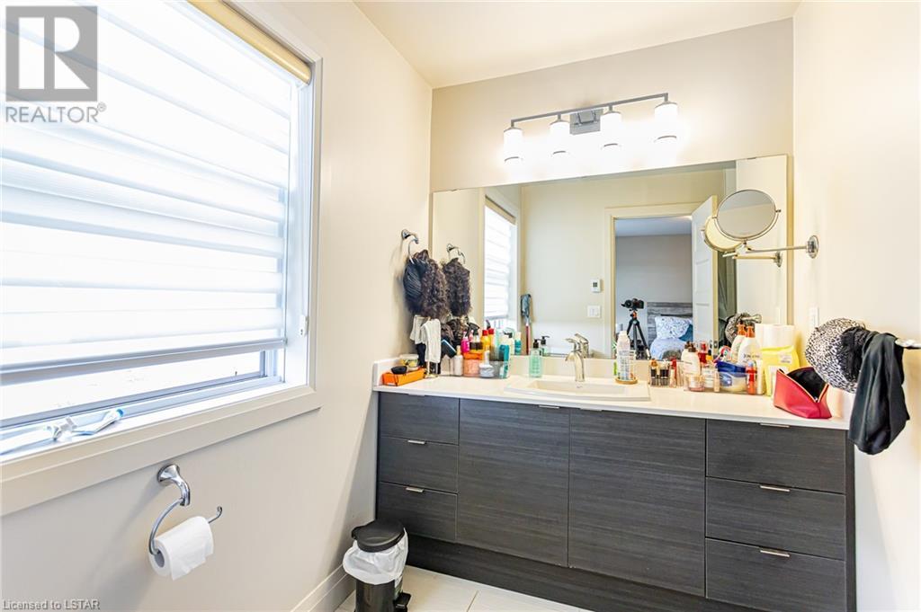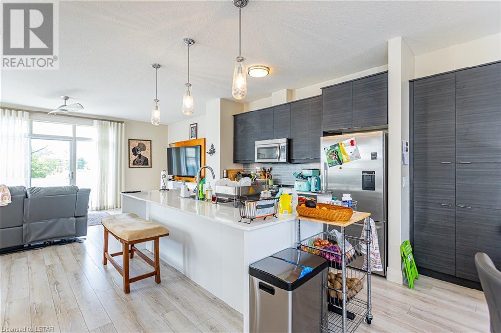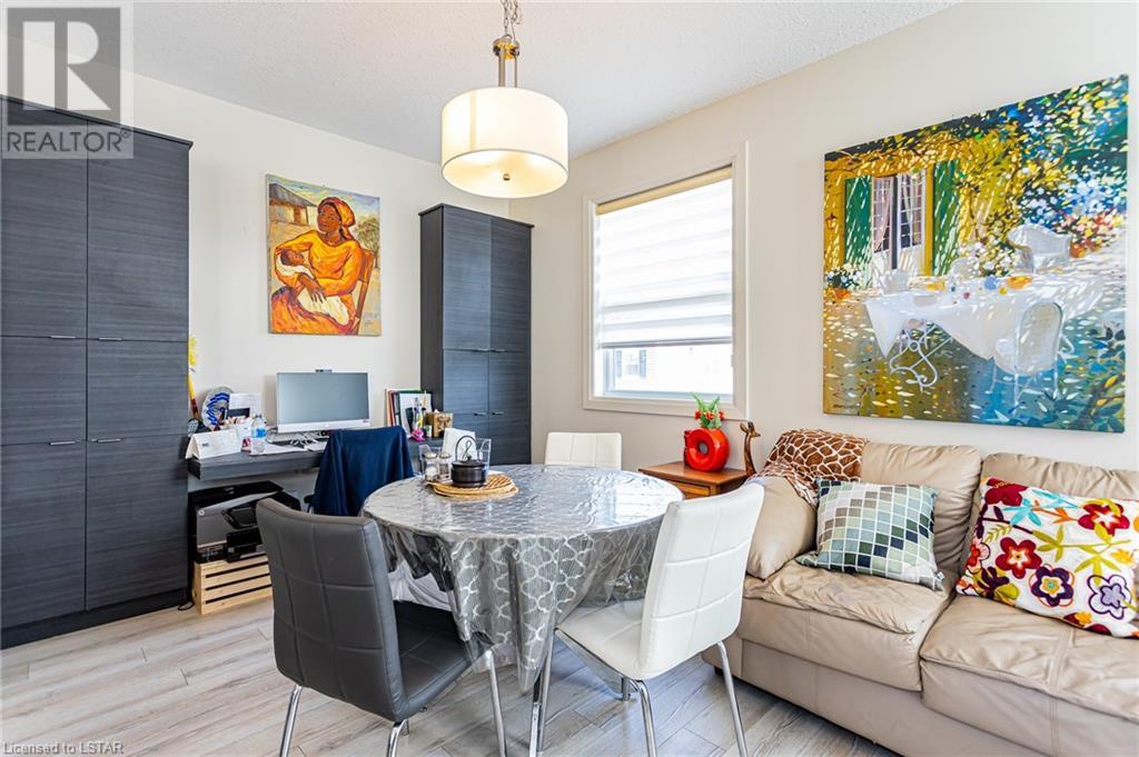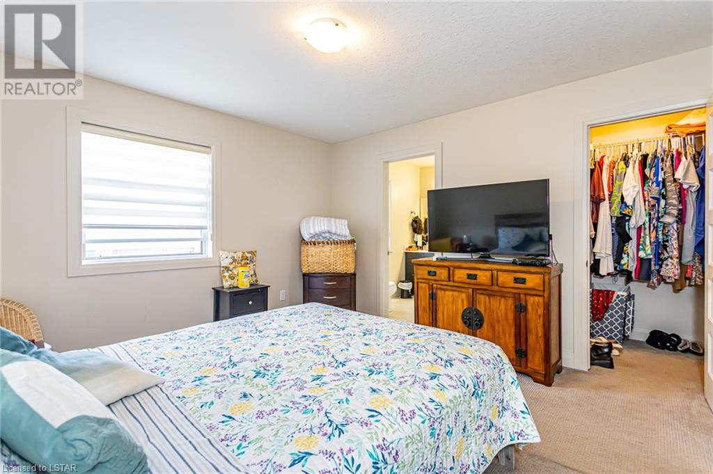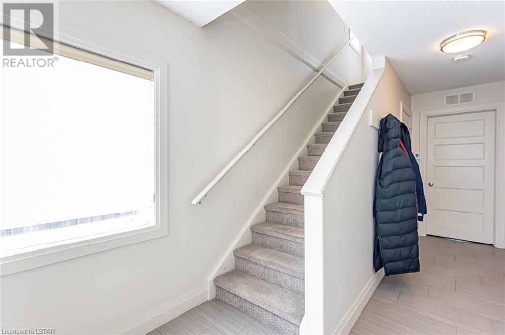 2 CAR TANDEM GARAGE END UNIT! This Luxurious 3 Bed, 2.5 Bath Townhouse is located in one of the most sought after areas of North London. With over 1800sqft of total space, this 3-storey modern home with 9ft ceilings throughout has been dressed to the nines. Walk directly into your heated tiled floor foyer from your 2 car garage and head upstairs to your open concept living and dining area. Walk-out to your balcony and enjoy entertaining friends with your Gas BBQ while overlooking green space directly behind. The living room features a built-in entertainment storage unit which creates a nice back drop for your flat-screen TV. A powder room and Upgraded storage shelves in the wall located above the stairs completes this space. With high-end laminate, Quartz countertops, and tons of windows throughout, this end unit is by far one of the best in the complex. Let the natural light pour into the gourmet Kitchen while you make your morning coffee. Featuring a glass backsplash, centre island, breakfast bar, and tons of storage, this kitchen is perfect for convenient family living. Upgraded built-in office space on the main floor gives the opportunity for you to work from home without needing to convert a bedroom into a Den. The third level is the designated R&R floor with 3 large bedrooms, 2 full bathrooms, laundry, and storage. The Primary bedroom features a walk-in closet and heated floors in the ensuite. Located close to Western, University Hospital, parks, trails, and a major shopping centre. (id:22211)