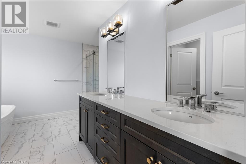 BRAND NEW - 2.99% Financing Available for a 3 Yr Term ask how you can Purchase this LUXURIOUS 2 STOREY HOME! Welcome to REMBRANDT WALK - Rembrandt Homes VACANT LAND CONDO COMMUNITY- Enjoy all the benefits of having a detached home but with low community Fees to help you enjoy a care free lifestyle and have your Lawn care and Snow removal managed for you! This 2 STOREY TERRACE MODEL offers 3476 sq ft of finishing Living space and is perfect for professionals and families alike. Highlights include, open concept design, Main Floor Office, Main Floor Laundry, Upgraded kitchen with Appliances, 9ft Ceilings and Living Room w/gas fireplace, formal dining and a Covered deck with BBQ gas line off the dinette area. The Second Floor is IMPRESSIVE with 4 generous sized Bedrooms and the Lower level is complete with a Rec Room, 5th Bedroom and 3pc Bathroom. Located in highly desirable North West London, just a short distance to Mega Shopping, Masonville Mall, UWO and Hospital, you will want to put this one on your MUST SEE LIST! * NOTE Photos are Virtually Staged (id:22211)