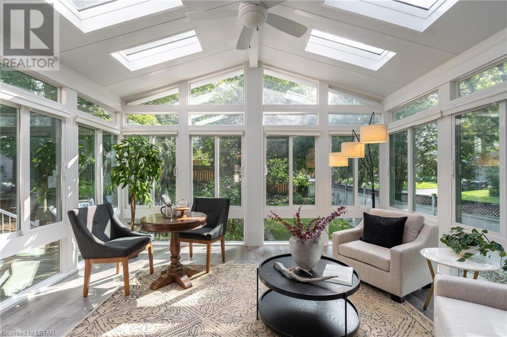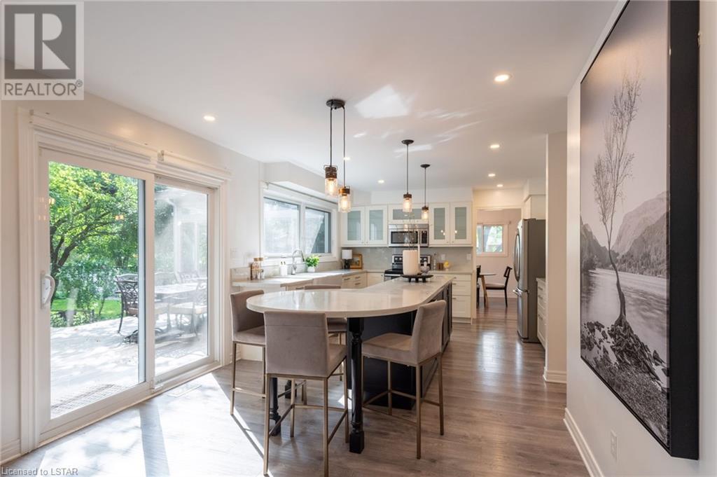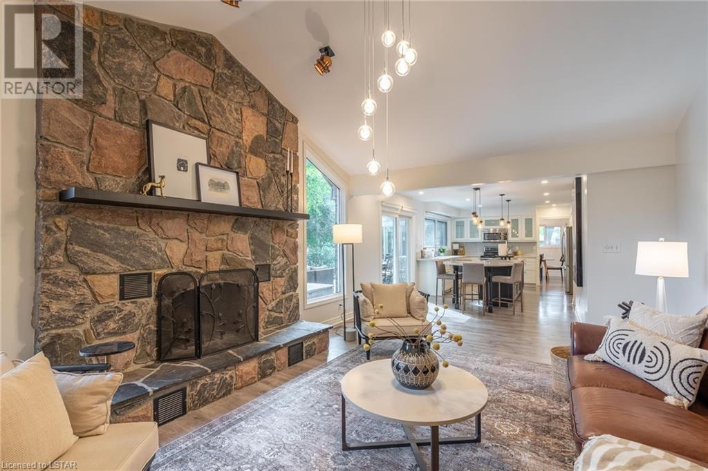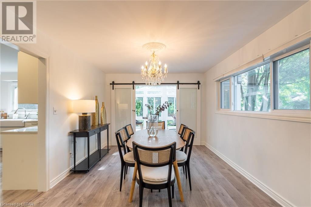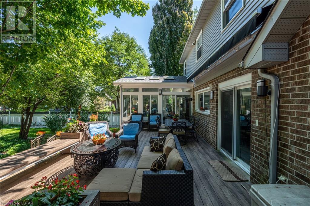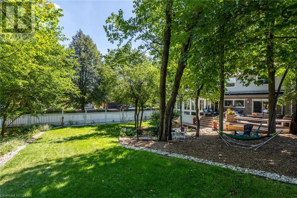 Experience luxury living in the coveted Oakridge area where your dream home awaits. Nestled on a private landscaped lot, this exquisite executive home offers an impressive 3200 ft² of living space, making it perfect for a growing family. Step into a haven of comfort as you enter the extensively renovated main floor. Discover a dream kitchen that will inspire your culinary adventures, a spacious dining room for gathering with loved ones, and a family room with a vaulted ceiling and a magnificent floor-to-ceiling Granite Stone natural wood fireplace. Be captivated by the rare backyard adorned with mature trees and lush greenery with ample space for play and exploration. Delight in year-round enjoyment on either the large back deck featuring premium Zuri decking and a large, motorized awning, or in the spacious sunroom, added in 2018. Upstairs discover 4 generously sized bedrooms including the primary suite with a walk-in closet and an ensuite bath with Jacuzzi tub. A 3-piece guest bathroom and the main floor ensuite, both newly renovated, add a touch of modern elegance to the upper level. The professionally finished basement offers even more space for your family's needs. A spacious open rec-room and wet bar sets the stage for entertainment with friends. An additional bedroom and tiled 3-piece bath, completed in 2023, provide versatility and comfort for guests or extended family members. Beyond the home's comfort and luxury, enjoy its prime location. It resides on one of the last remaining streets in London with Canada Post door delivery and it's in the district of 2 of the city's top high schools: St. Thomas Aquinas and Oakridge S.S. Furthermore, you'll appreciate it's proximity to popular amenities such as Costco, Superstore, Remark, & T&T (summer 2024). Golf enthusiasts will relish convenient access to the prestigious London Hunt & Country Club and Thames Valley Golf Course. Here's your opportunity to create a lifetime of memories in this exceptional Oakridge home. (id:22211)
