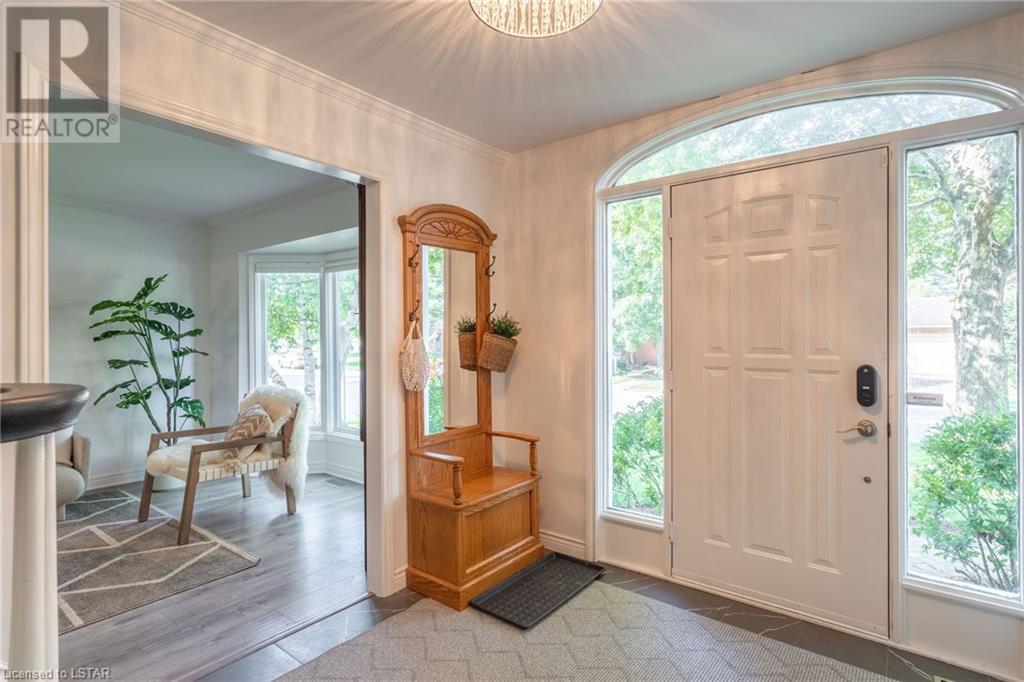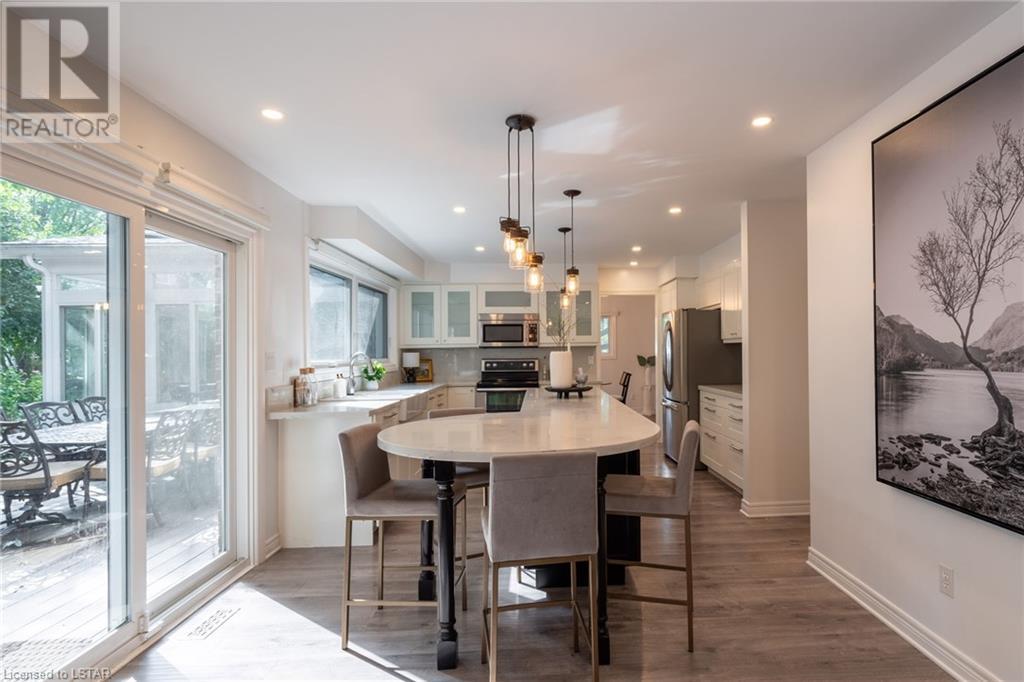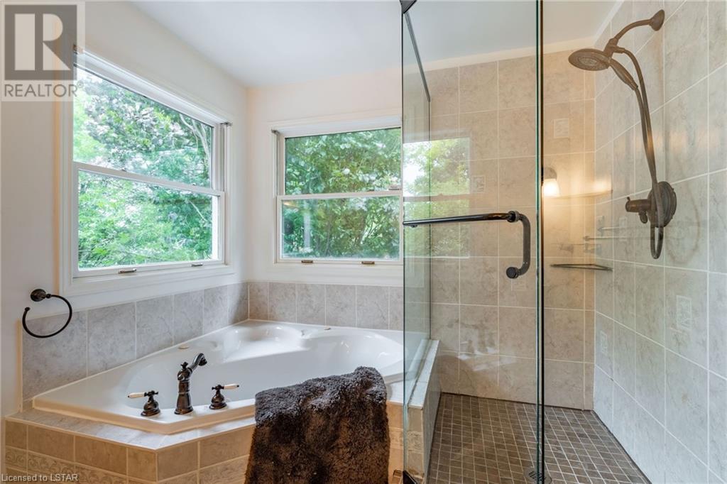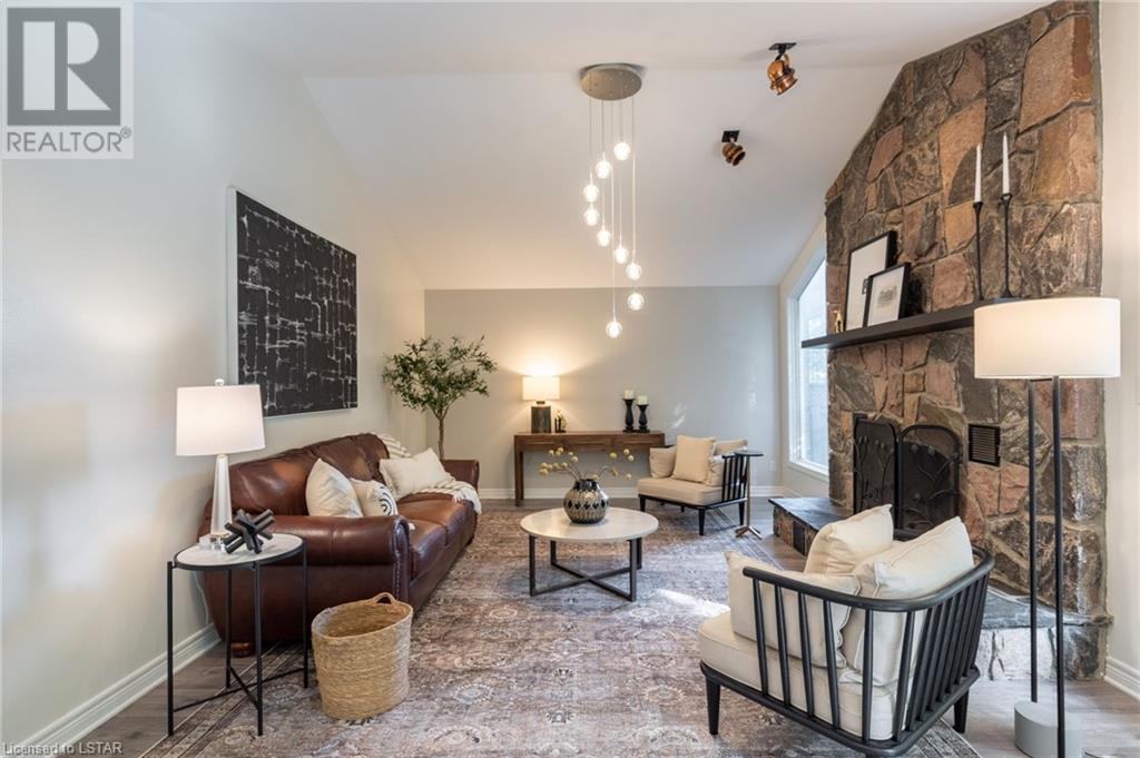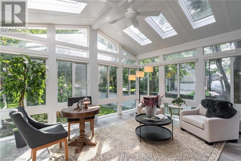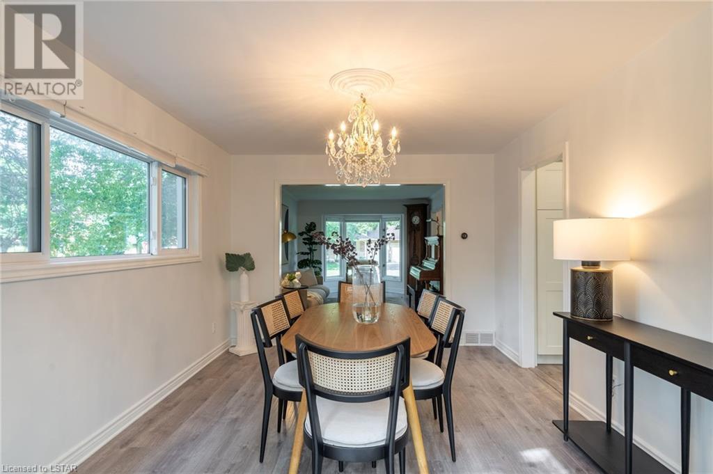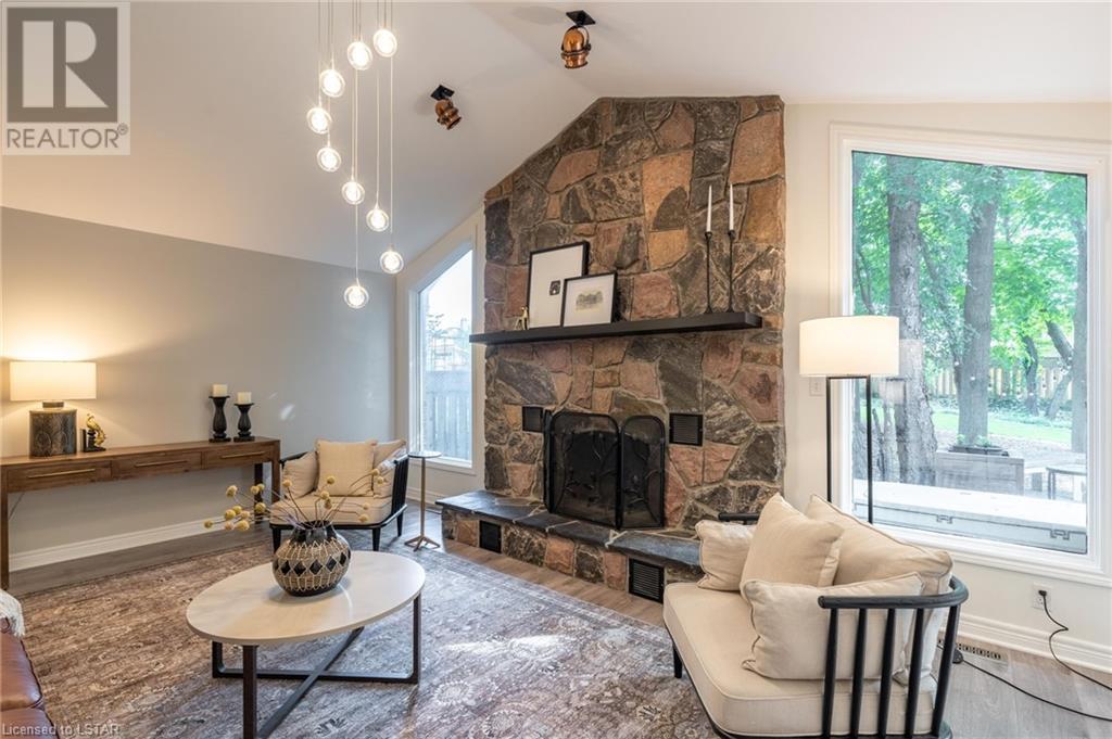 Experience luxury living in the coveted Oakridge area where your dream home awaits. Nestled on a private landscaped lot, this exquisite executive home offers an impressive 3200 ft² of living space, making it perfect for a growing family. Step into a haven of comfort as you enter the extensively renovated main floor. Discover a dream kitchen that will inspire your culinary adventures, a spacious dining room for gathering with loved ones, and a family room with a vaulted ceiling and a magnificent floor-to-ceiling Granite Stone natural wood fireplace. Be captivated by the rare backyard adorned with mature trees and lush greenery with ample space for play and exploration. Delight in year-round enjoyment on either the large back deck featuring premium Zuri decking and a large, motorized awning, or in the spacious sunroom, added in 2018. Upstairs discover 4 generously sized bedrooms including the primary suite with a walk-in closet and an ensuite bath with Jacuzzi tub. A 3-piece guest bathroom and the main floor ensuite, both newly renovated, add a touch of modern elegance to the upper level. The professionally finished basement offers even more space for your family's needs. A spacious open rec-room and wet bar sets the stage for entertainment with friends. An additional bedroom and tiled 3-piece bath, completed in 2023, provide versatility and comfort for guests or extended family members. Beyond the home's comfort and luxury, enjoy its prime location. It resides on one of the last remaining streets in London with Canada Post door delivery and it's in the district of 2 of the city's top high schools: St. Thomas Aquinas and Oakridge S.S. Furthermore, you'll appreciate it's proximity to popular amenities such as Costco, Superstore, Remark, & T&T (summer 2024). Golf enthusiasts will relish convenient access to the prestigious London Hunt & Country Club and Thames Valley Golf Course. Here's your opportunity to create a lifetime of memories in this exceptional Oakridge home. (id:22211)