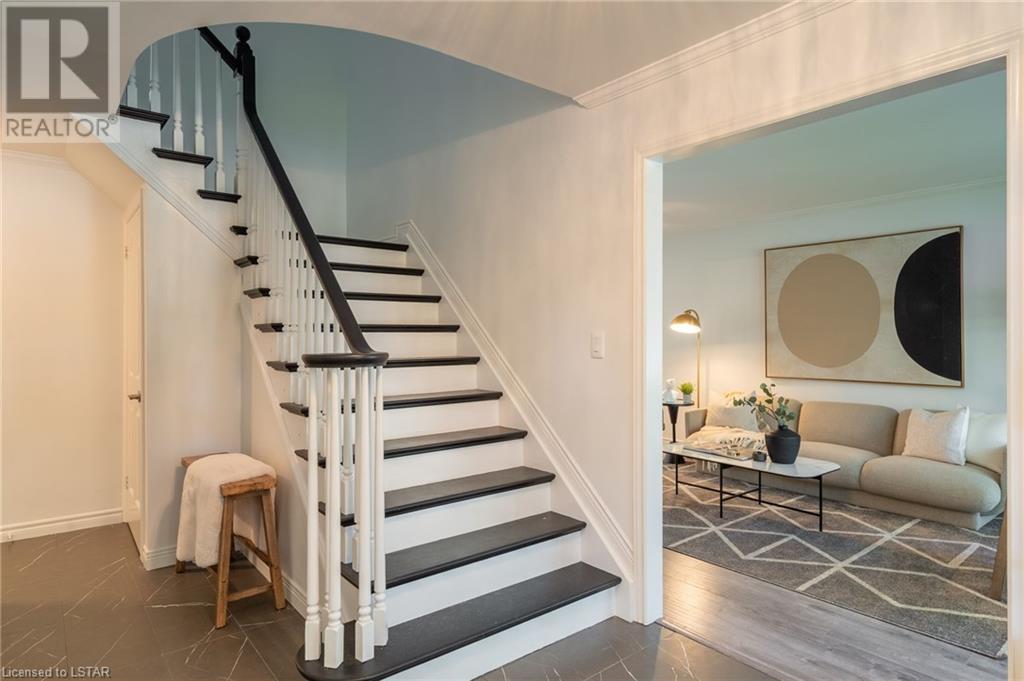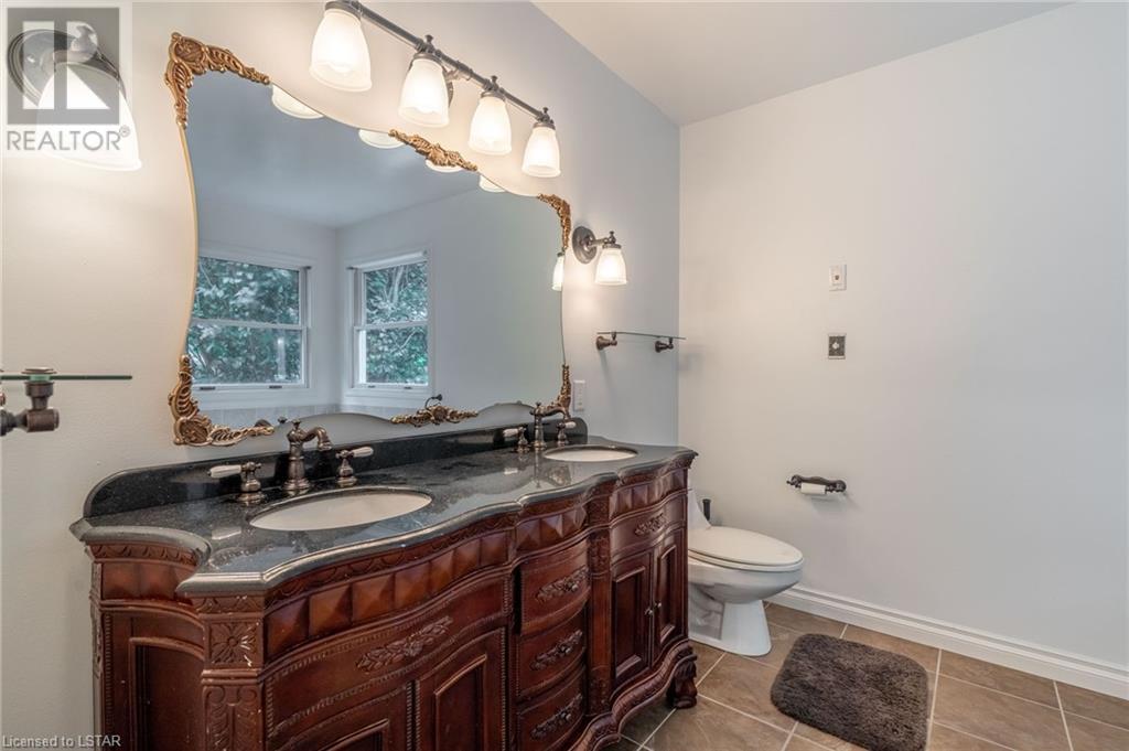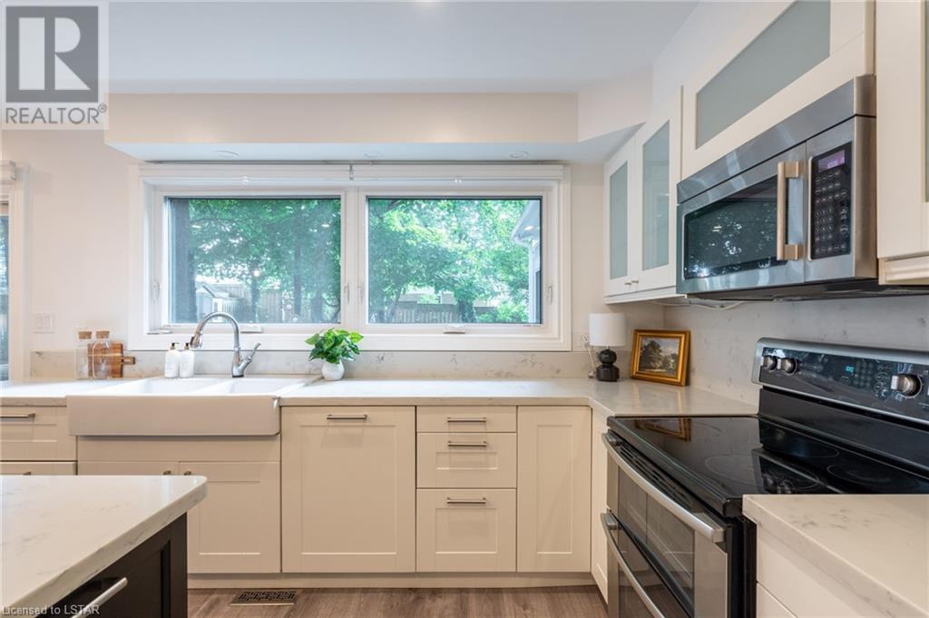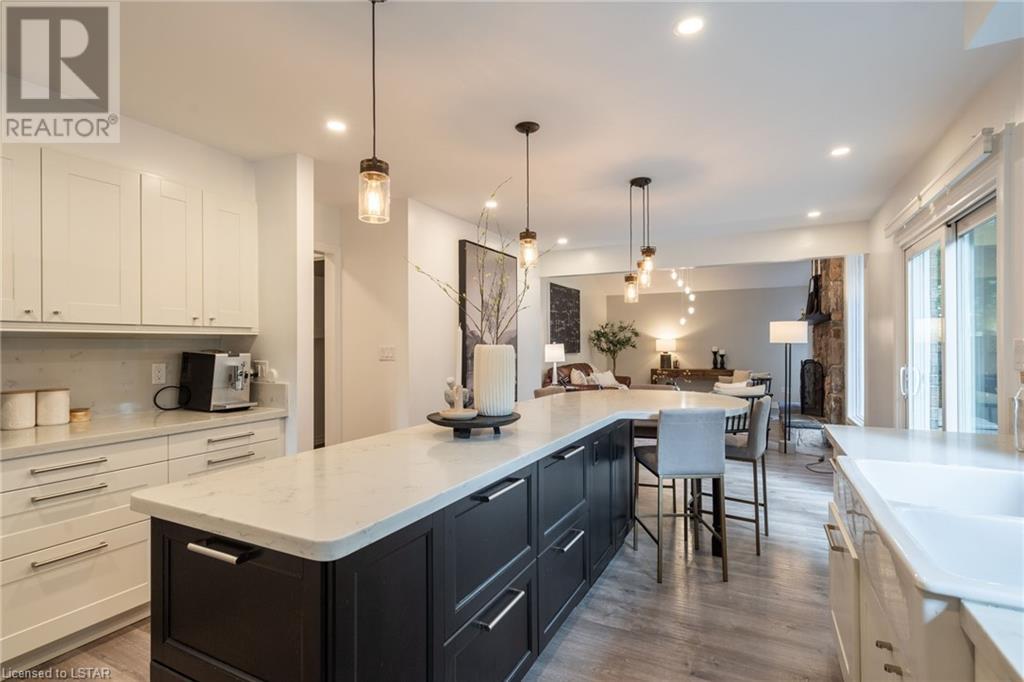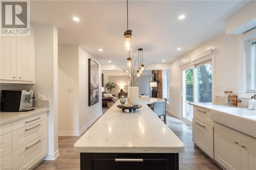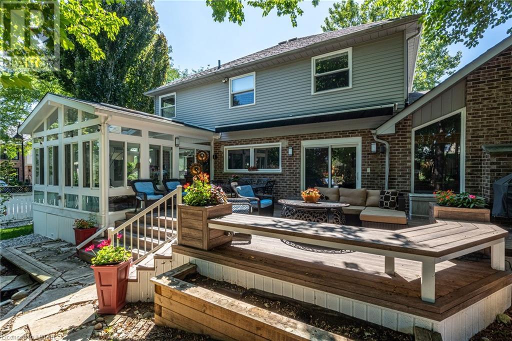 Experience luxury living in the coveted Oakridge area where your dream home awaits. Nestled on a private landscaped lot, this exquisite executive home offers an impressive 3200 ft² of living space, making it perfect for a growing family. Step into a haven of comfort as you enter the extensively renovated main floor. Discover a dream kitchen that will inspire your culinary adventures, a spacious dining room for gathering with loved ones, and a family room with a vaulted ceiling and a magnificent floor-to-ceiling Granite Stone natural wood fireplace. Be captivated by the rare backyard adorned with mature trees and lush greenery with ample space for play and exploration. Delight in year-round enjoyment on either the large back deck featuring premium Zuri decking and a large, motorized awning, or in the spacious sunroom, added in 2018. Upstairs discover 4 generously sized bedrooms including the primary suite with a walk-in closet and an ensuite bath with Jacuzzi tub. A 3-piece guest bathroom and the main floor ensuite, both newly renovated, add a touch of modern elegance to the upper level. The professionally finished basement offers even more space for your family's needs. A spacious open rec-room and wet bar sets the stage for entertainment with friends. An additional bedroom and tiled 3-piece bath, completed in 2023, provide versatility and comfort for guests or extended family members. Beyond the home's comfort and luxury, enjoy its prime location. It resides on one of the last remaining streets in London with Canada Post door delivery and it's in the district of 2 of the city's top high schools: St. Thomas Aquinas and Oakridge S.S. Furthermore, you'll appreciate it's proximity to popular amenities such as Costco, Superstore, Remark, & T&T (summer 2024). Golf enthusiasts will relish convenient access to the prestigious London Hunt & Country Club and Thames Valley Golf Course. Here's your opportunity to create a lifetime of memories in this exceptional Oakridge home. (id:22211)