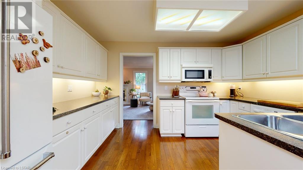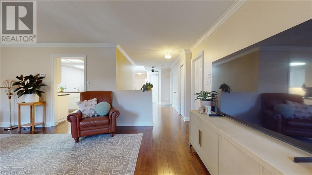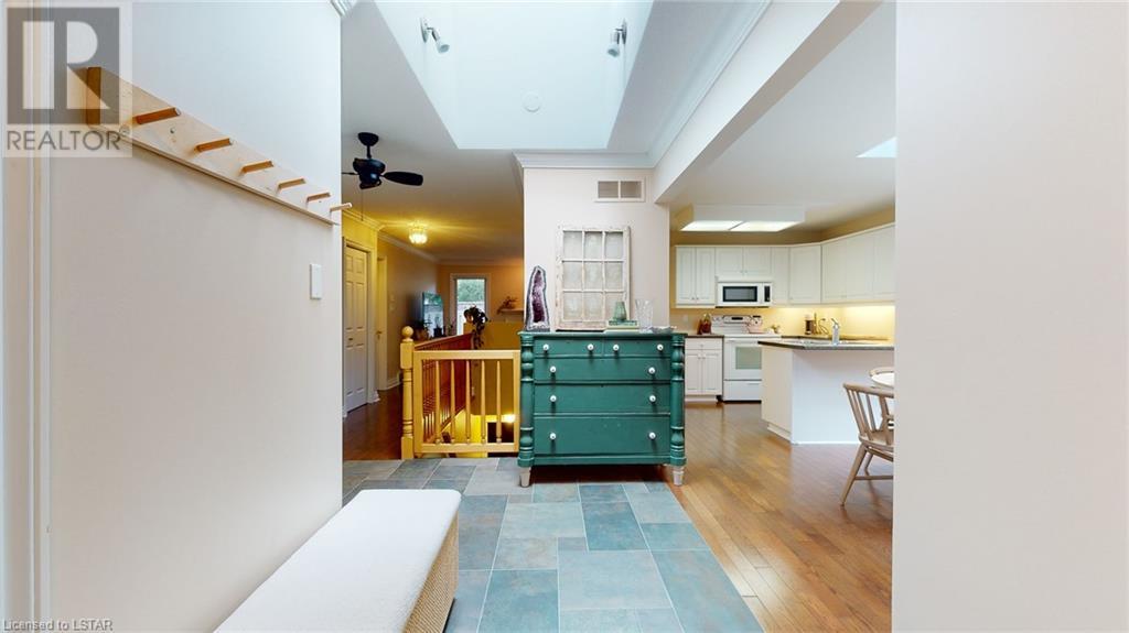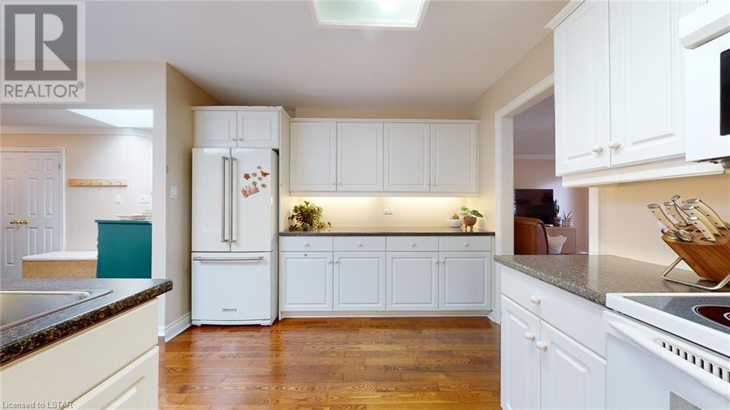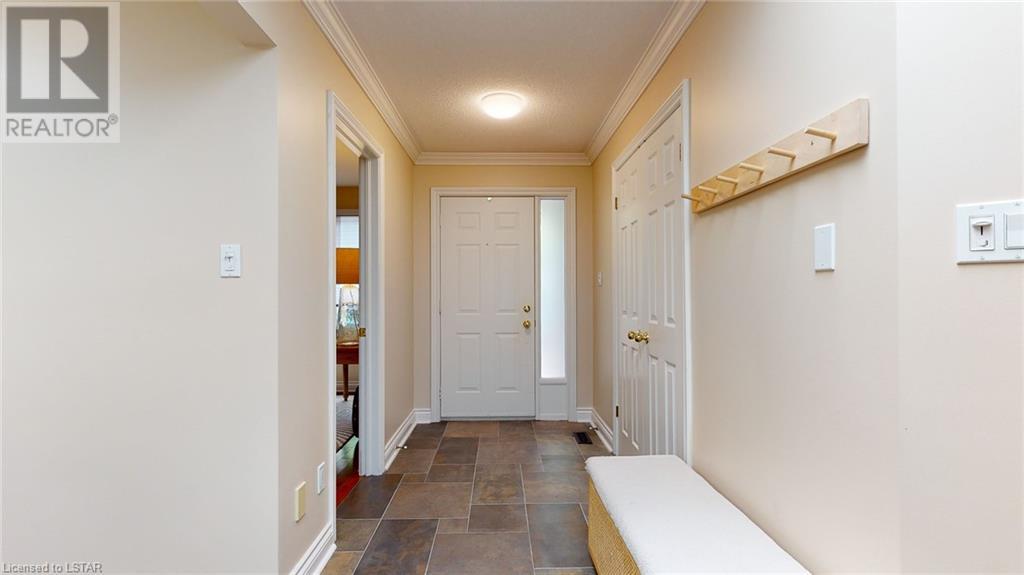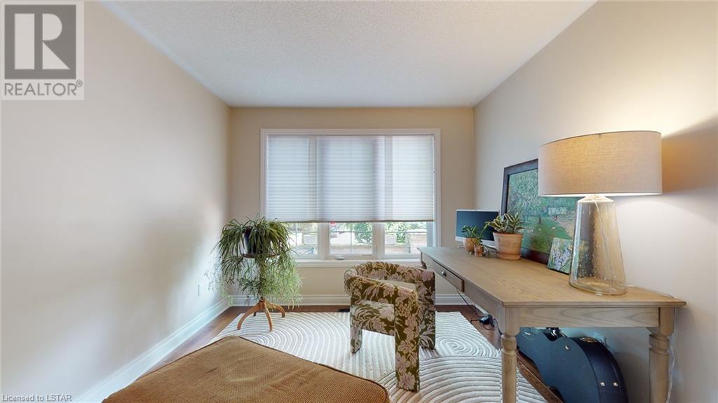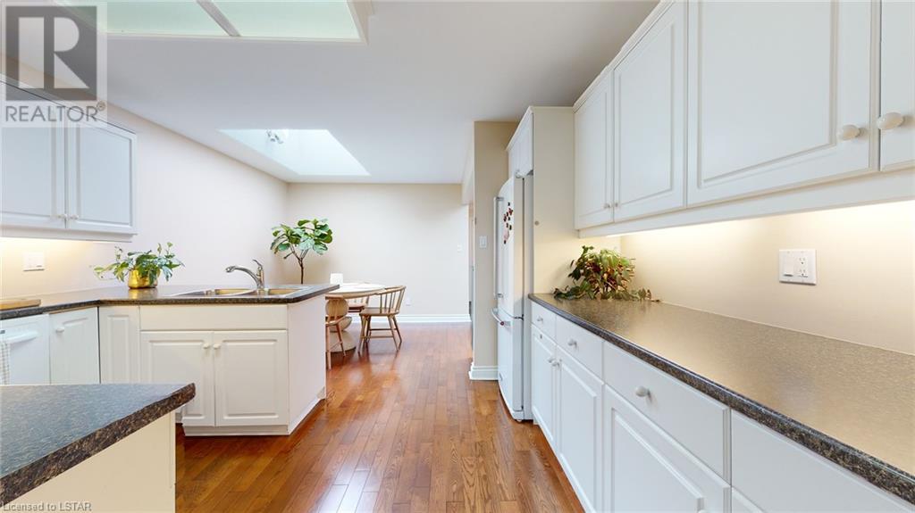 Welcome to this stunning one-floor condo built by Sifton. Located in the highly sought-after Hazelden Trace. Nestled at the rear of this beautiful complex amongst mature trees in a very private setting. 2 bedrooms, second bedroom/study does not have closet, hardwood floors/ crown mouldings, Large eat-in kitchen, bright spacious living/dining room with gas fireplace, main floor laundry. Lower level finished with family room, study and 3 pc bath. Plenty of storage. (id:22211)