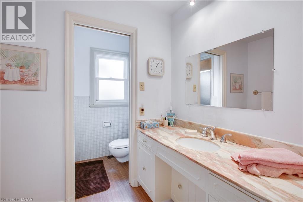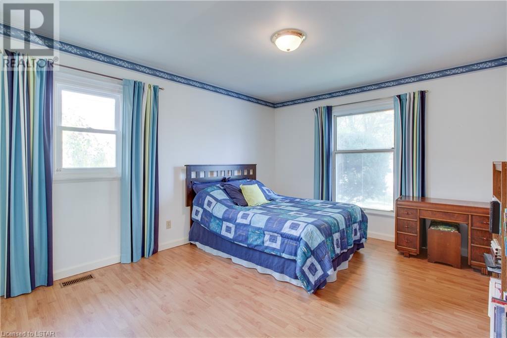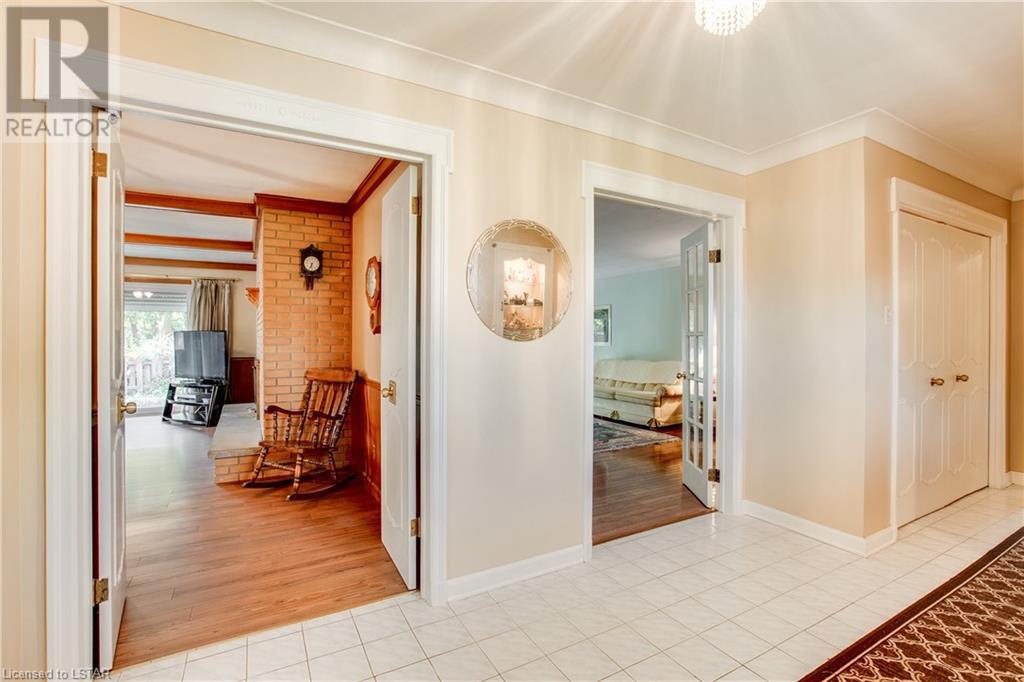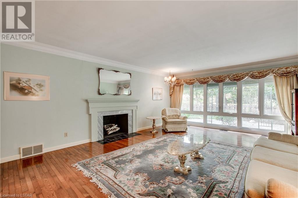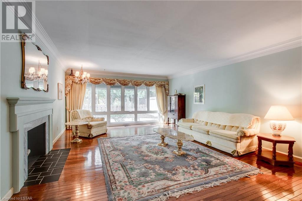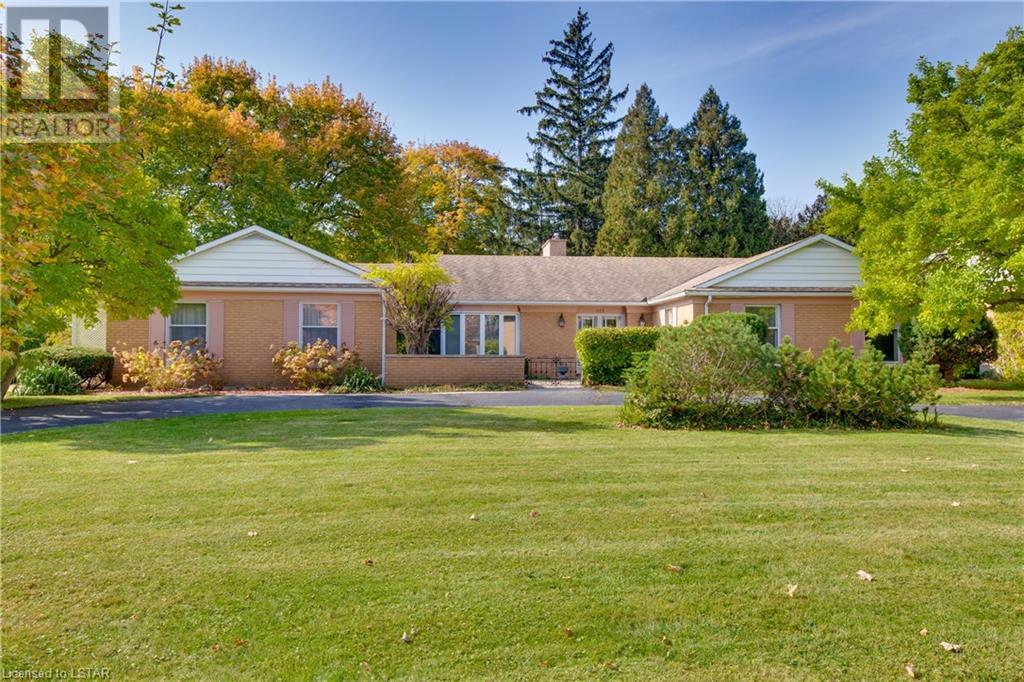 Situated on a desirable dead-end quiet street, surrounded by nature and ponds. This QUALITY BUILT (almost 2500 sq. ft on main level) sprawling brick ranch has spectacular LARGE PRINCIPAL ROOMS. Views of the ponds( when leaves are gone) from kitchen windows and back 3 rooms . Gleaming hardwood floors, FORMAL Dining room w/large bay window overlooking front private patio courtyard. Living room (has gas fireplace with slate hearth and marble trim ) Primary bedroom and ,Family room, all have (almost wall to wall - floor to ceiling) windows. Family room has floor to ceiling wood fireplace and mahogany beams including sliding doors to back yard. Custom Kitchen with island and built in double ovens. 3 baths including ensuite (marble top vanities), Newer windows (most approx. 10 yrs. old), Very good shingles New in 2011. Furnace and C/Air approx. 20 yrs old. CIRCULAR FRONT DRIVE with an appealing front entrance and Huge DOUBLE GARAGE with inside entry . Central vacuum. Unfinished lower level. Minutes to 401 highway. (id:22211)