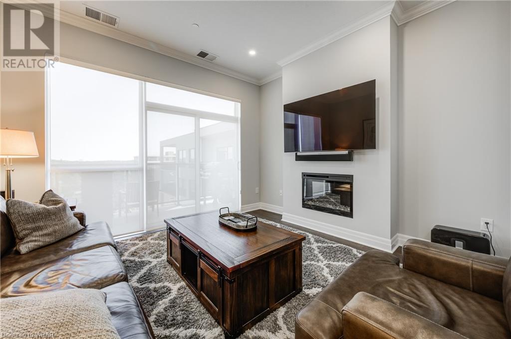 Welcome to Park West a Luxury Condo Building in beautiful Byron right across the street from Springbank Park! This immaculate Condo boasts 2 Beds, 2 Fulls Baths a Den, 2 large parking spaces, a locker and a private terrace balcony. Several upgrades throughout in this TOP FLOOR condo at 1225 sq ft. Features include an open concept kitchen with granite counters and stainless steel appliances overlooks the living/dining area complete with wall mounted fireplace and a private 140 sq ft balcony with breath taking views of the Park. The oversized luxury primary bedroom has a walk-in closet and tastefully decorated ensuite bath with walk-in shower. Second bedroom and full bathroom are very spacious on the opposite side of the unit, allowing for maximum privacy for all. The den is a perfect space for a home office, guest suite or extra lounge area. In-suite laundry room and large storage closet complete the space. Perfect for those looking for a maintenance free lifestyle. Shopping, stores, restaurants and amenities are within walking distance. Building features include a fully equipped gym, golf simulator room, overnight Guest Suite, Party Room, Pool Table, Patio area with BBQ, fire pit and pizza oven. Do Not miss out on the opportunity to own this beautiful Suite in the heart of Byron! (id:22211)