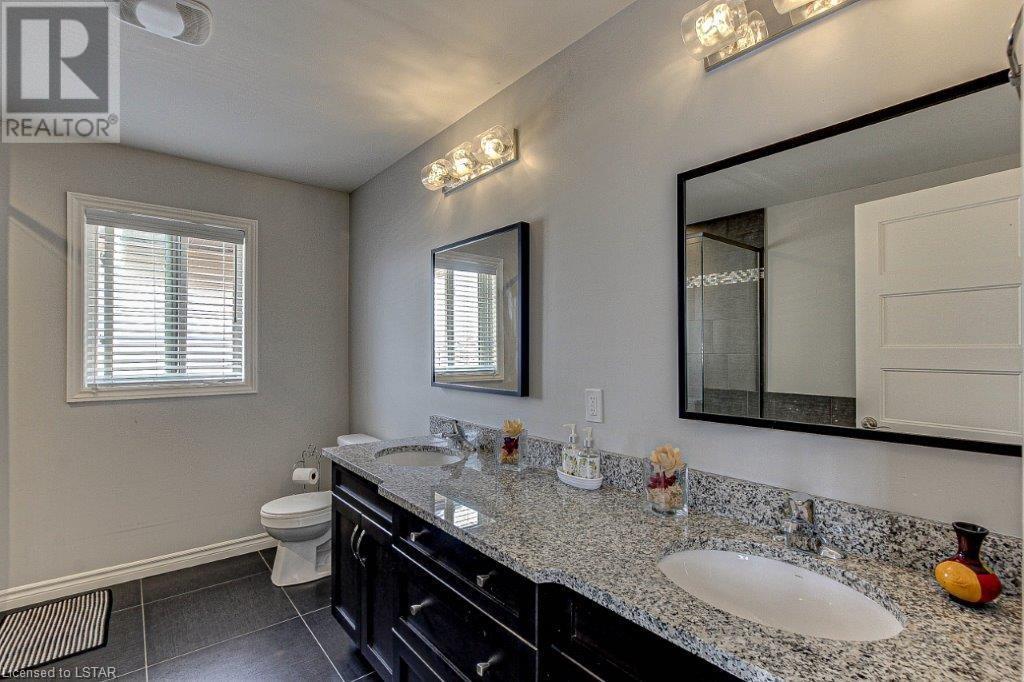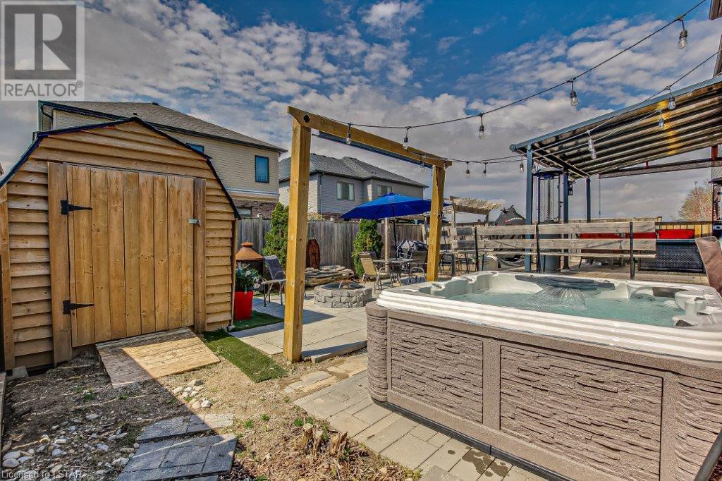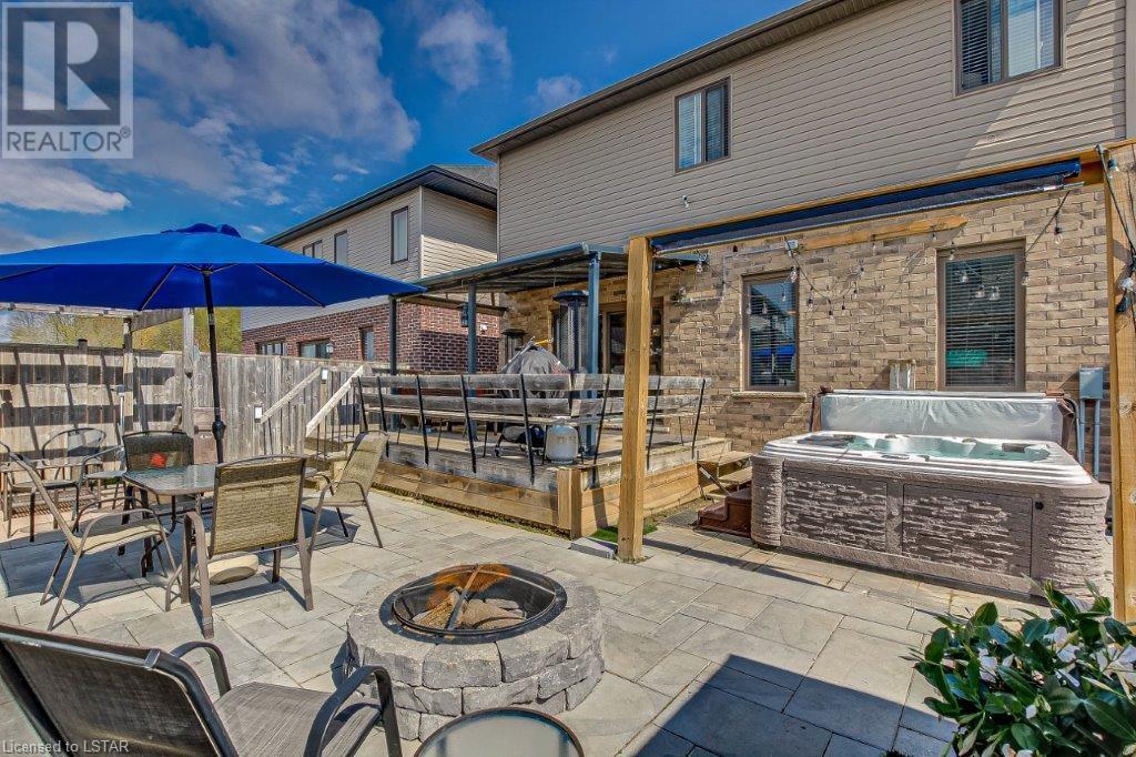 Casa Hermoso model home, built back in 2016, offers an extraordinary living experience. Boasting 4+1 Bedrooms and 3.5 bathrooms, this home is adorned with stunning finishes and numerous added extras. The main floor features 9-foot ceilings, a gorgeous kitchen complete with granite countertops, abundant cabinets, soft-close drawers, under valance lighting, a stylish backsplash, and LED pot lights. The open concept design creates a warm and inviting environment, perfect for entertaining friends and family. Whether you're preparing meals together, engaging in lively conversations, or enjoying a movie night by the fireplace, the space accommodates it all. During the warmer months, envision yourself relaxing in the jetted hot tub, spending time under the pergola or canopy, as summer approaches. Upon entering the house, the grand open foyer with Oak stairs and iron spindles leads you to the upper level, where you'll find a master bedroom with a spa-like en-suite, three more well-spaced bedrooms, and an ample bathroom. The lower level of the house offers even more space and functionality, with a huge Recreation Room, a legal bedroom, a full bathroom, a den currently used as a gym, and a sizable cellar/cold room. The location of this incredible home is ideal, as it is surrounded by various amenities, including excellent schools, shopping centers, restaurants, scenic trails, and parks. Notably, it is conveniently located just 10 minutes from Masonville Mall, 12 minutes from the University of Western Ontario (UWO), and the University Hospital. This is truly an amazing place to call home, offering an array of possibilities to create beautiful moments in every corner. (id:22211)