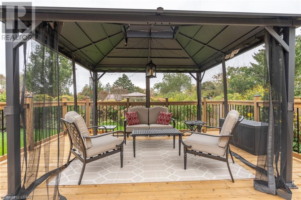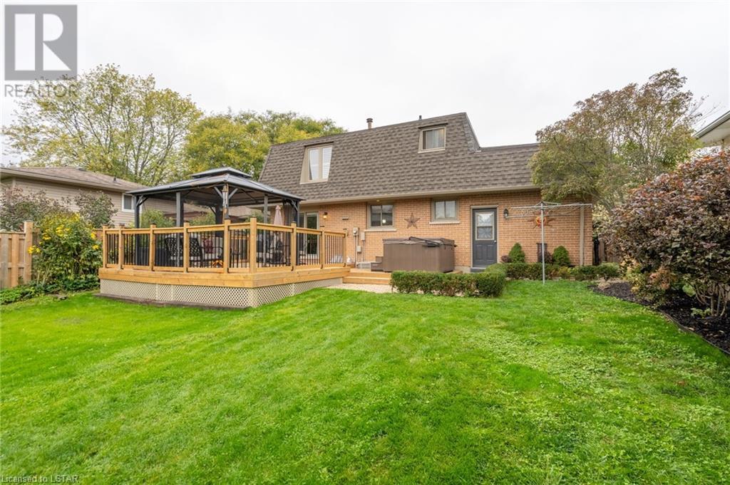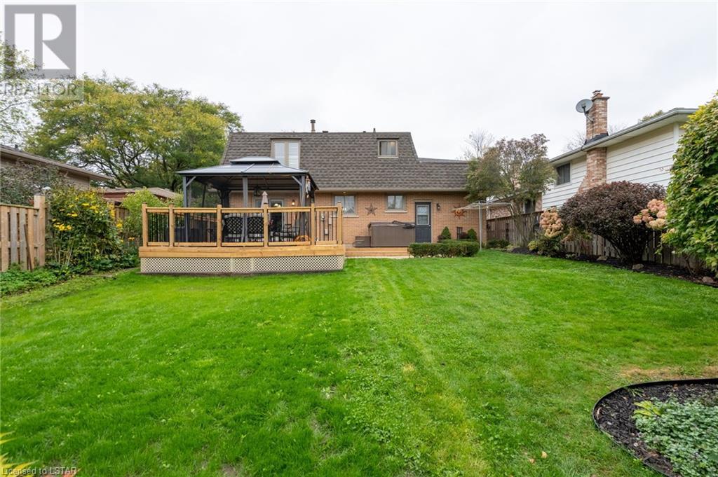 Check out this beautifully manicured home tucked nicely into a very mature lot in this family friendly subdivision. Mature gardens and a large driveway grab your eye as you pull up. Hardwood floors virtually throughout and the large living room with gas fireplace complete the picture once inside. California shutters are throughout most of the home- a great upgrade for privacy and style. Formal dining room? Check- with a beautifully positioned patio door that leads out to the brand new deck with gazebo that is an excellent feature, especially with a south facing backyard. It sure makes those summer get together‘s that much better when you have full sun with a mature and private lot. There is a flagstone path to the front yard and also a fire pit area for putting your feet up and enjoying the campfire. Hot tub is included and is a beauty outdoor feature to enjoy under the stars. A custom shed will hold all of your outdoor tools and loads of grass make it a perfect family yard. Heading back inside, the kitchen with eating area has a good layout and stainless steel appliances and a large south facing window. There is a renovated modern powder room on the main with a nice vanity and upgraded fixtures. Heading down to the basement there is a large rec room with a bar and lounge area which would be great for entertaining. There is also another bedroom which is presently used as an office that is a very good size. The very modern laundry room with loads of storage and a side pantry off of that is nice and bright and really maximizes the storage potential for this home. On the second floor it is spacious with wide hallways and three large bedrooms. All hard surface floors once again eliminate any sign of carpet. The cheater ensuite is definitely an upgrade with a separate room for the toilet and the custom stone shower. This home has it all, great location near all shopping needs, multiple schools for both elementary and high school and the Aquatic Centre is not far away. (id:22211)